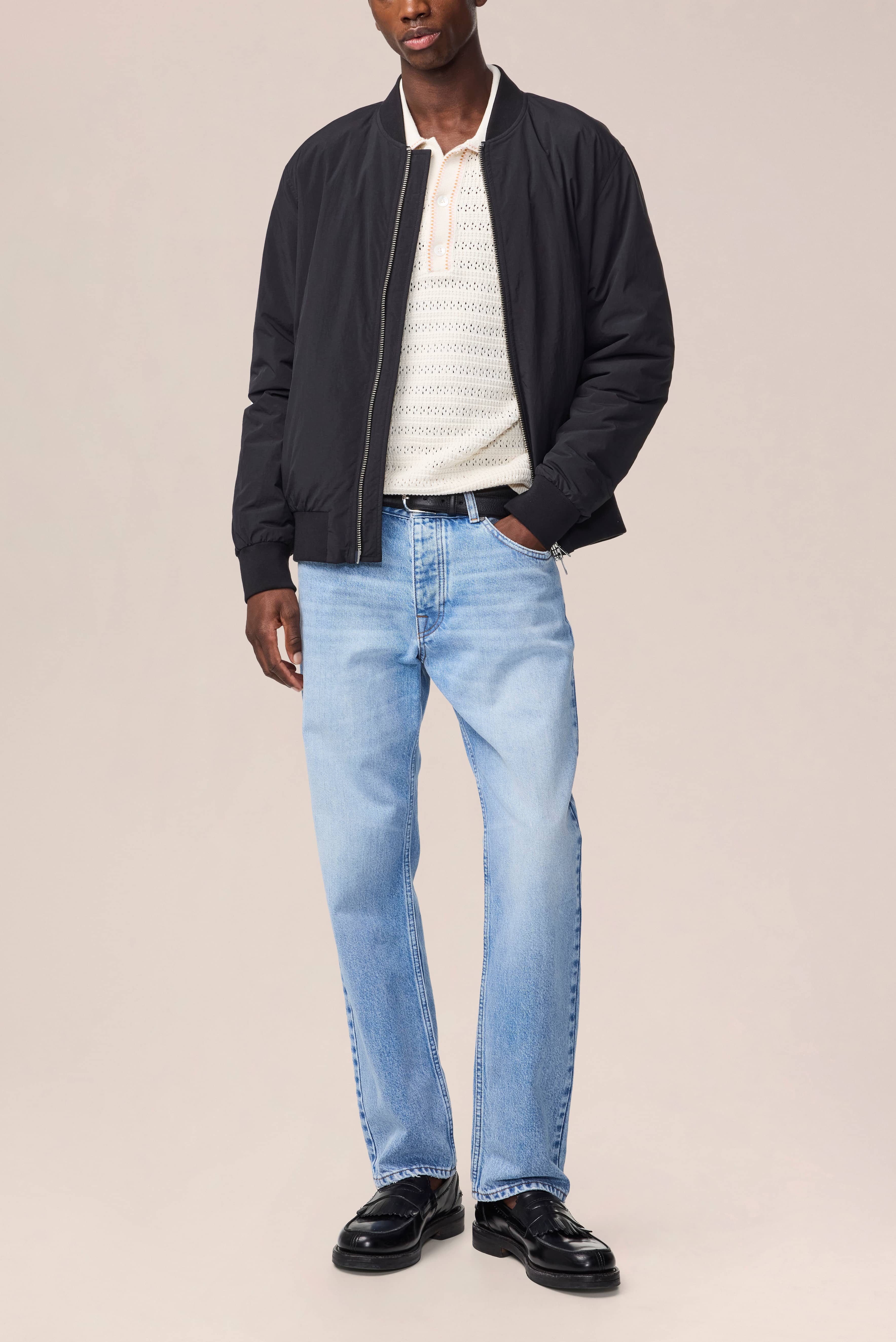 Bomber-inspired transseasonal jacket crafted from recycled polyamide with Primaloft filling with a two-way NN.07 logo zipper.