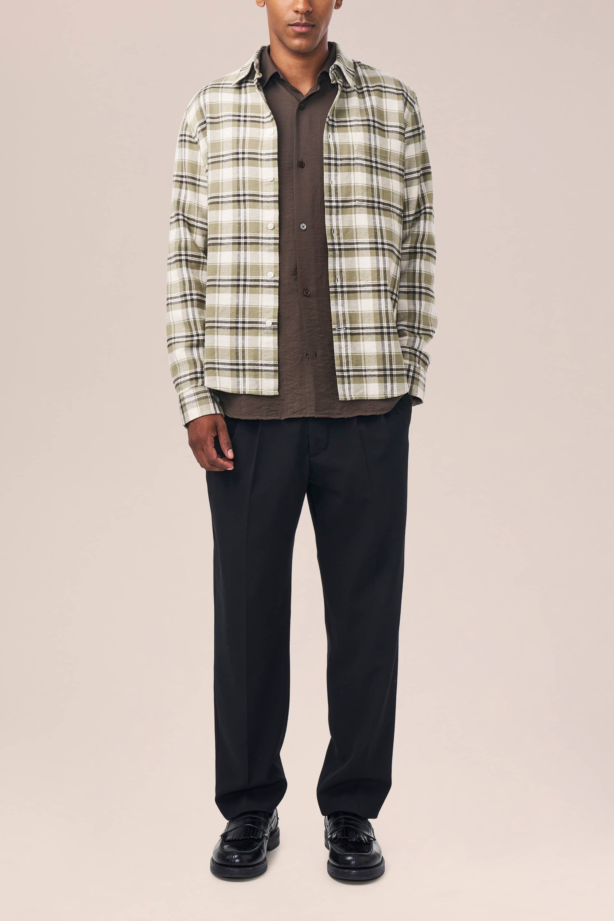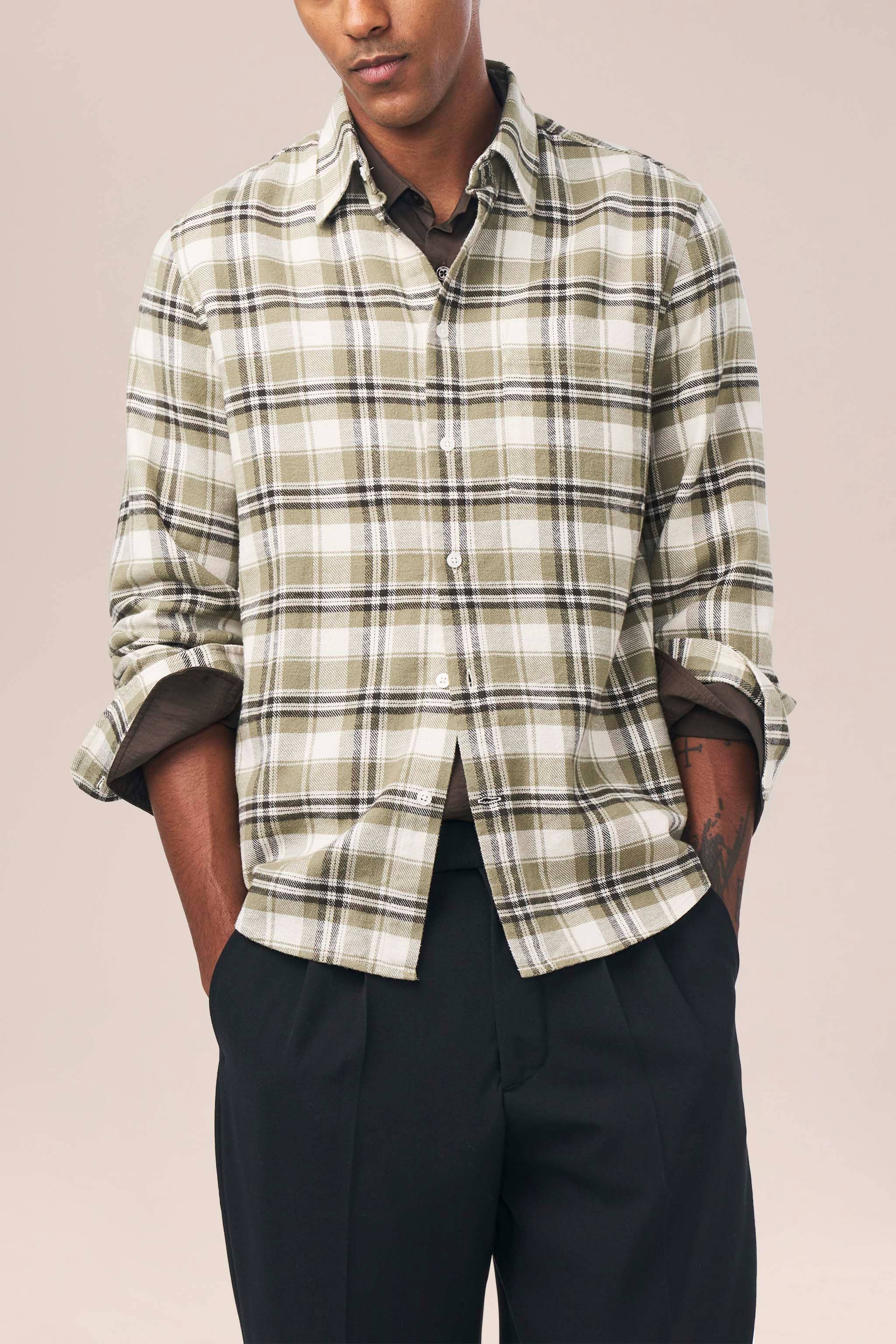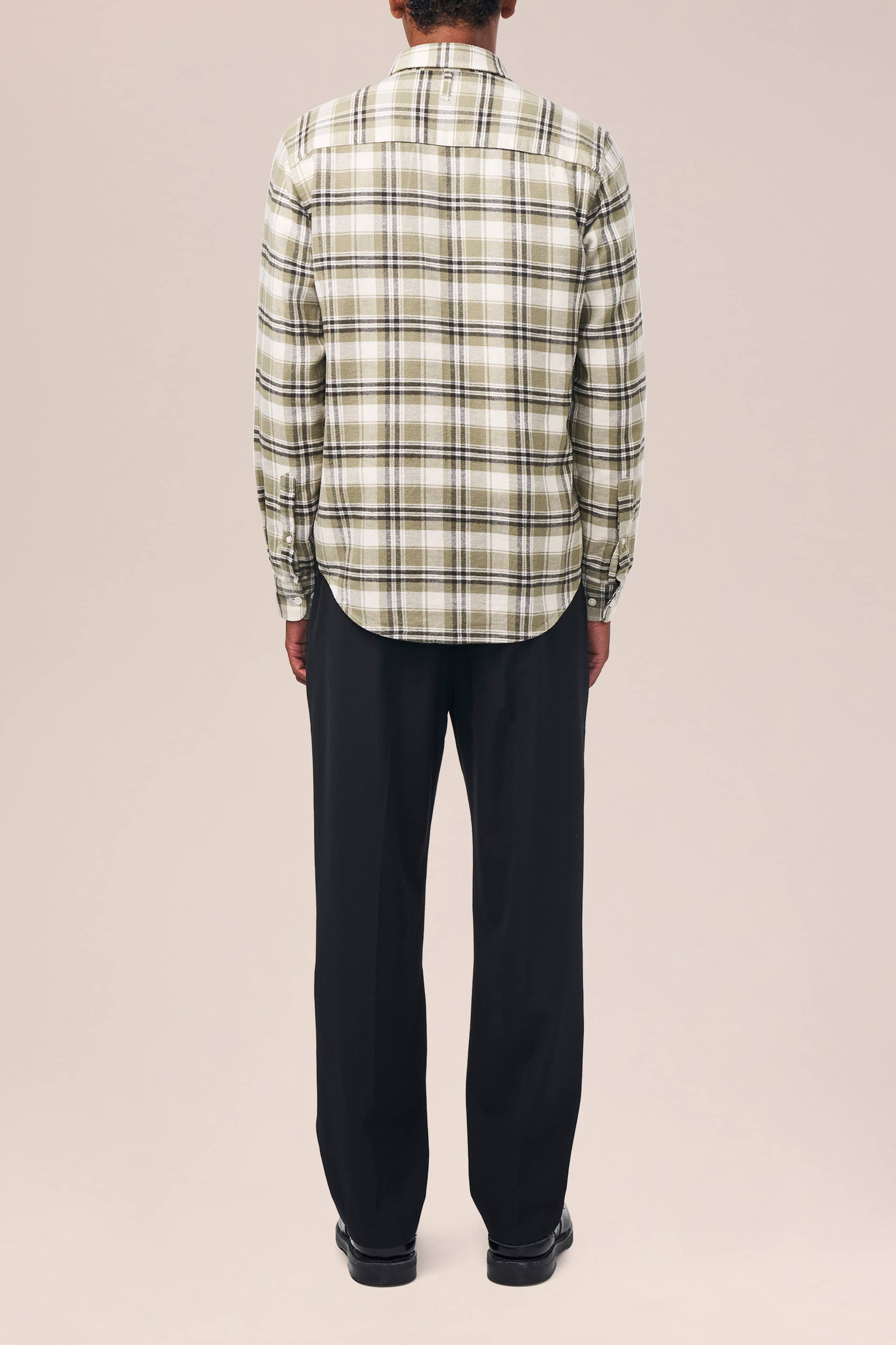 A classic slim-fit shirt crafted from yarn dyed flannel, made from cotton. The shirt has a single chest pocket and is topped with imitated Mother-of-Pearl buttons.