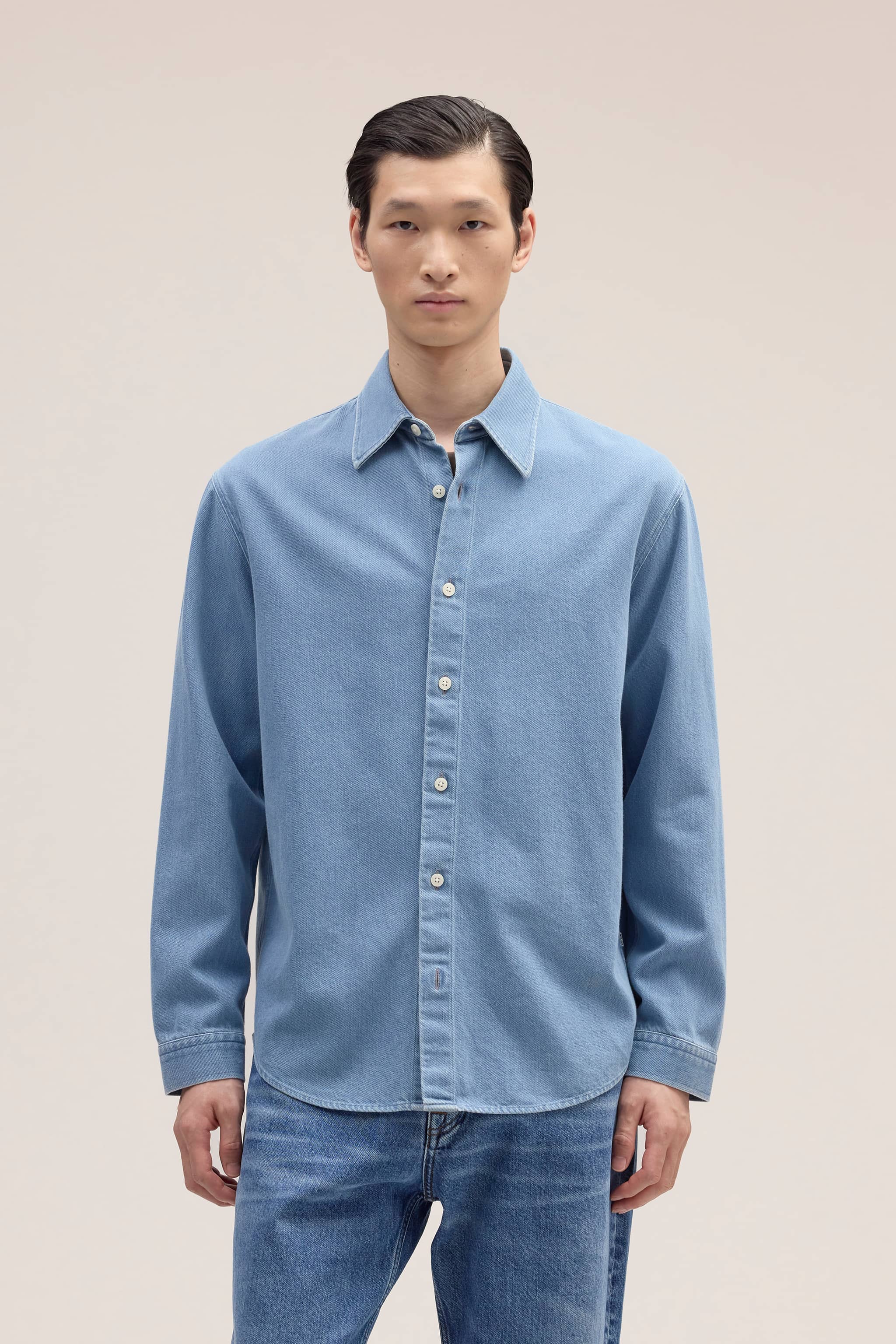 Relaxed shirt crafted from soft organic cotton in a chambray weave.