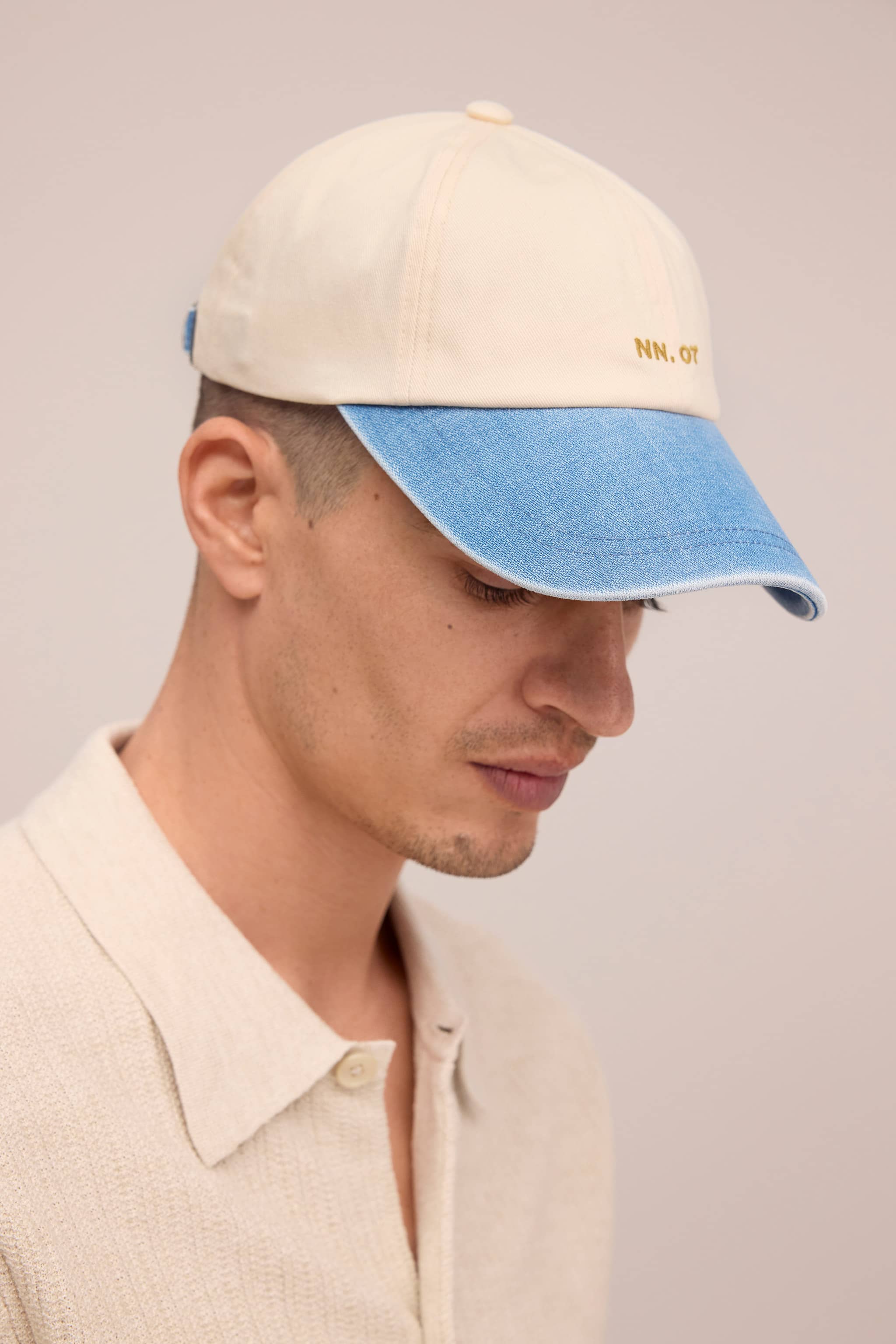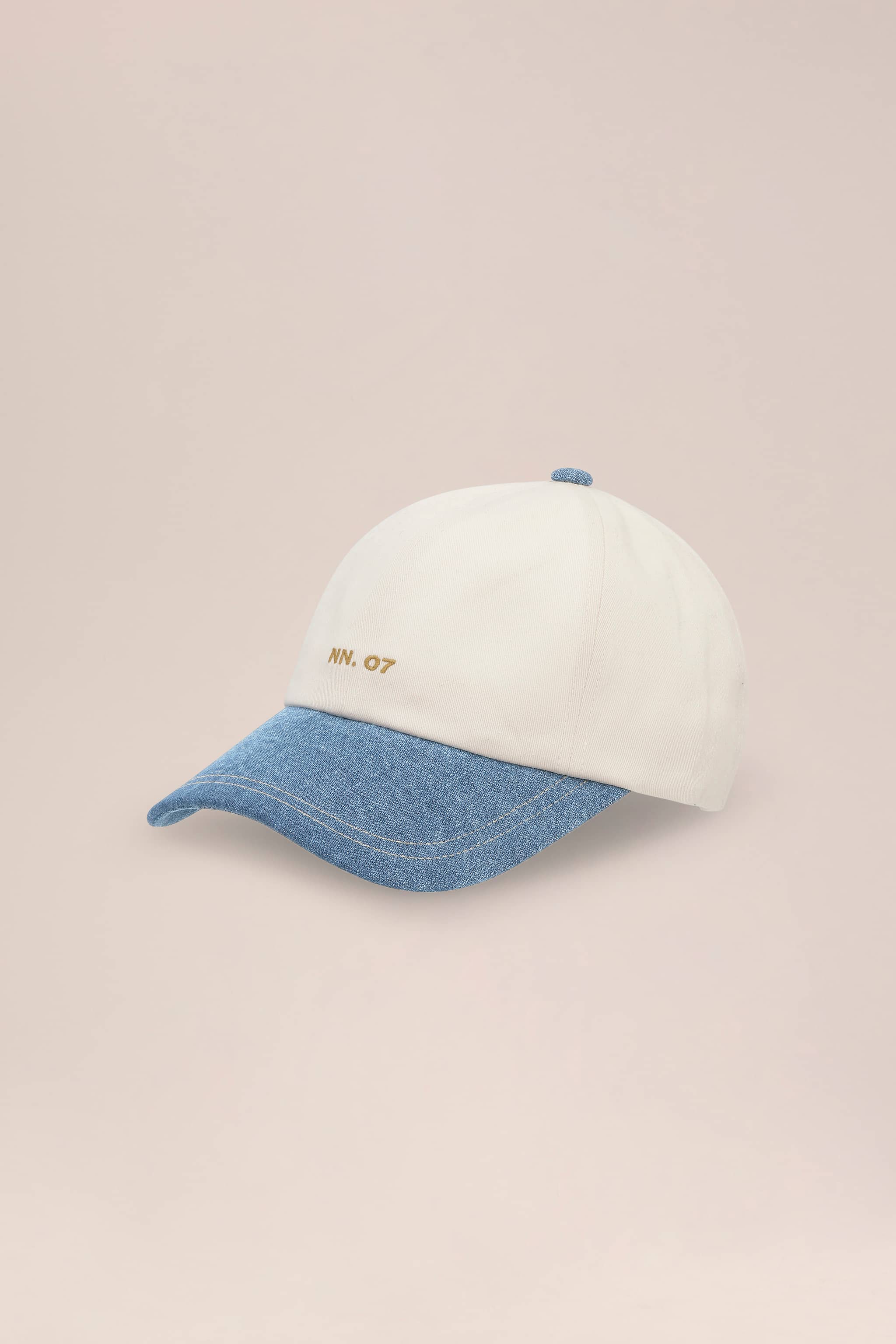 Logo cap crafted in lightweight cotton canvas with a structured denim brim for added visual interest. Features the NN.07 logo at the front and an adjustable metal back tab for a comfortable, customizable fit.