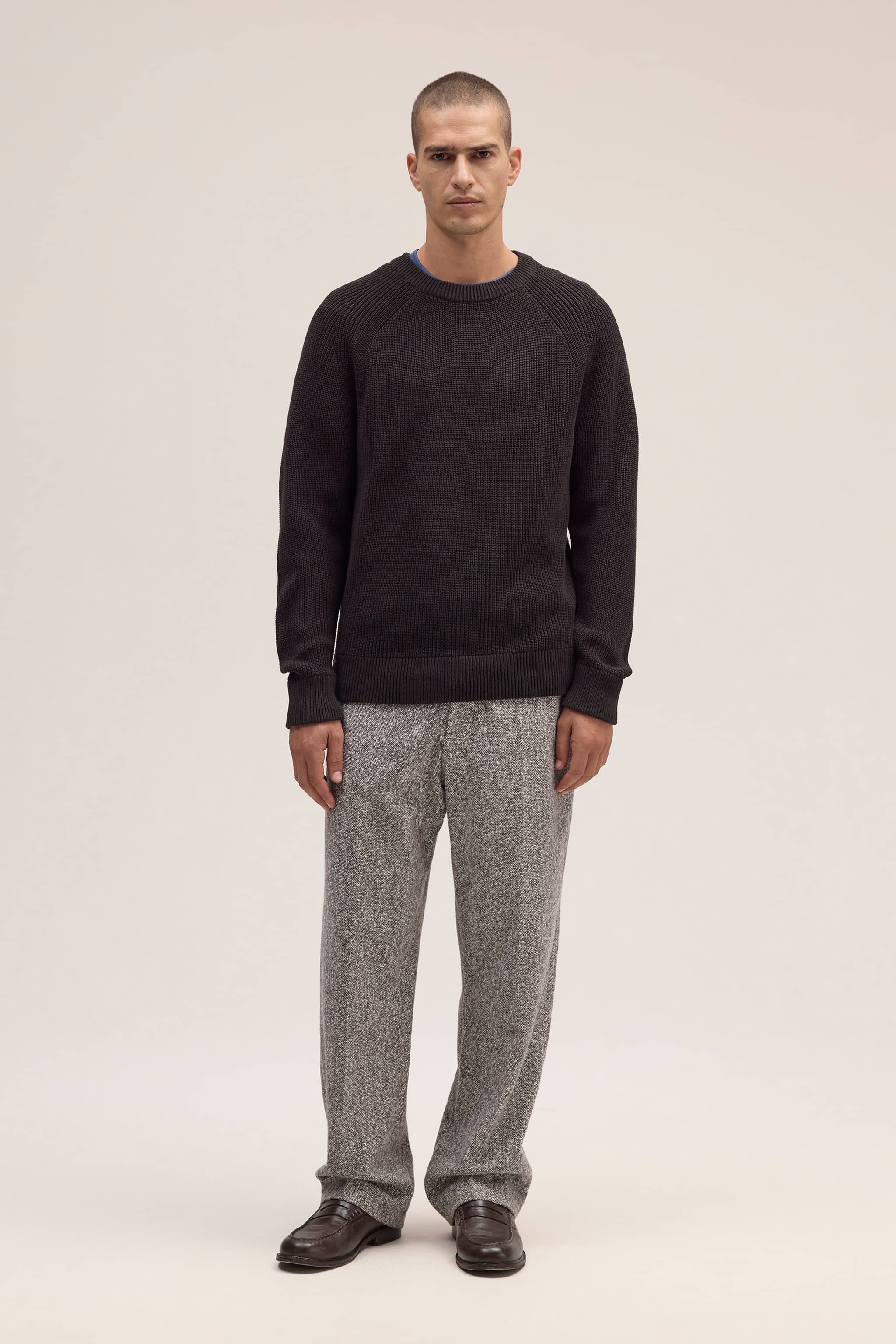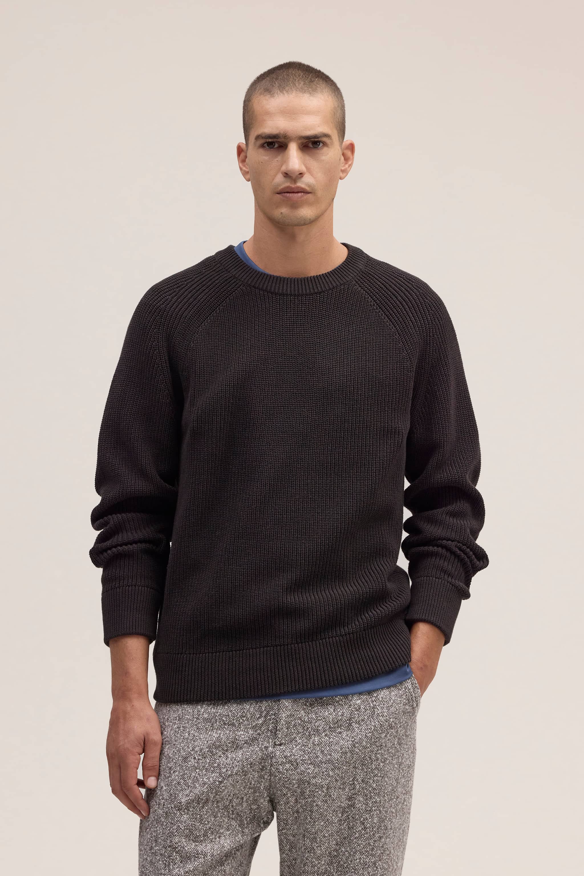 Crewneck crafted in a soft cotton, knit in a half-cardigan stitch.
