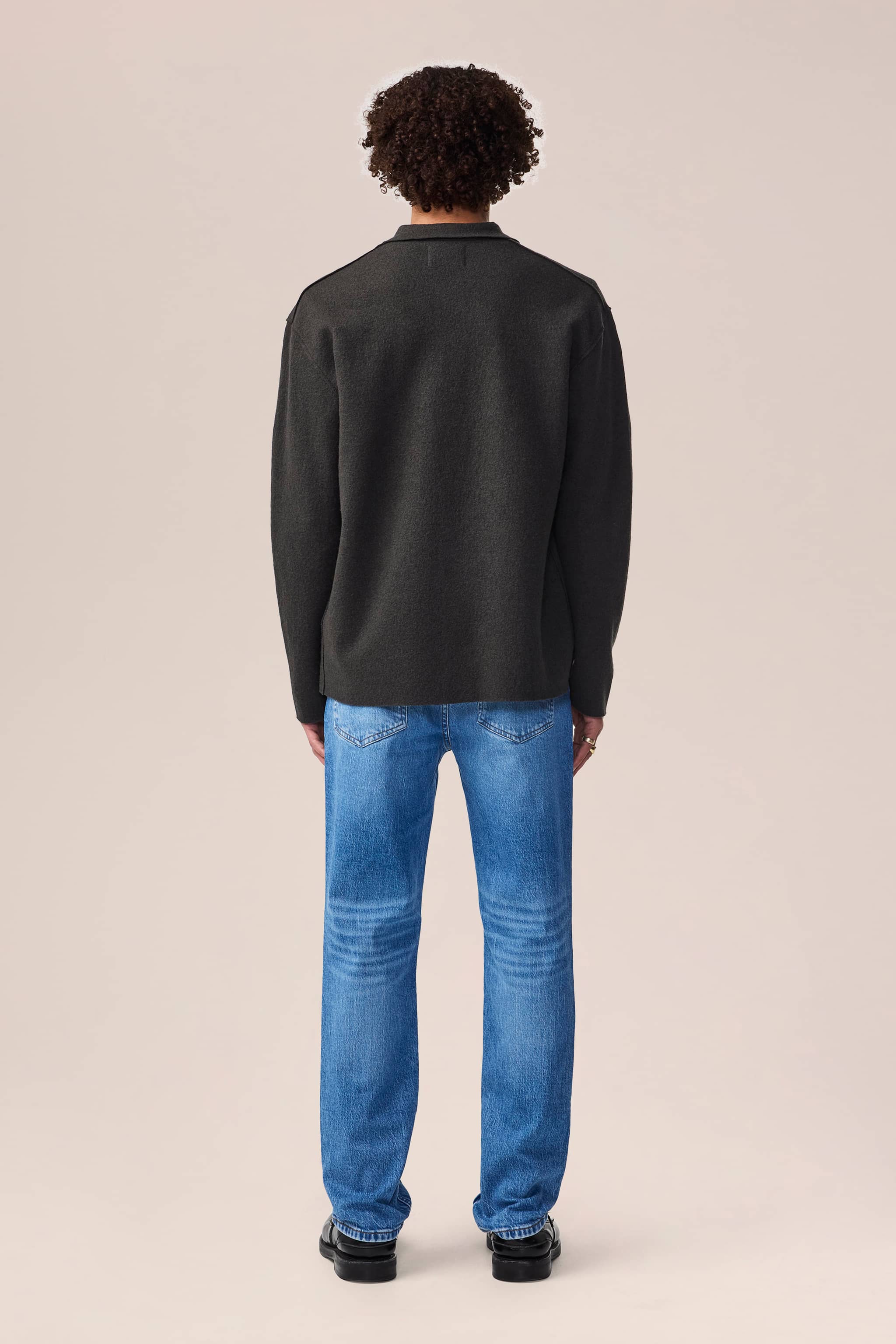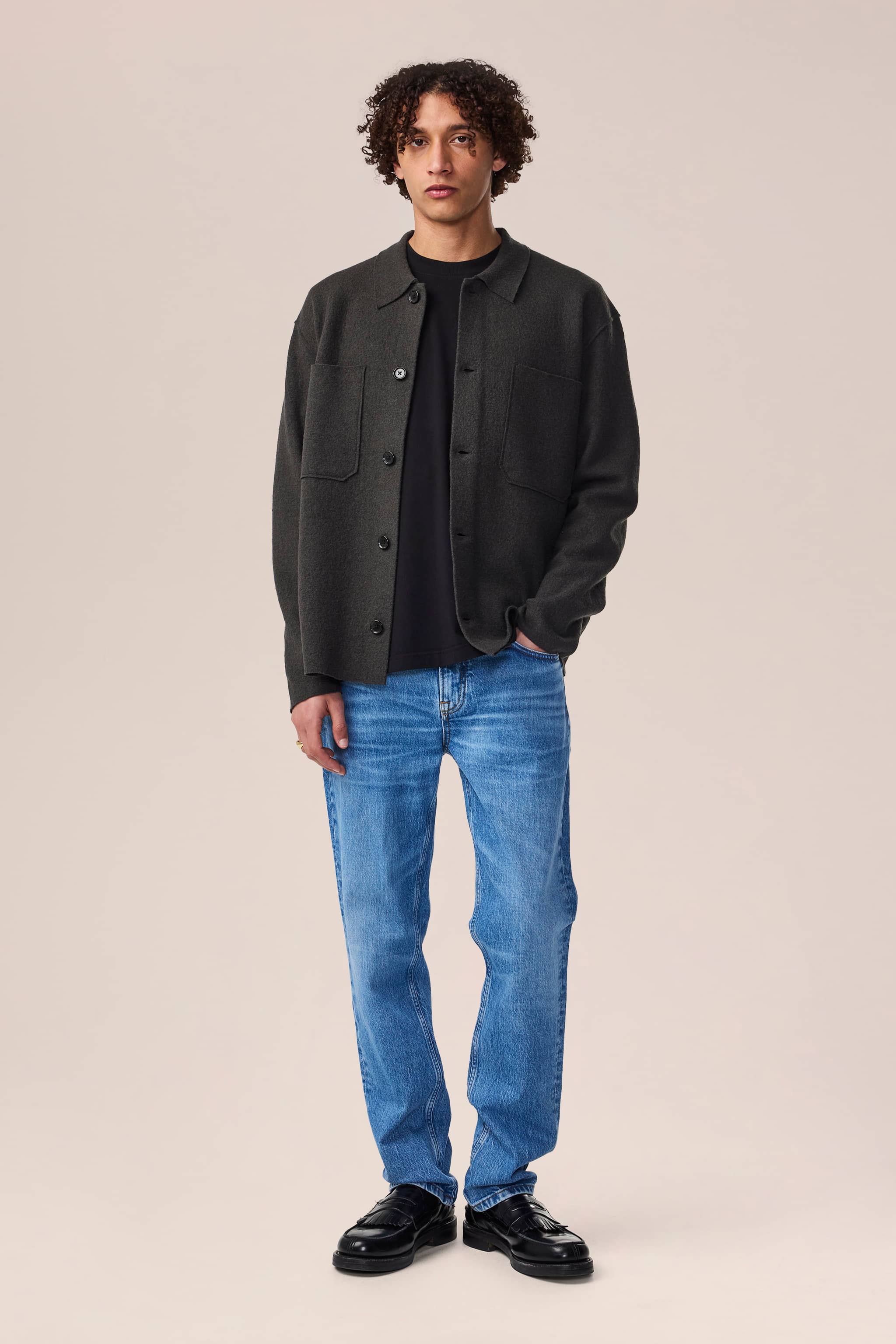 Casual overshirt crafted in soft, lightweight boiled Merino wool, designed with a shirting collar, raw edges, and NN.07 logo buttons.