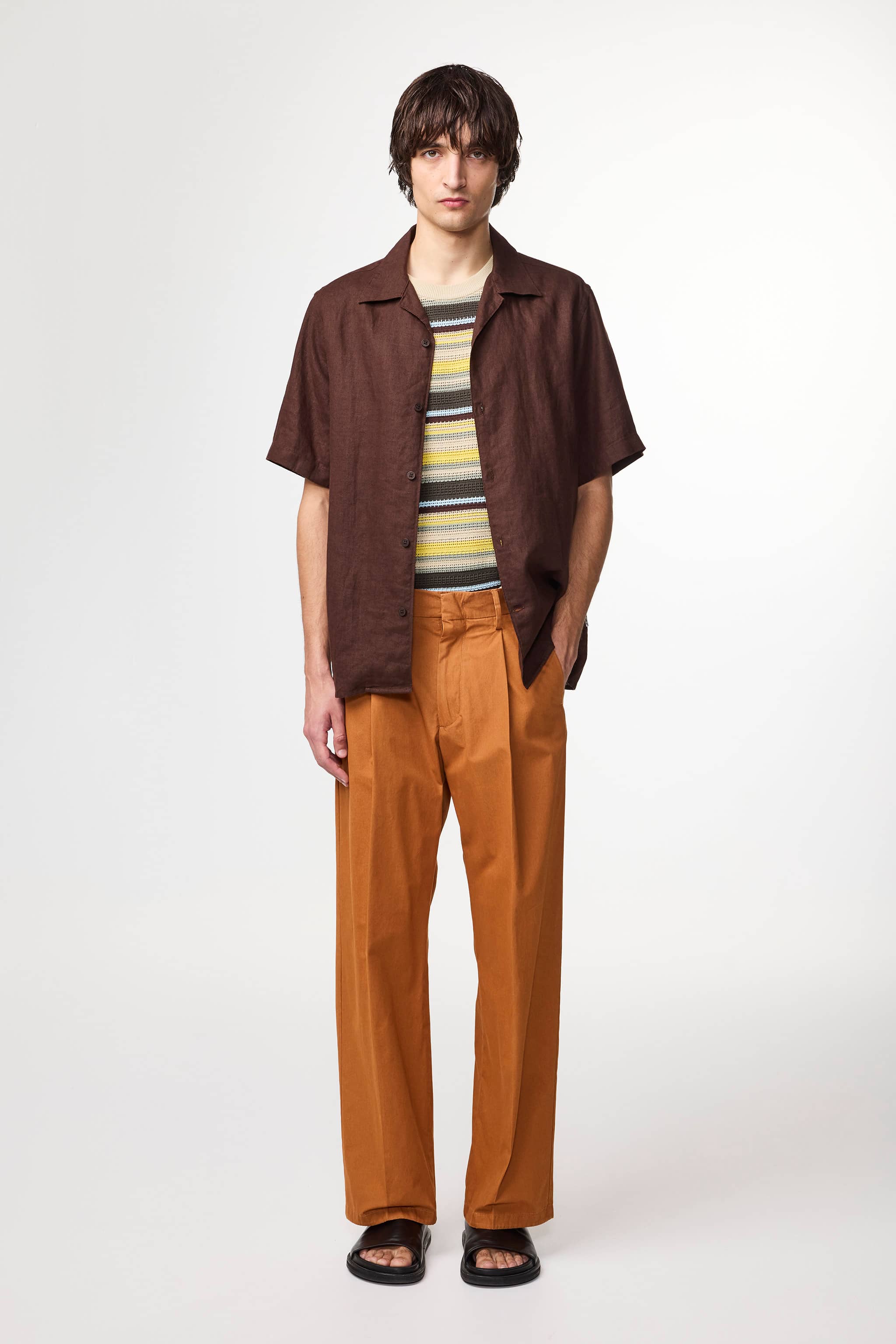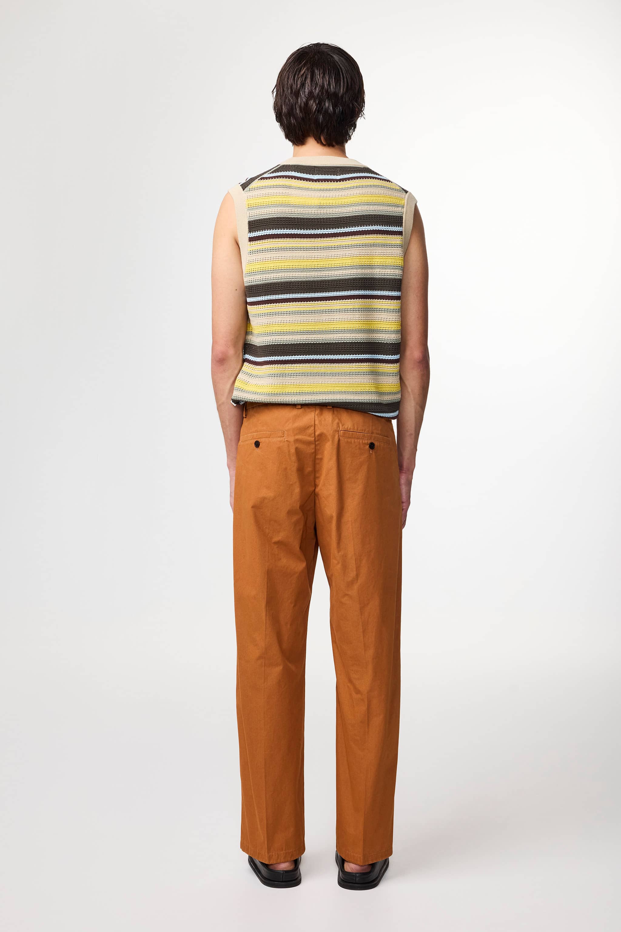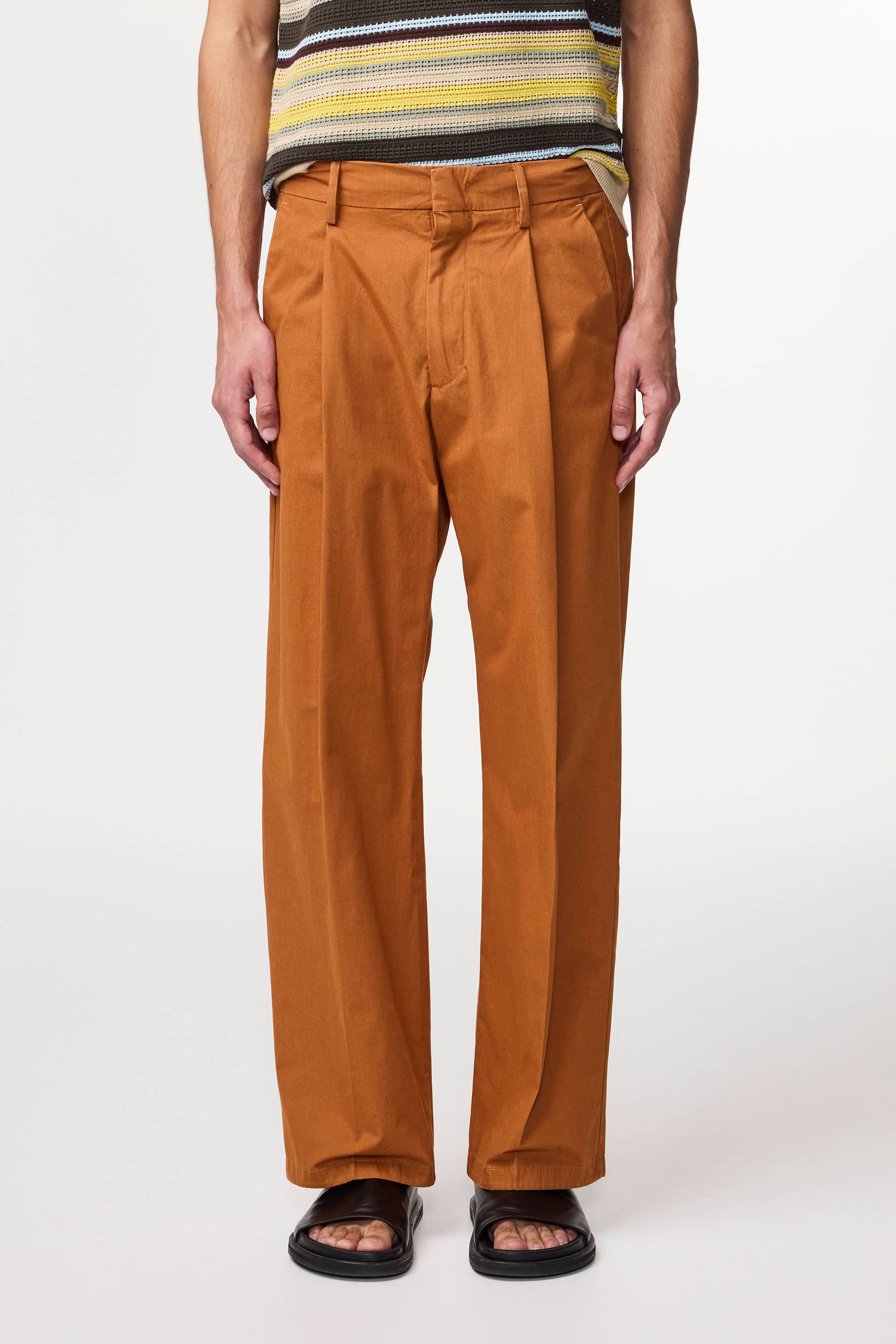 Relaxed-fit trousers crafted in a light, crisp 190 g/m2 organic cotton poplin. Designed with an elasticised waist for extra comfort and pleats at the front.