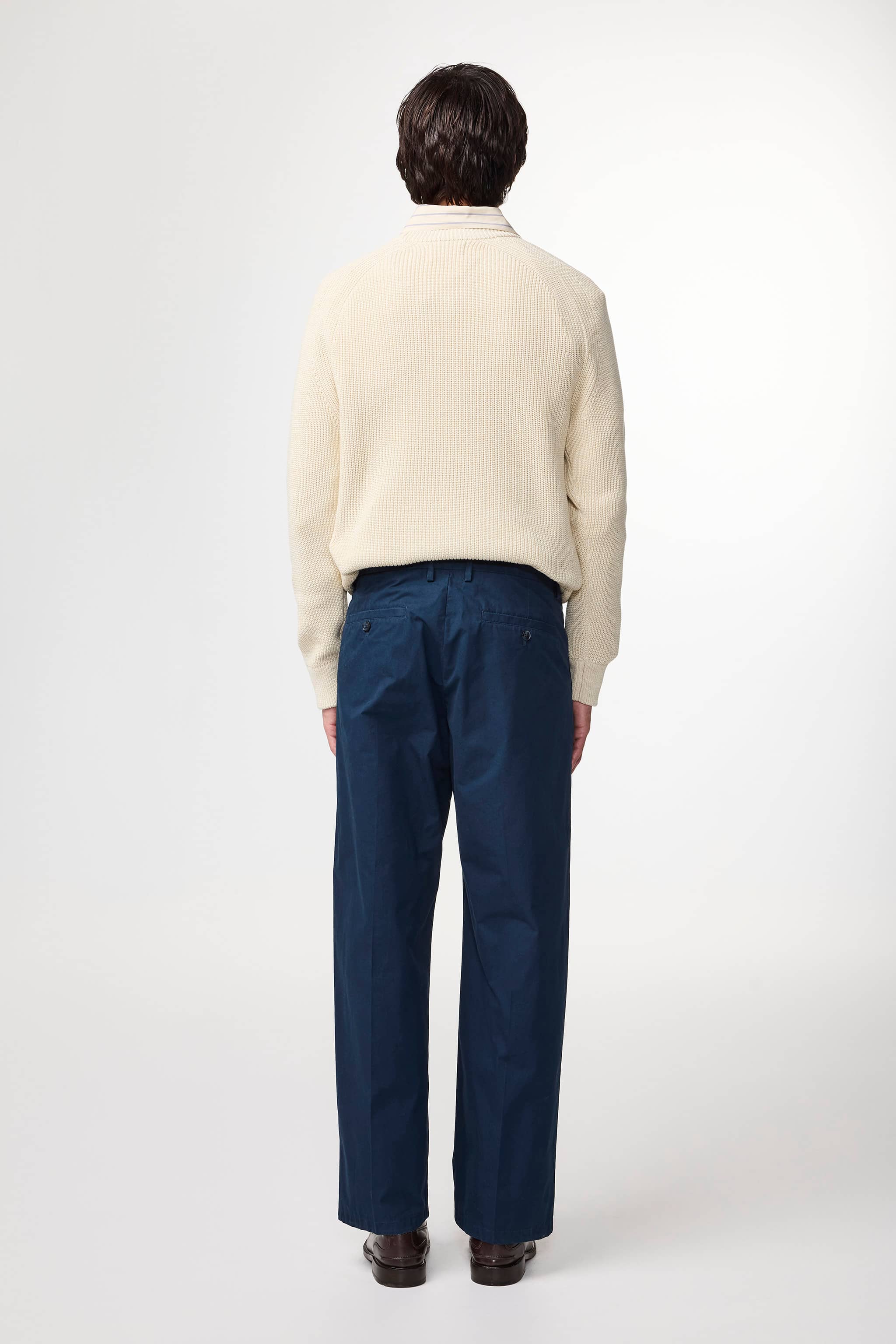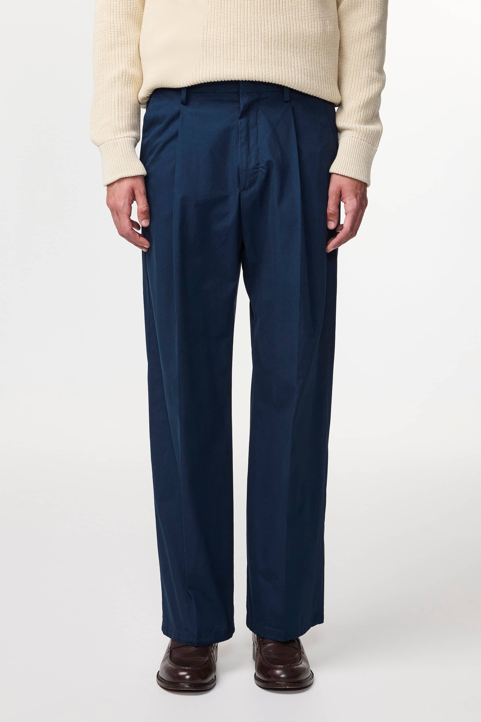 Relaxed-fit trousers crafted in a light, crisp 190 g/m2 organic cotton poplin. Designed with an elasticised waist for extra comfort and pleats at the front.