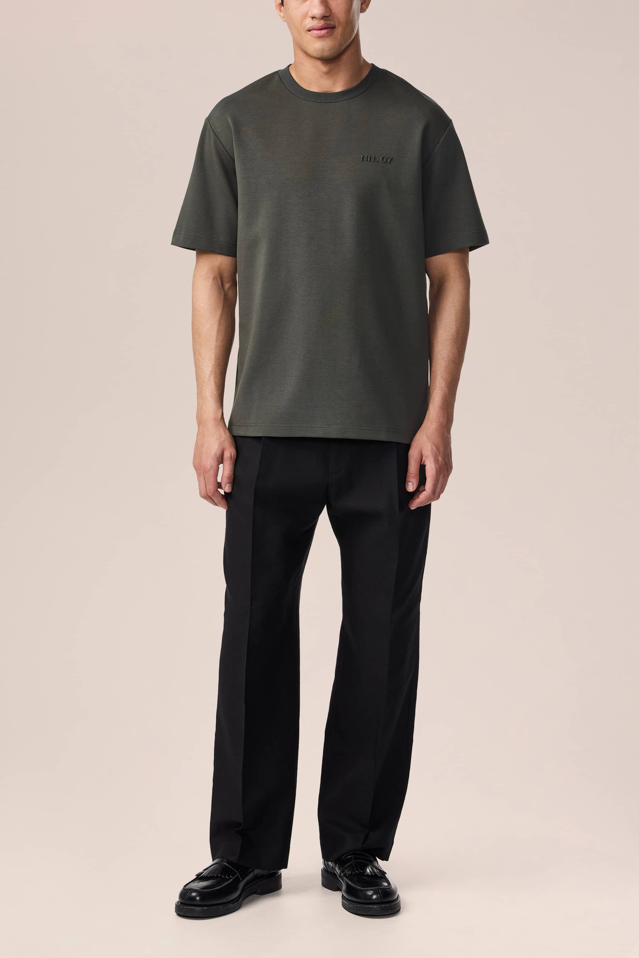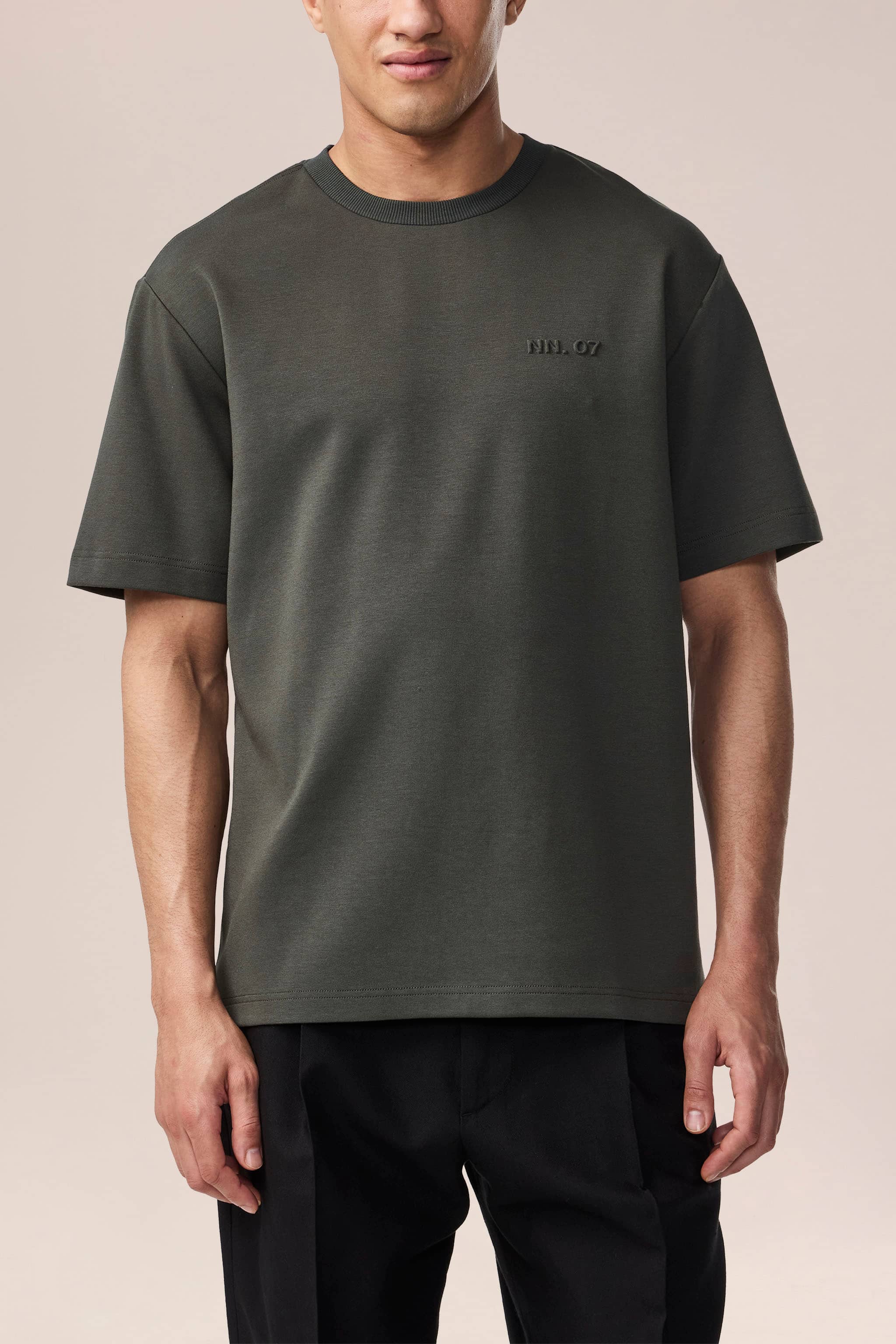 Relaxed fit logo tee knitted in organic cotton and lyocell blend with a smooth, stretchy handfeel. Features an embossed NN.07 logo on the chest and is crafted using a Ponte di Roma stitch for added comfort and modern appeal.