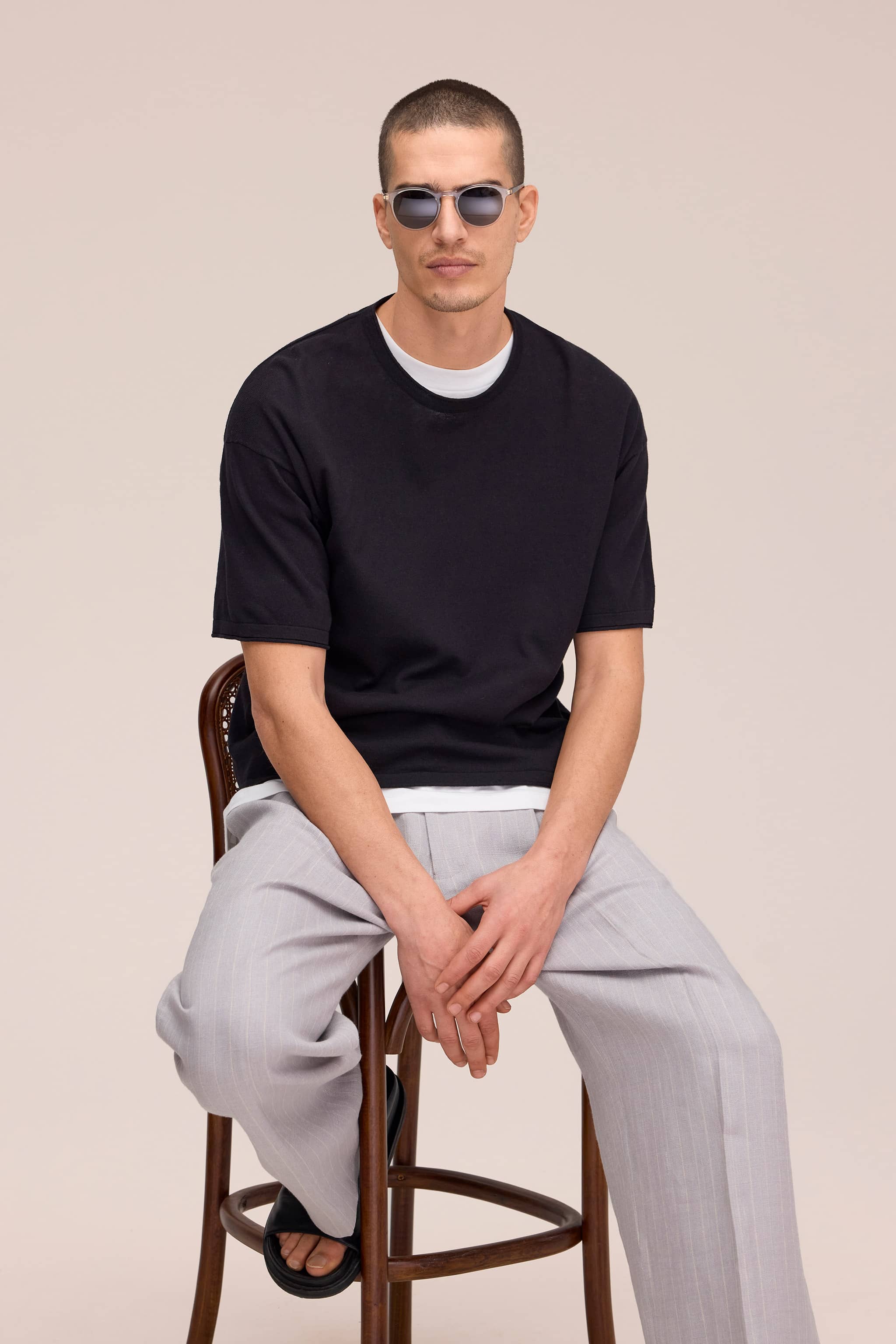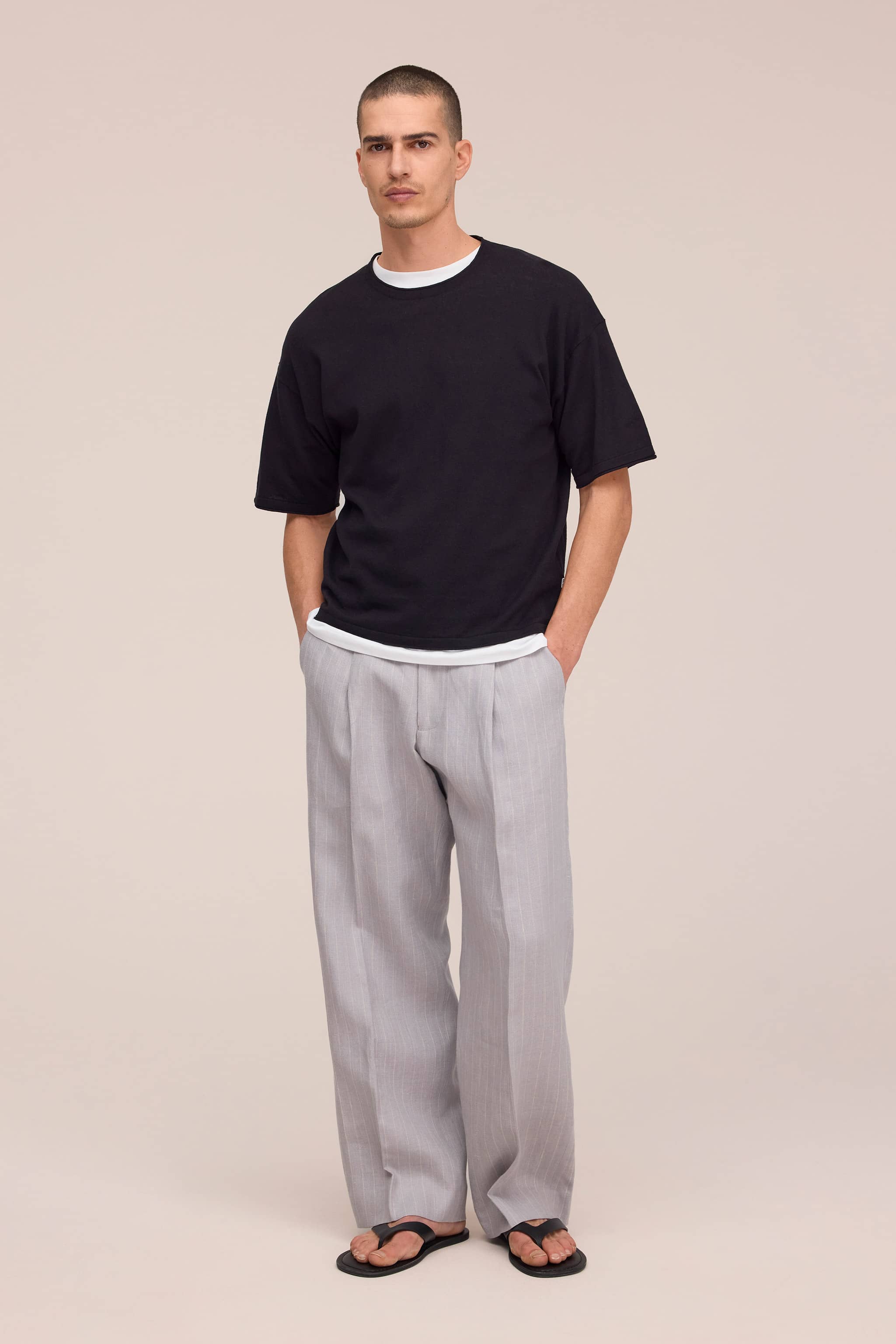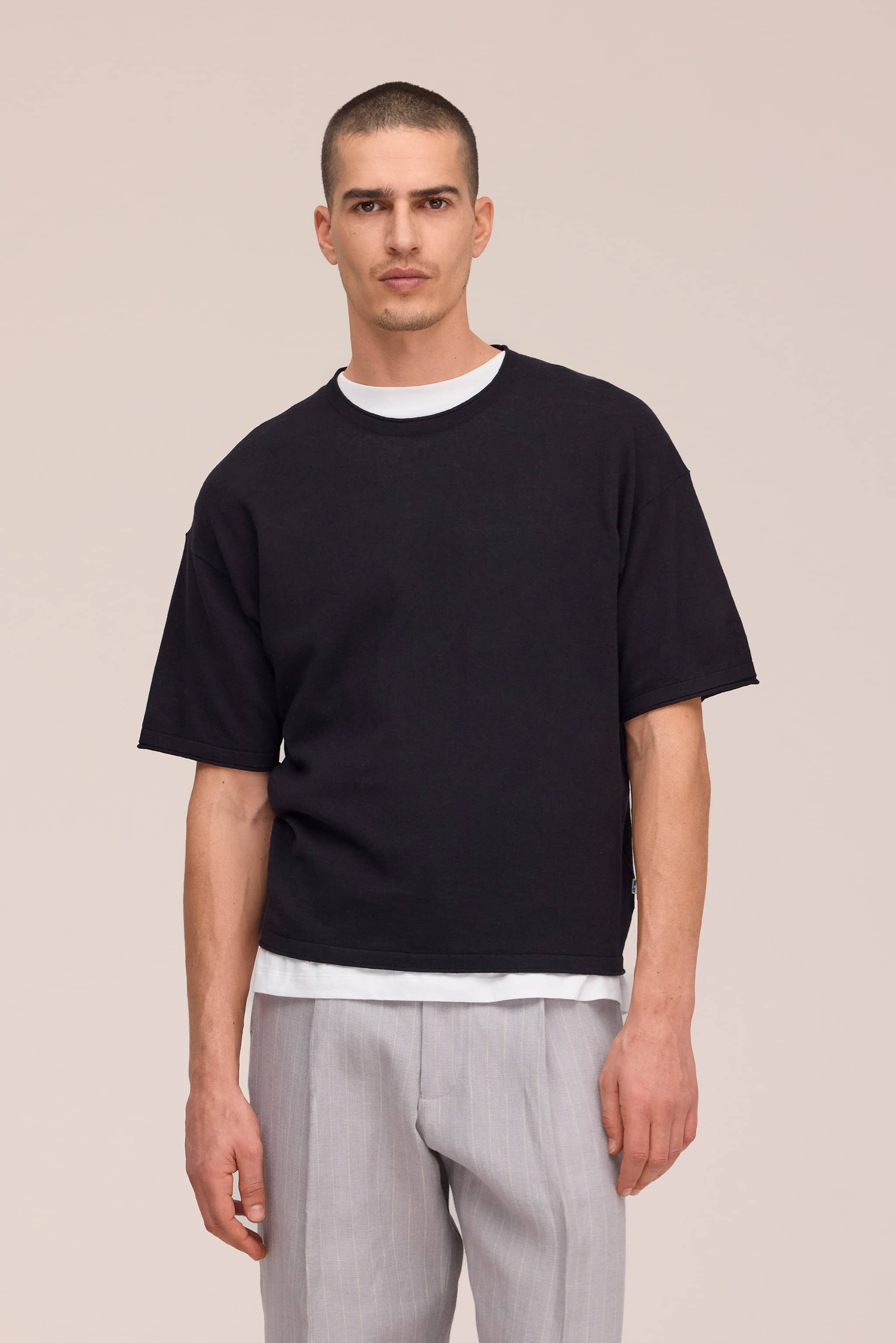Lightweight crew neck tee crafted from a cotton-linen blend with distinctive rolled edges at the neck, cuffs and hem. This super-light and breathable jersey offers a crisp yet soft handfeel, making it perfect for warm weather layering.
