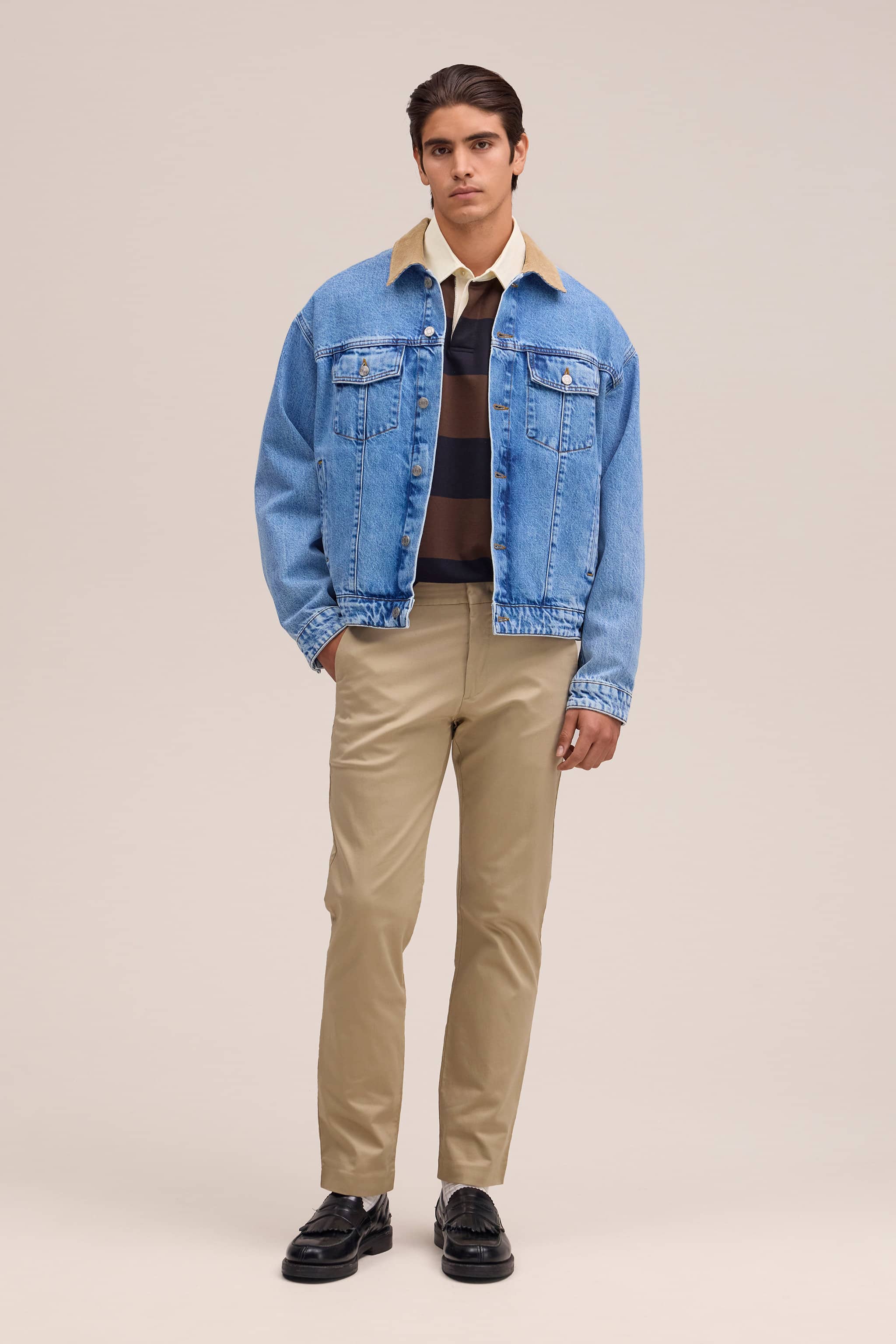 Slim tailored chino with tapered leg crafted in a 260 g/m2 soft organic cotton blend complete with a crisp crease and blind hem. Tailored details with a Cobrax hook and eye closure and welt pockets.