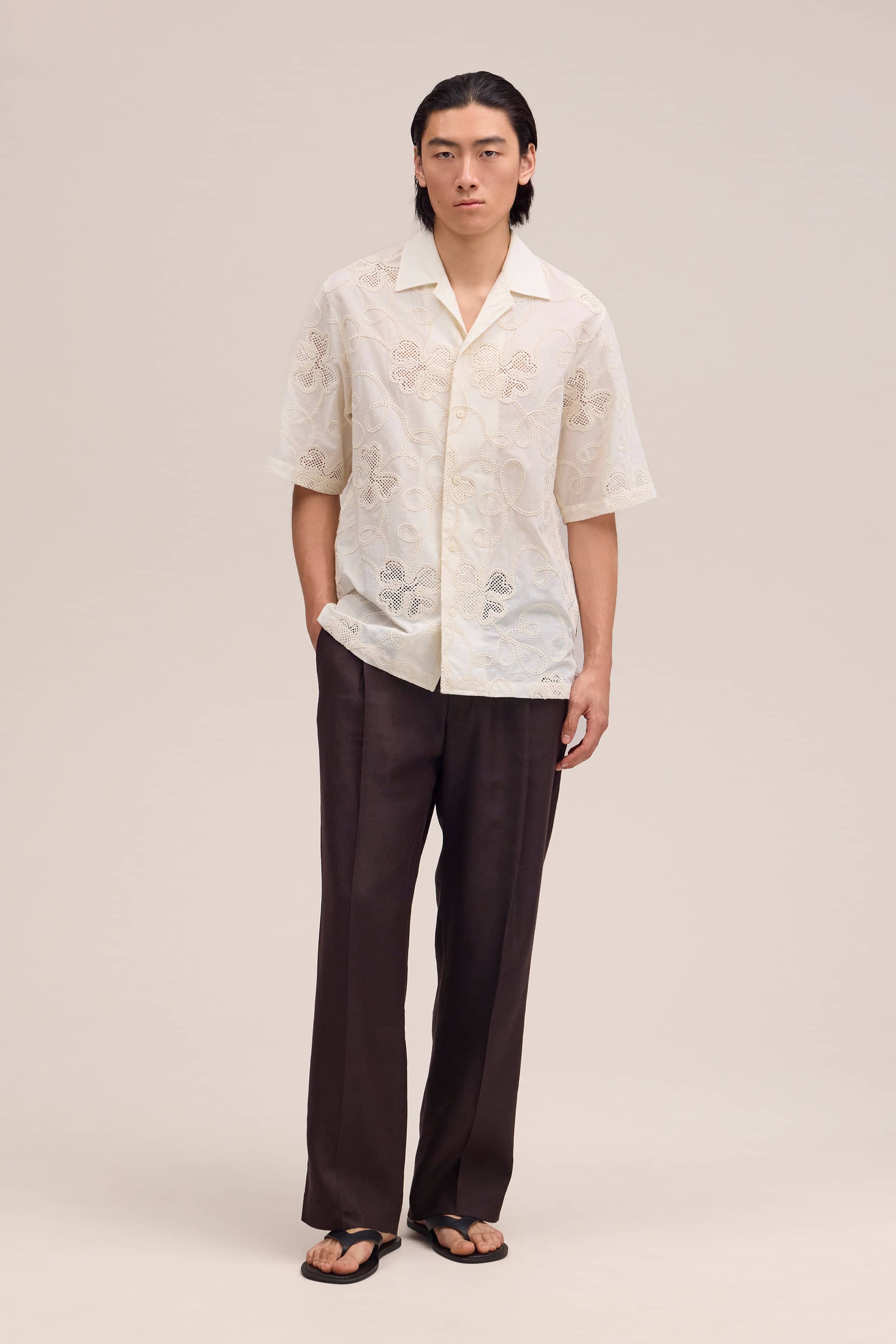 Relaxed short sleeve shirt made from organic cotton with a crisp poplin texture. The embroidered cut-out pattern results in an airy, open-texture structure.