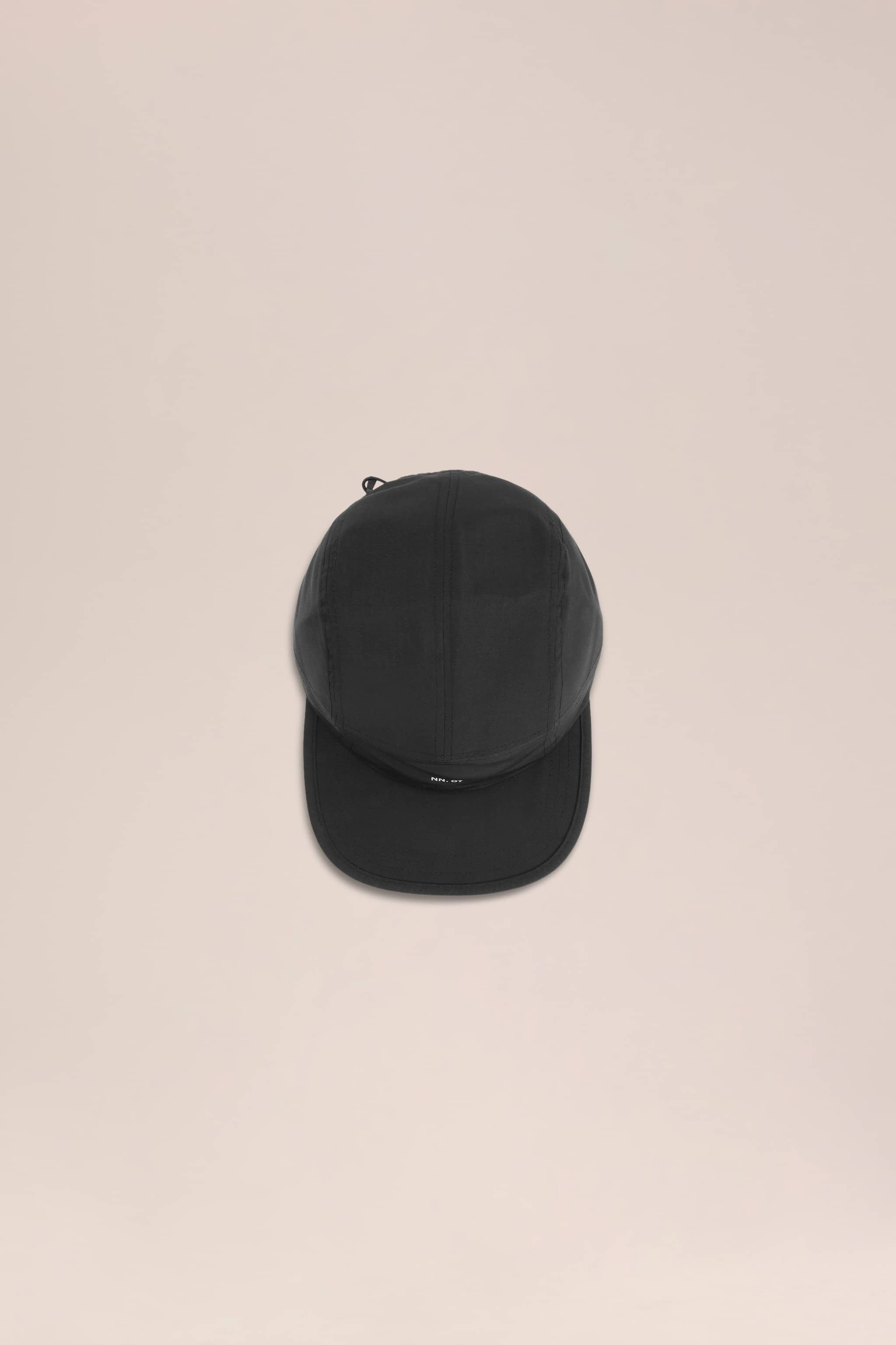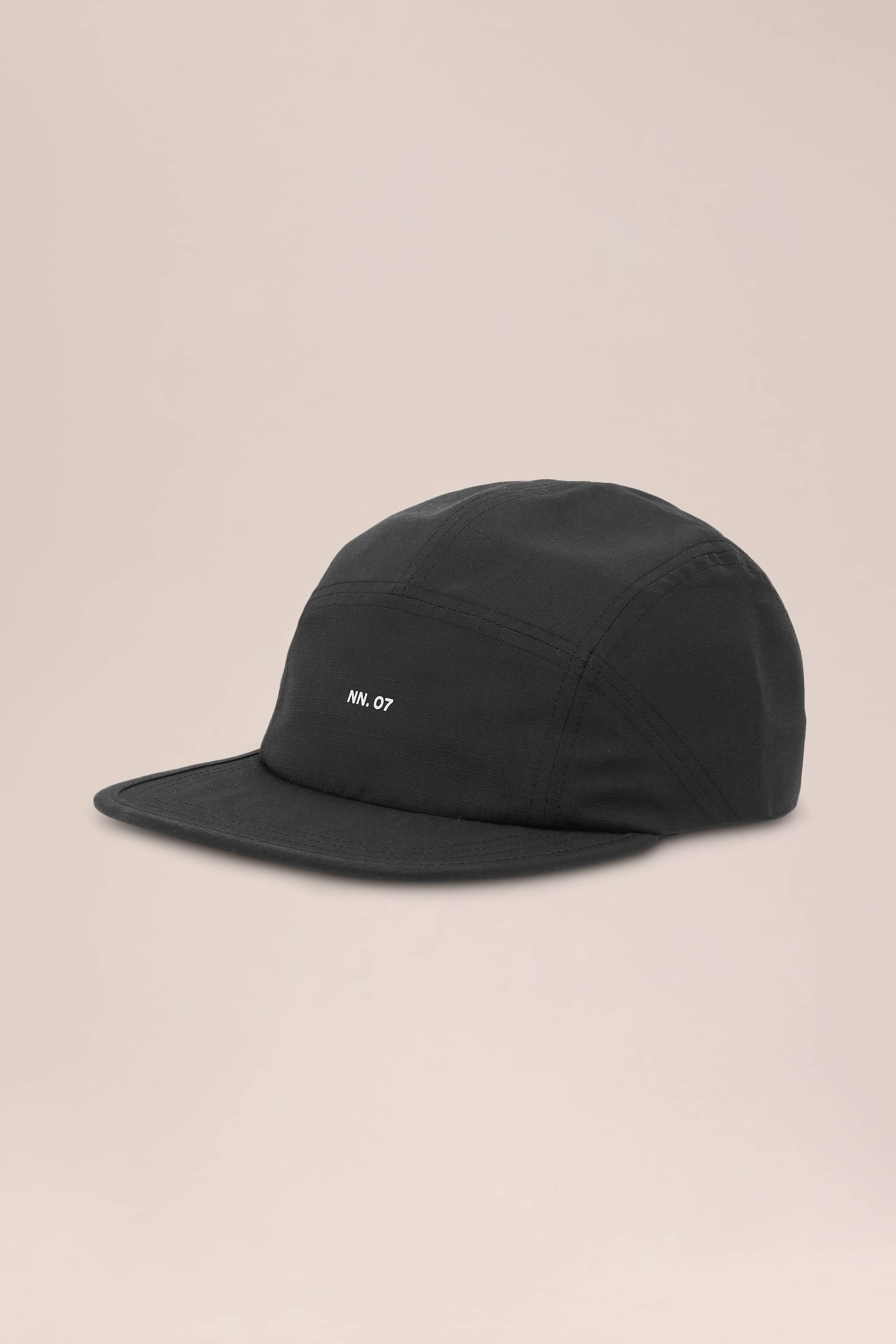 Seven-panel cap crafted from recycled polyester ripstop with a signature crispy feel and water repellent finish. Designed with contrasting black trims including elastic binding along the brim and structured yet lightweight construction for a modern technical aesthetic.