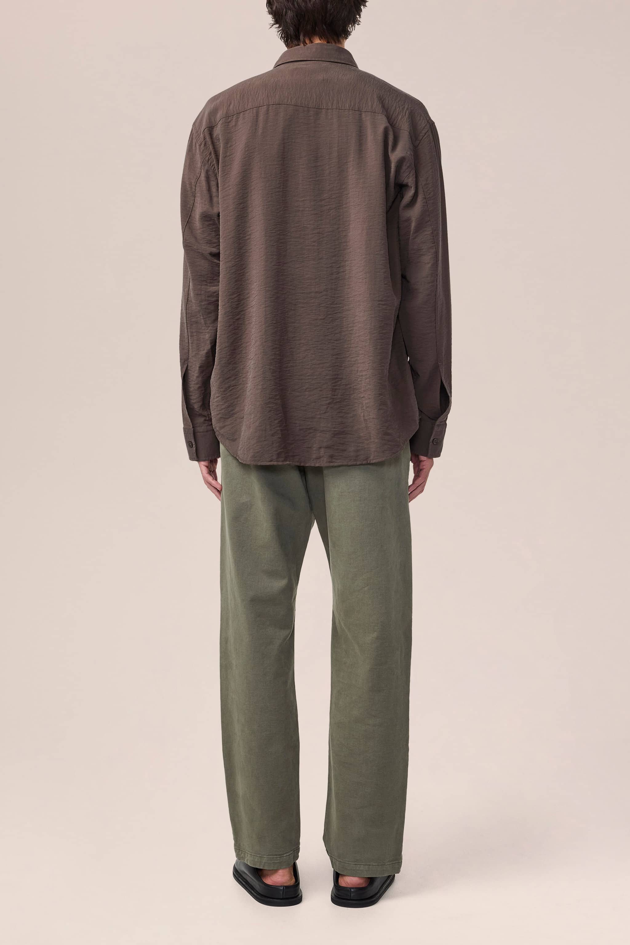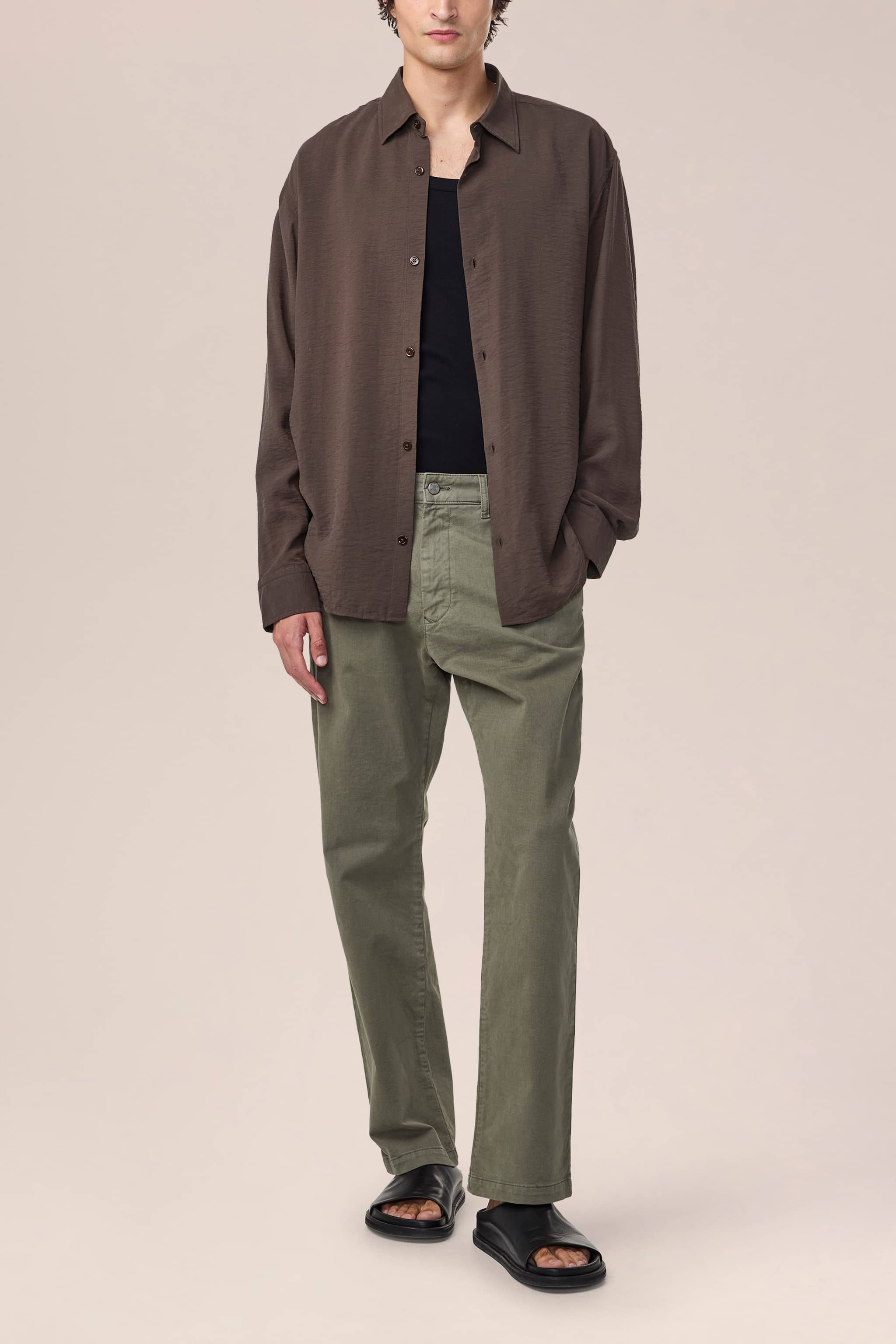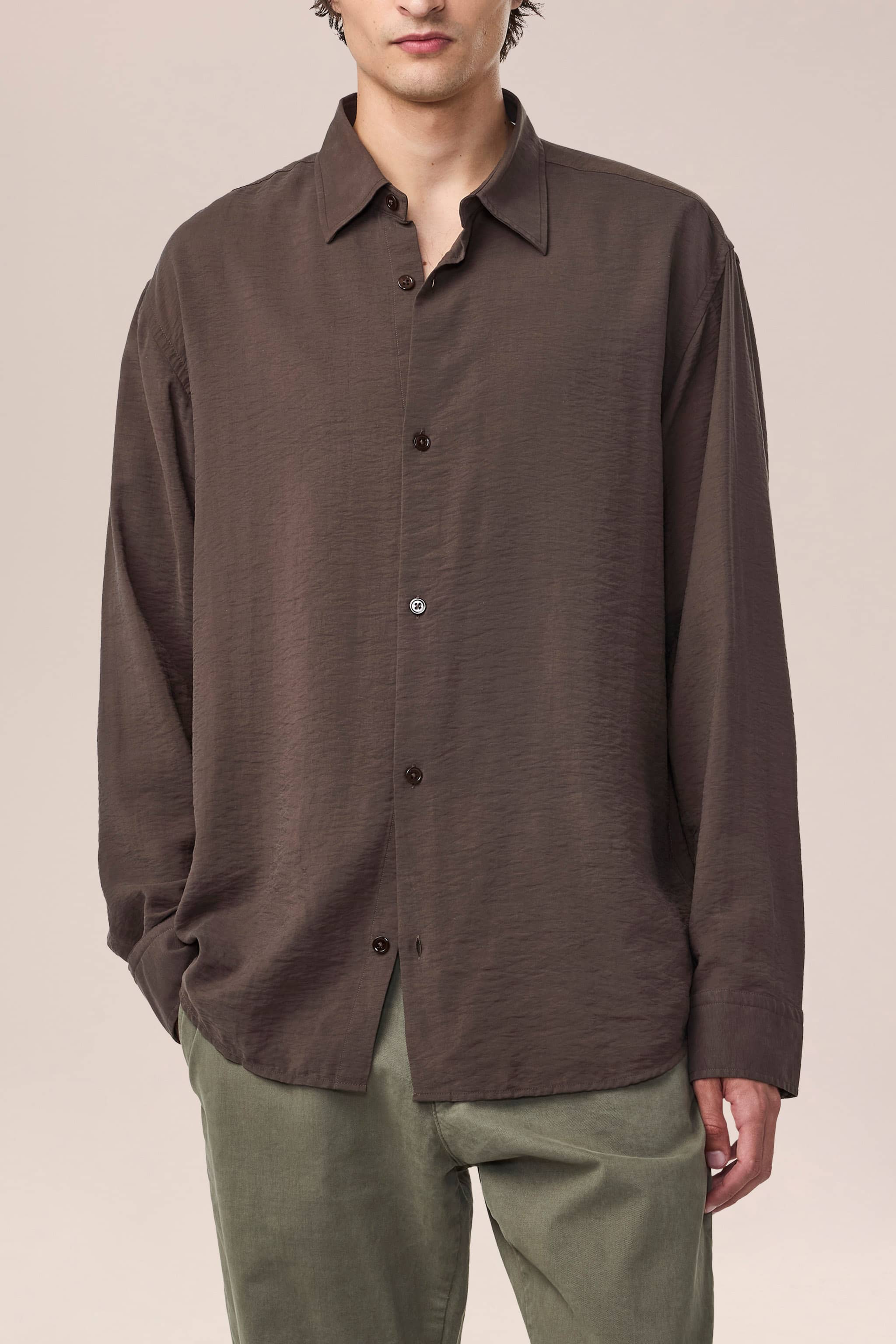 Button-up twill shirt crafted in a crisp, lightweight TENCEL™ Modal blend, topped with Mother-of-Pearl buttons.