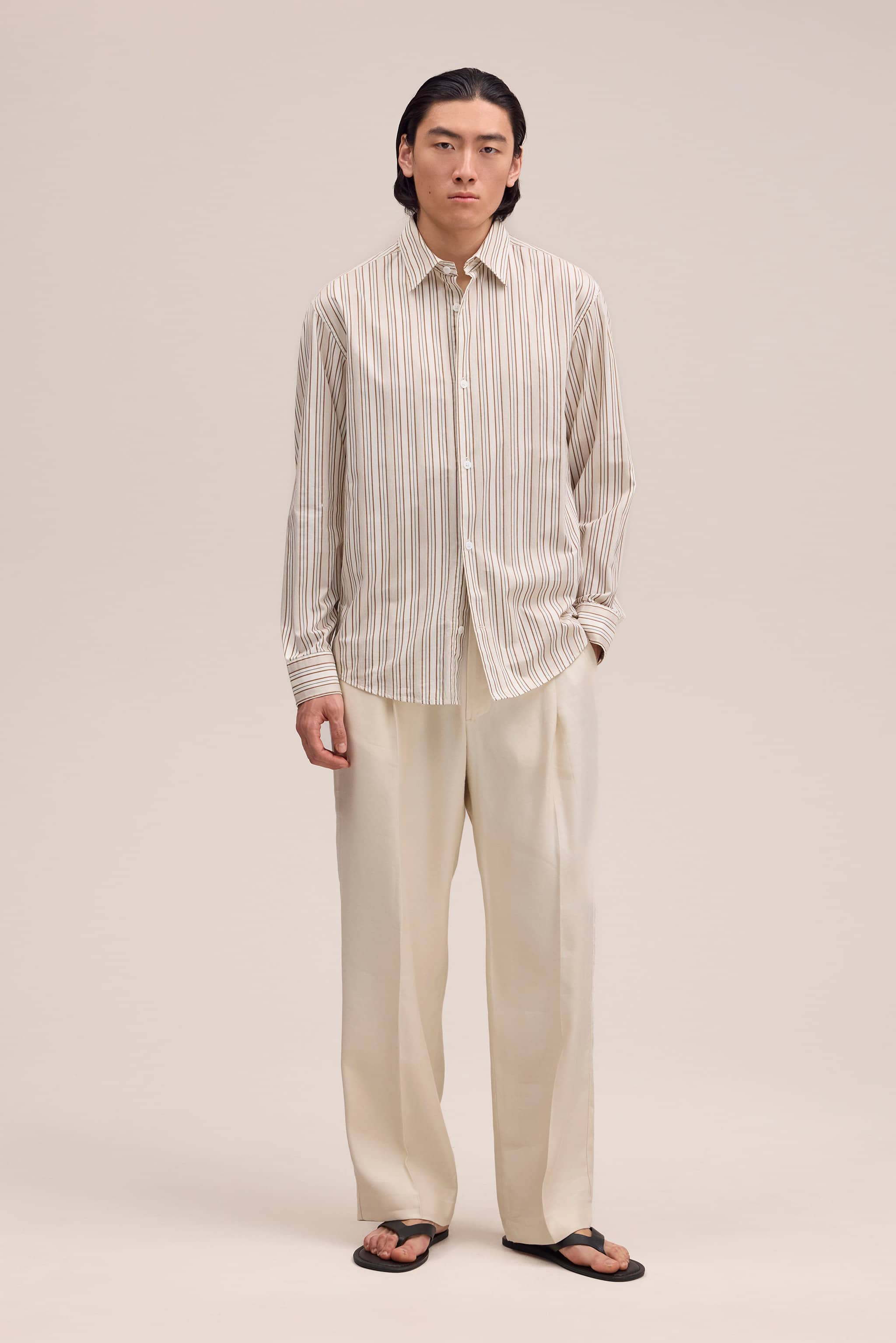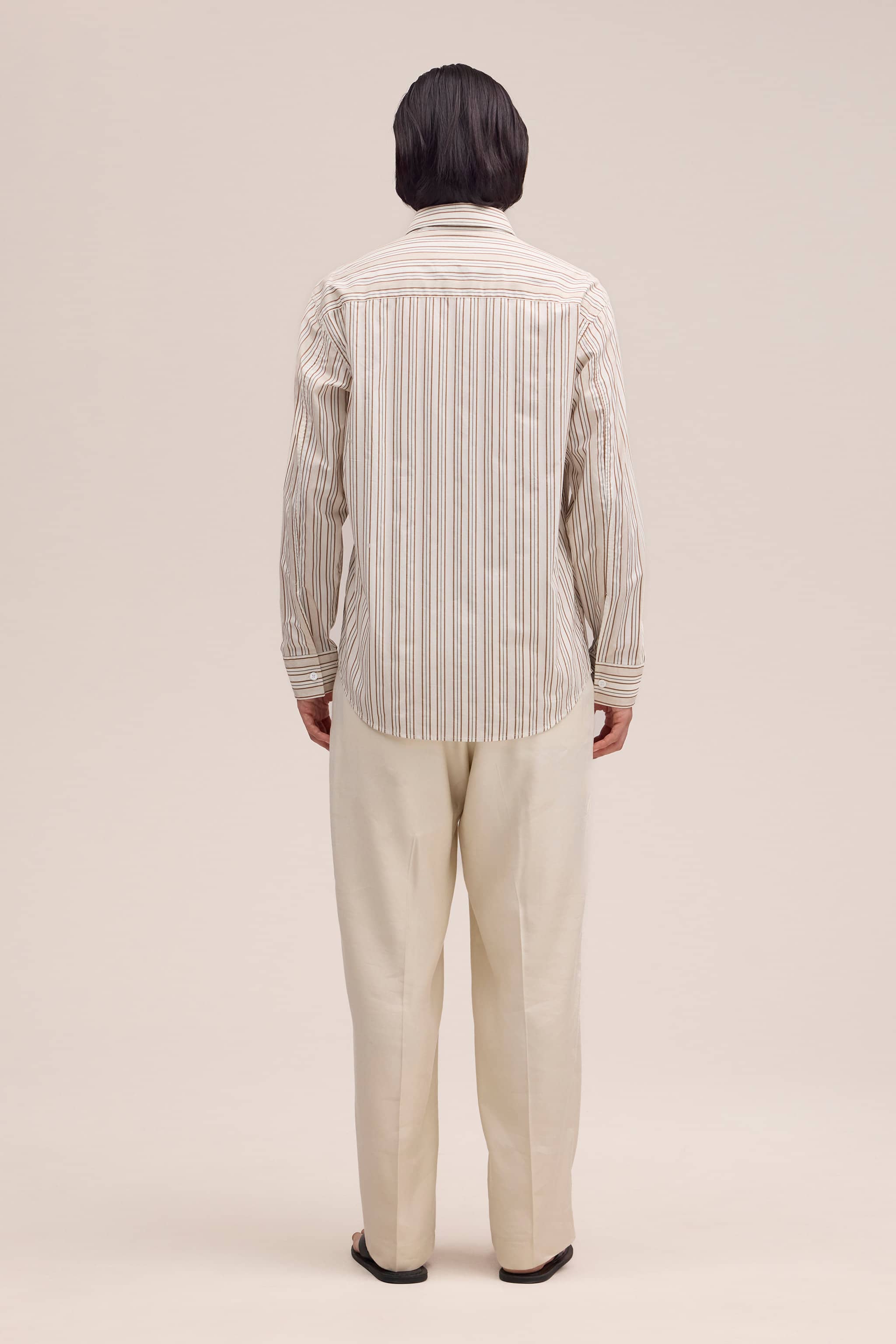 A light, smooth shirt in cotton, woven in a yarn dyed stripe. Finished with Mother-of-Pearl buttons.