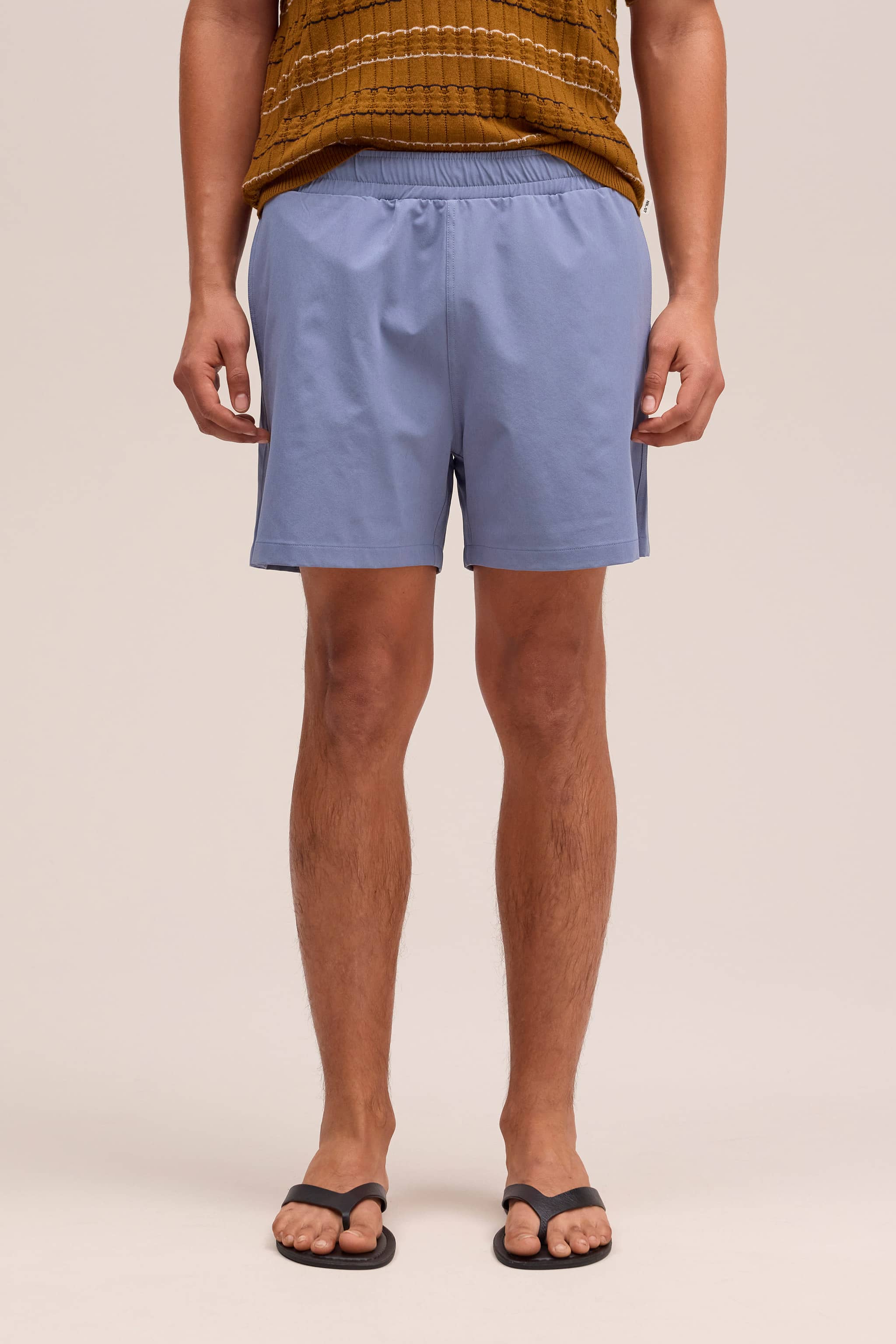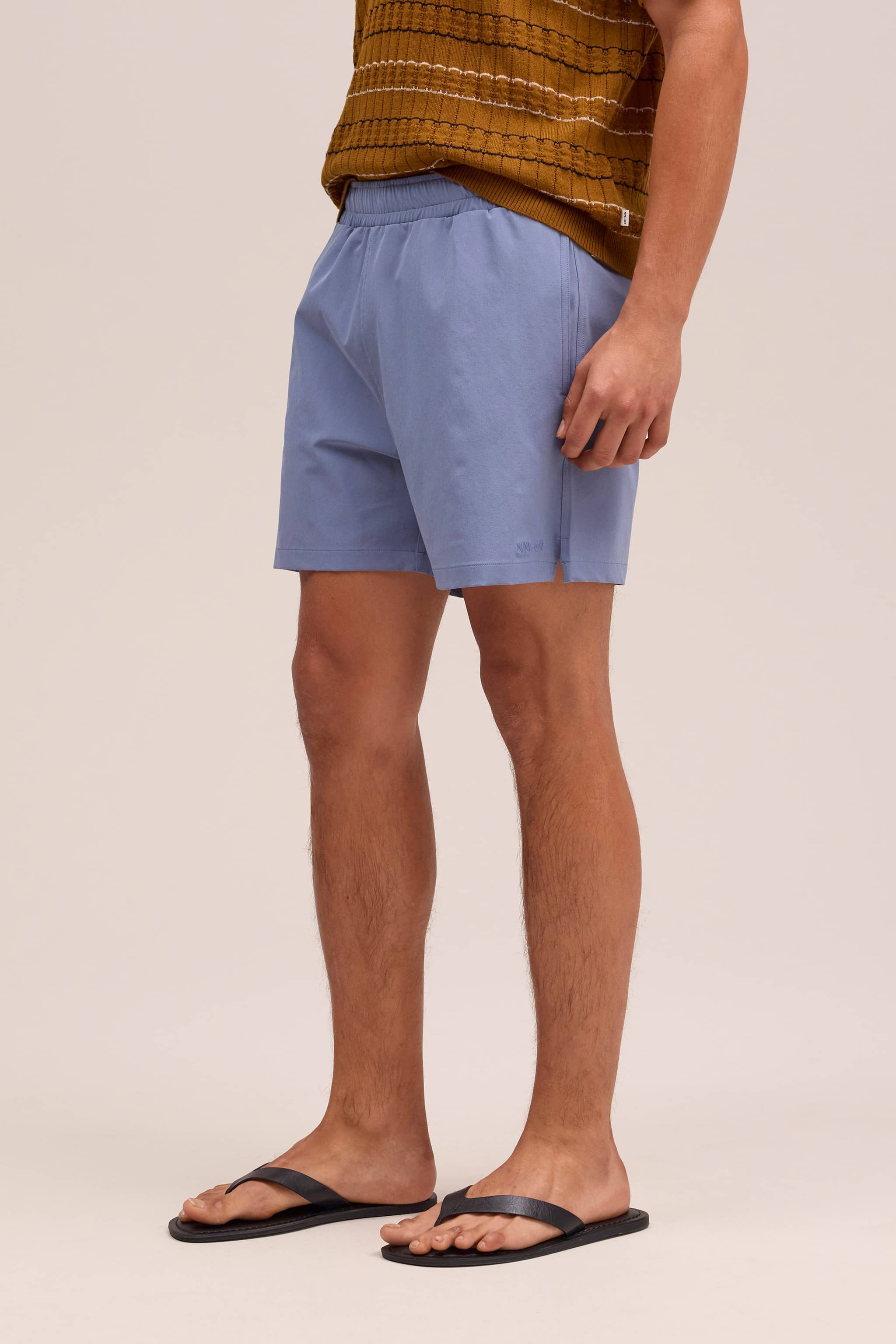 Swim shorts crafted from recycled polyester with elastane for stretch and comfort. Designed with a light and drapey handfeel, featuring an elasticated waistband with drawstring closure and a practical zip pocket at the back. Finished with NN.07 embroidery detailing at the front.