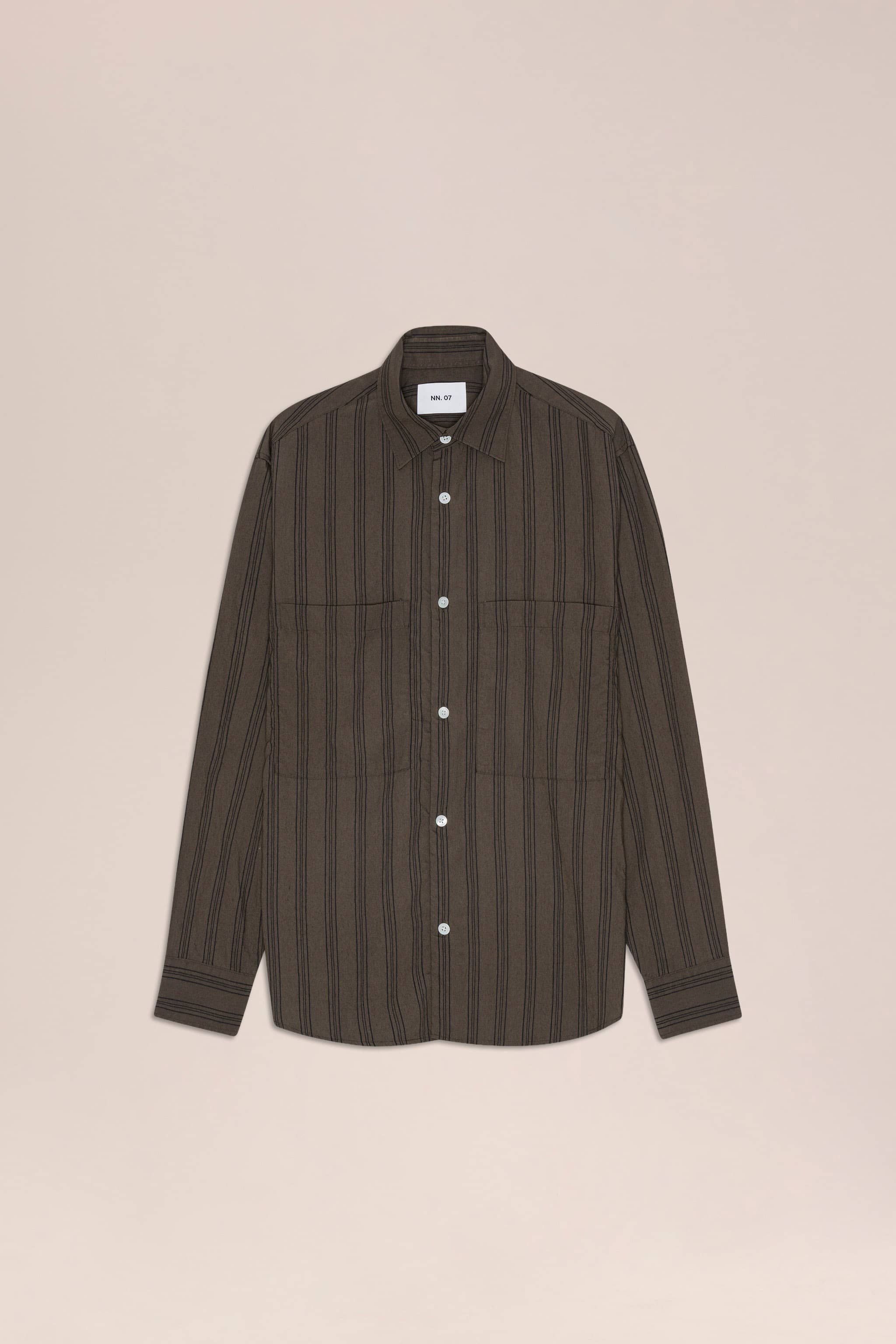Lightweight yarn dyed striped shirt craft in a TENCEL™ modal blend and topped with NN.07 logo Mother-of-Pearl buttons.