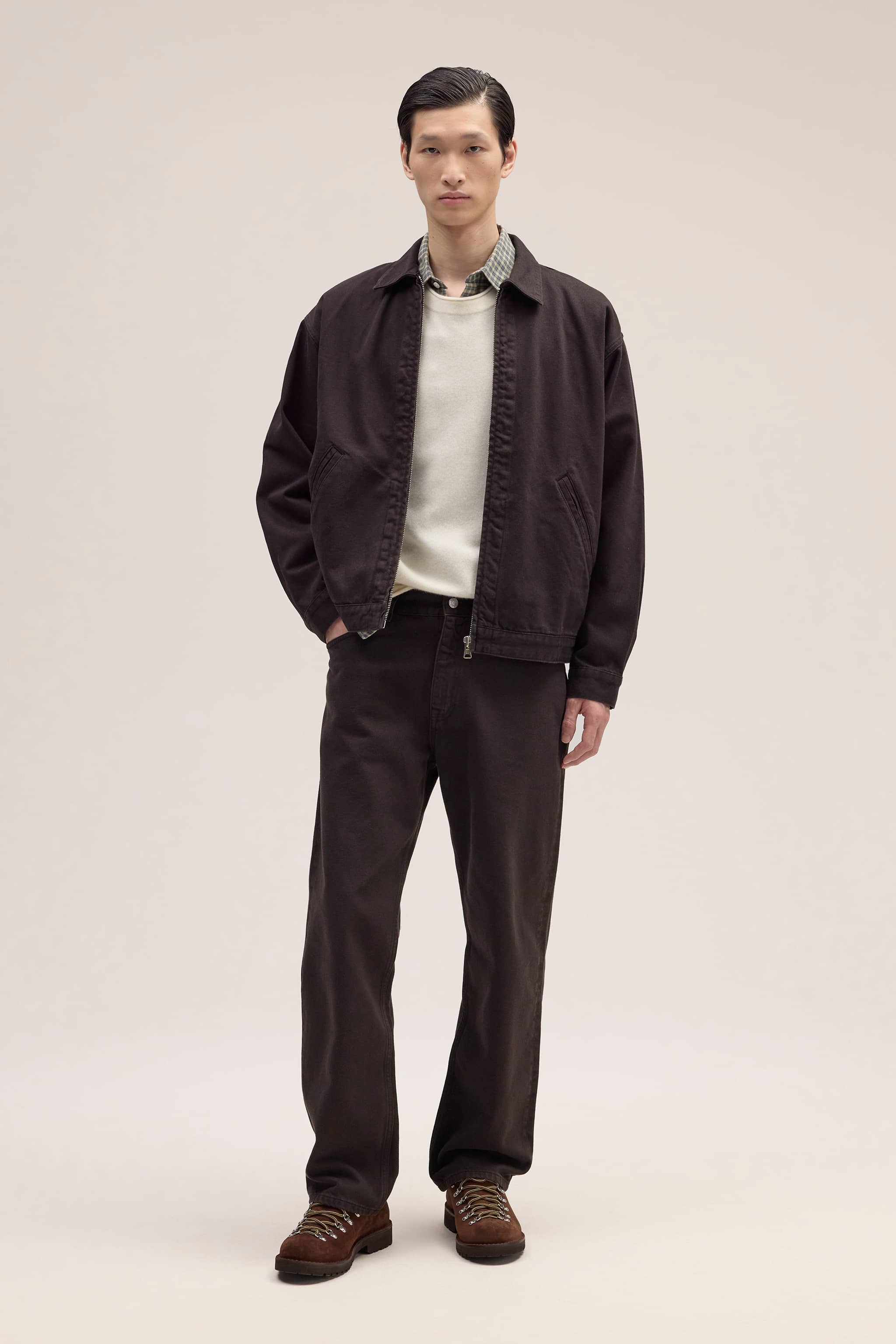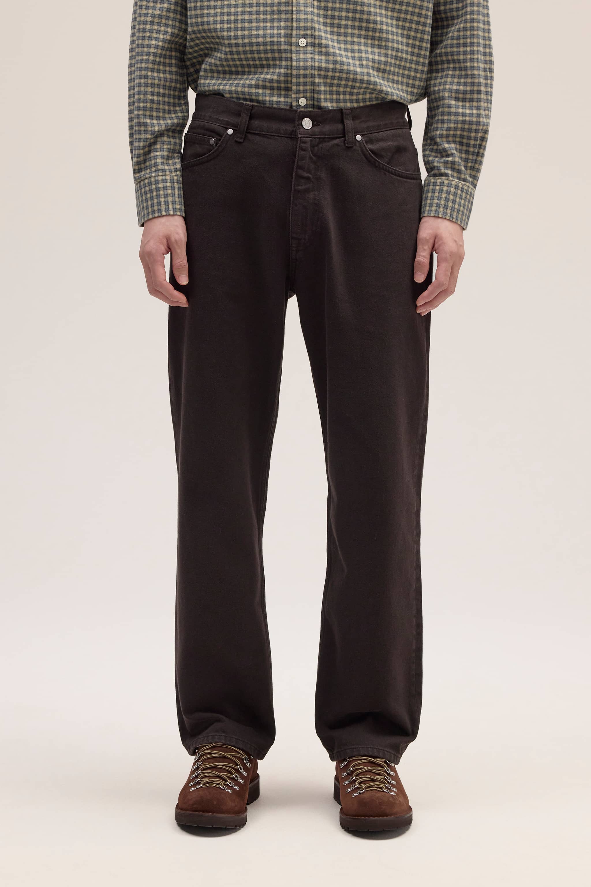 Relaxed-fit trousers crafted from heavyweight 385 g/m² organic cotton gabardine with a vintage garment-dyed finish. Designed with a straight, wide-leg silhouette for a bold look, and with a five-pocket styling, NN.07 logo leather patch and rivets.