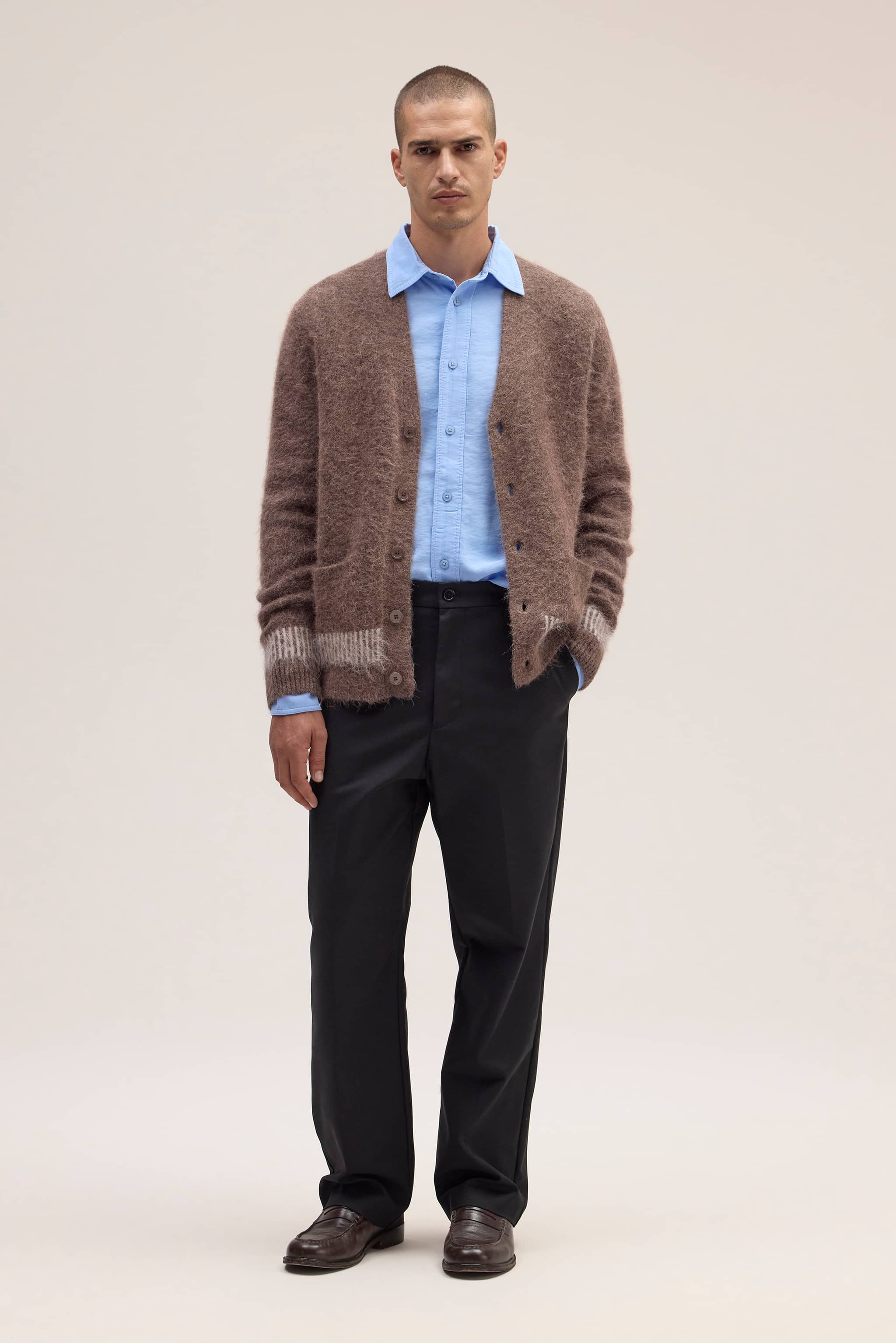 Dress trousers in a relaxed fit with a straight leg, made from a 350 g/m² soft cotton blend with a touch of stretch. Finished with a rinse wash, pressed creases, and embossed NN.07 logo buttons.