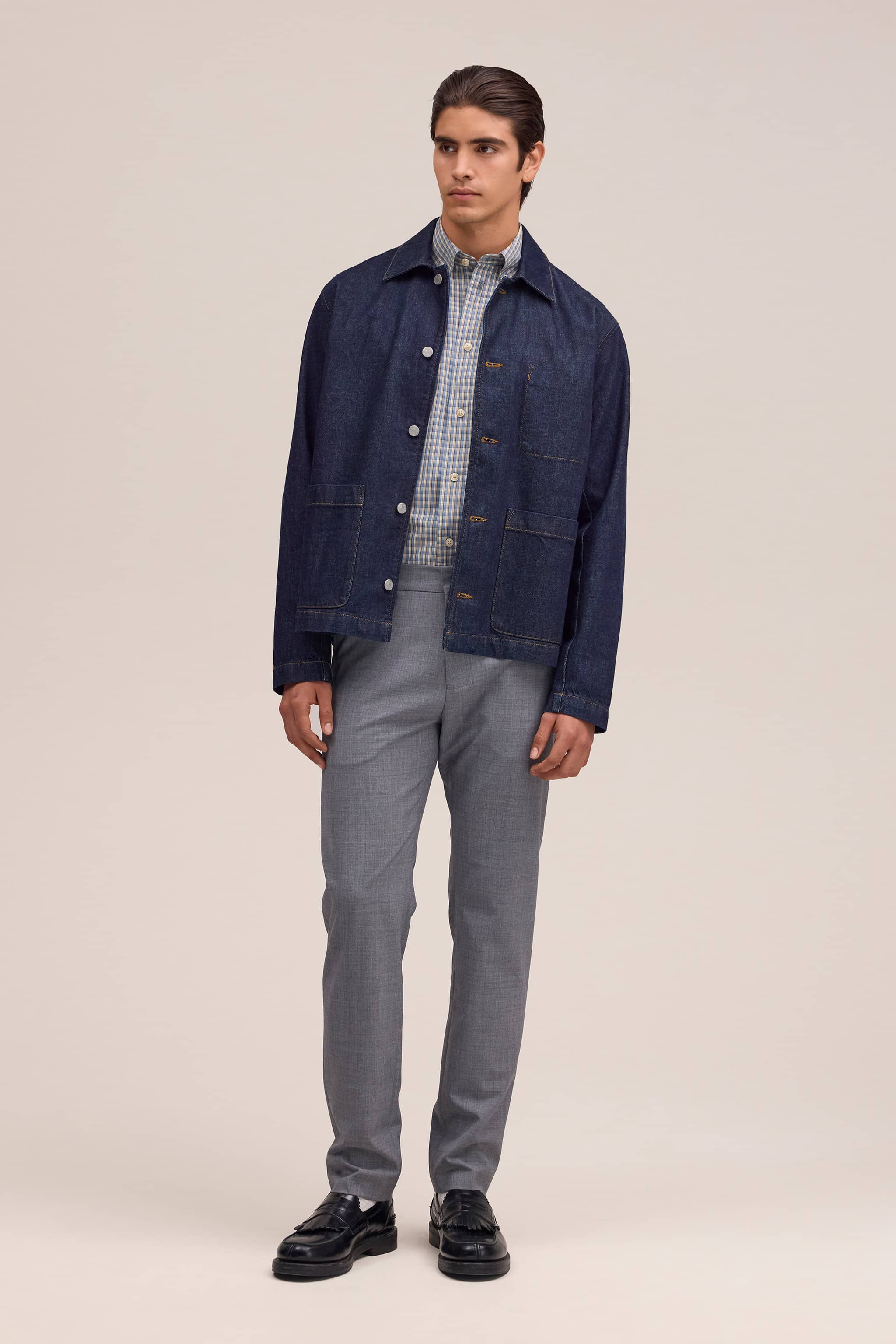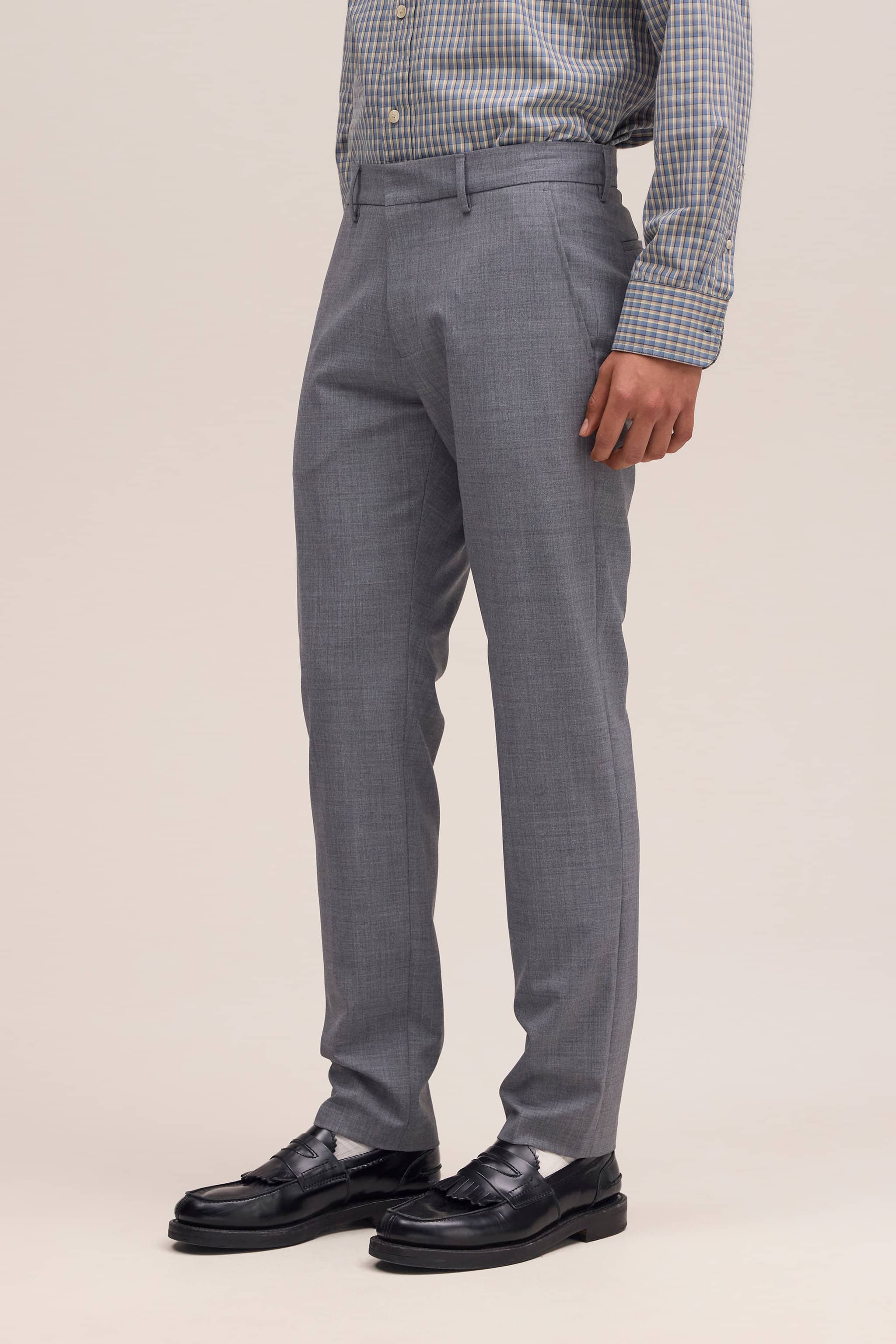 Slim-fit chinos with a slim leg, crafted from a washable wool blend with added elasticity for movement. Features a tailored waistband, hook and bar closure and a refined drapey, dressy look.