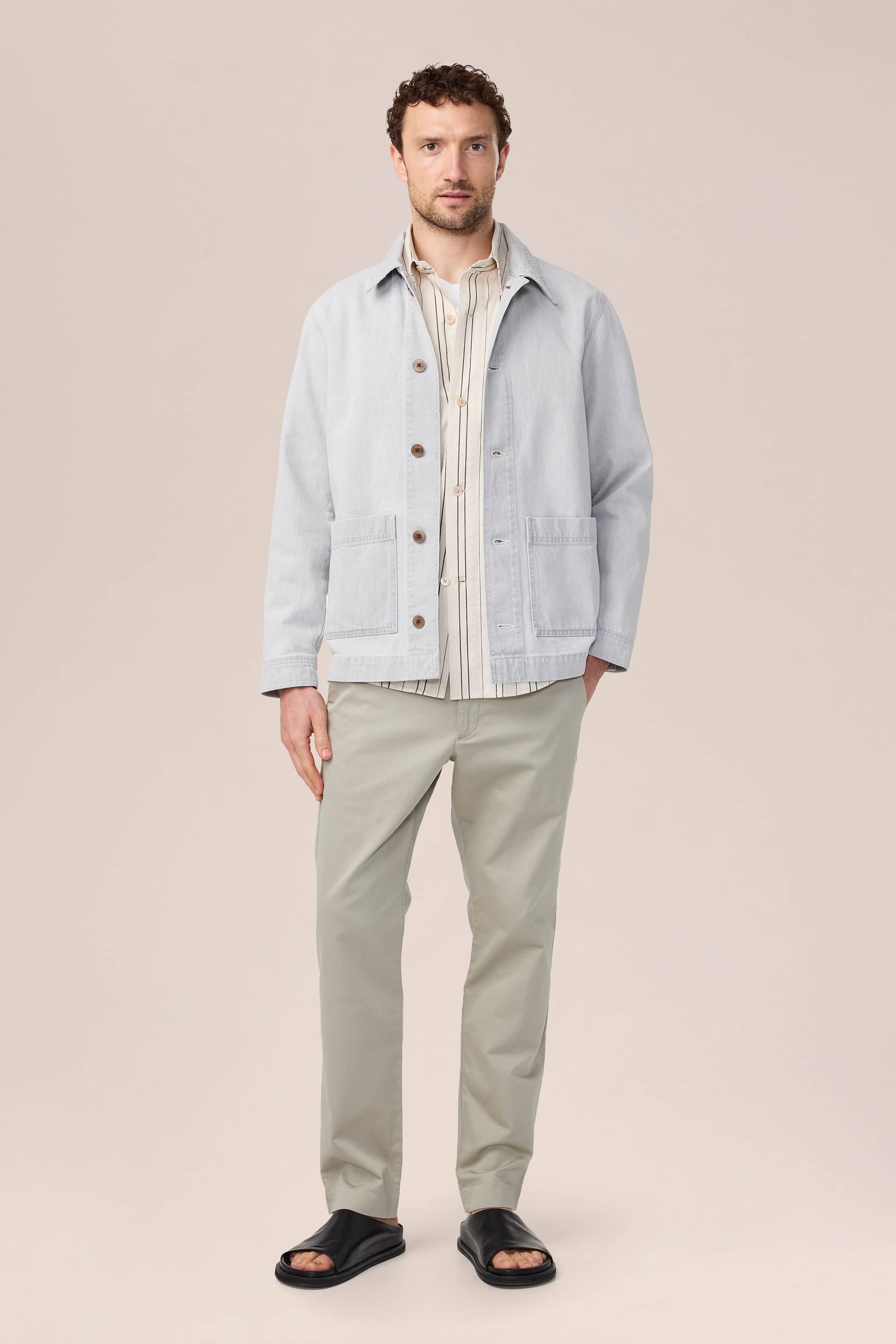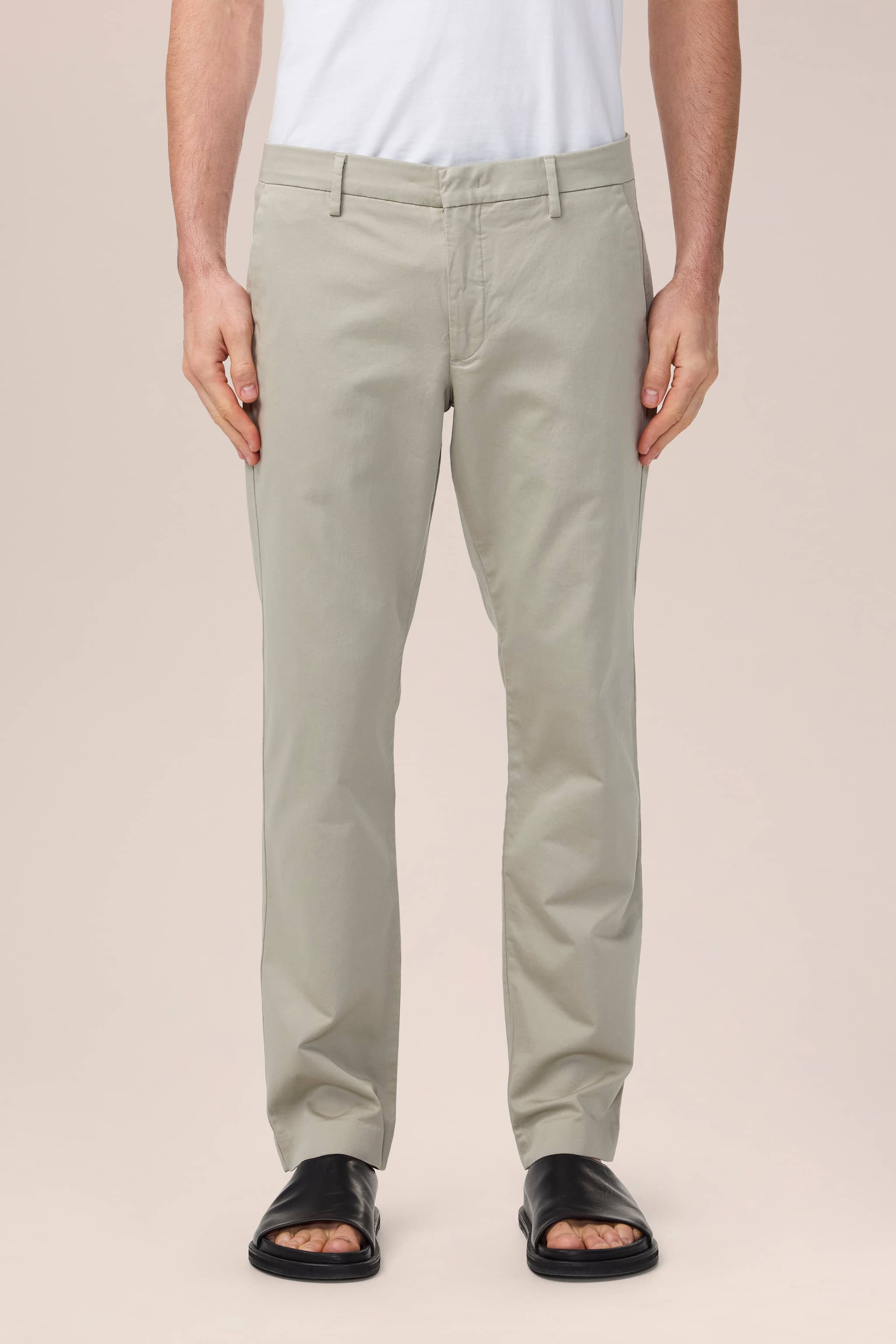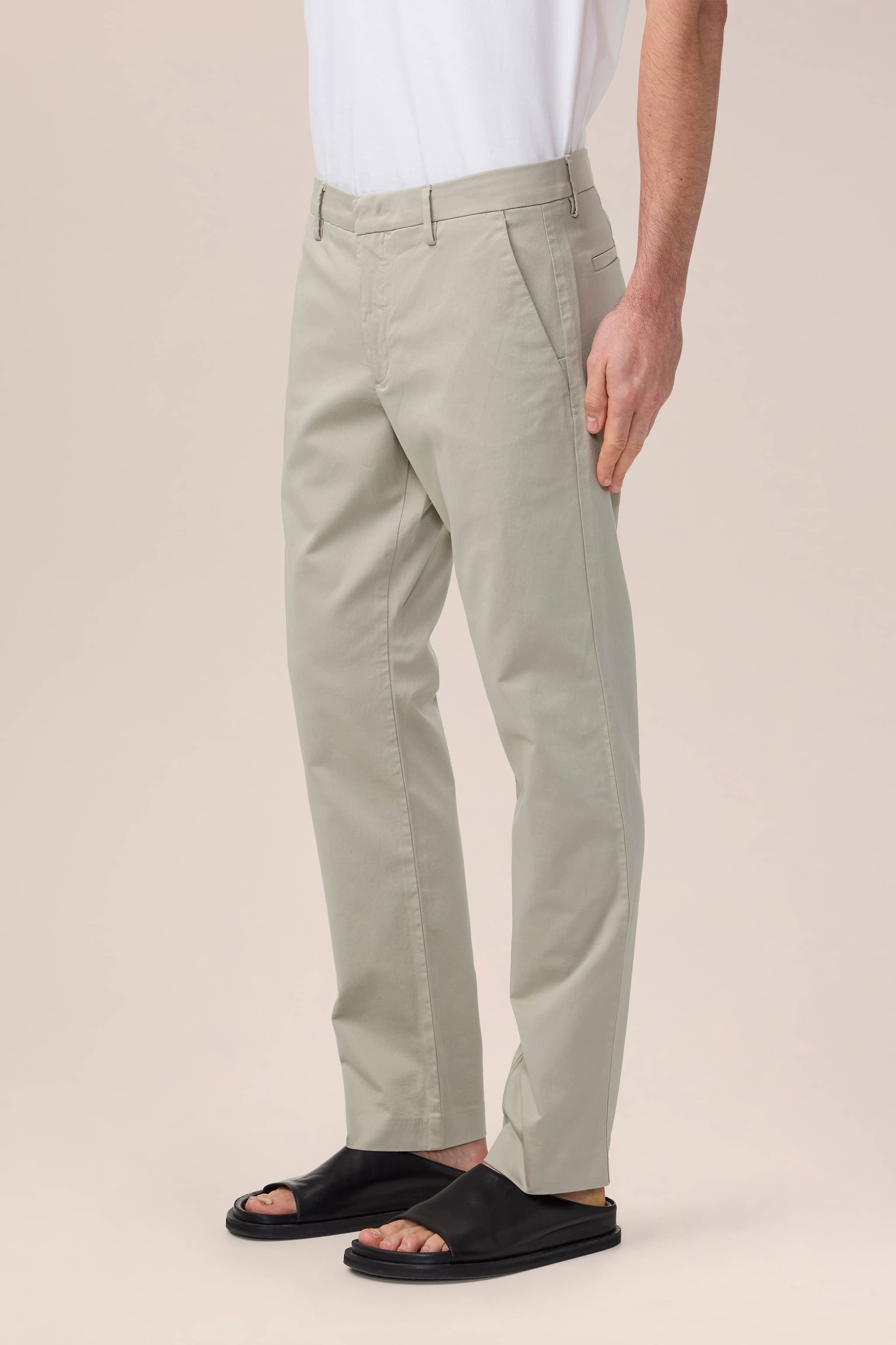 Slim tailored chino with tapered leg crafted in a 260 g/m2 soft organic cotton blend complete with a crisp crease and blind hem. Tailored details with a Cobrax hook and eye closure and welt pockets.
