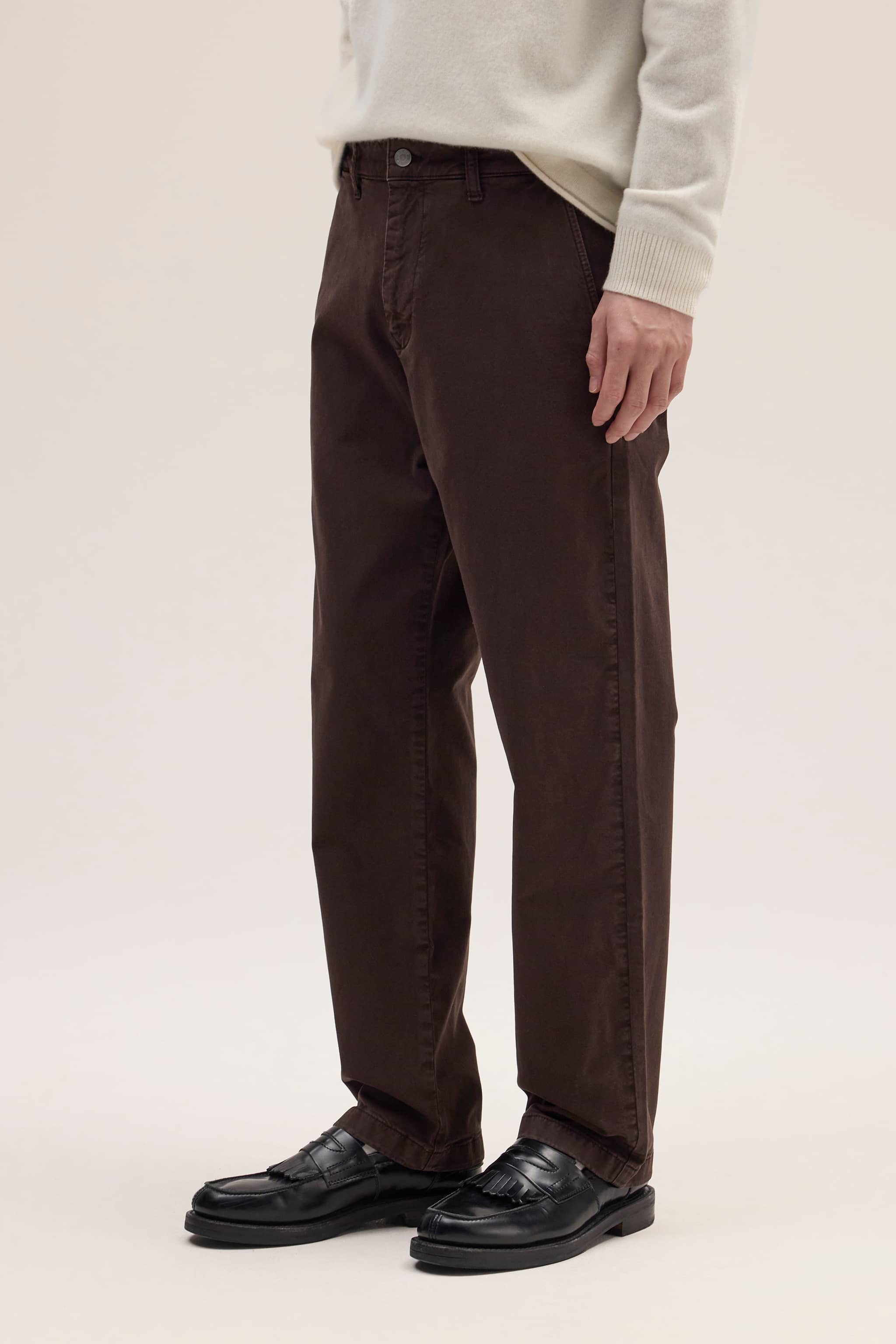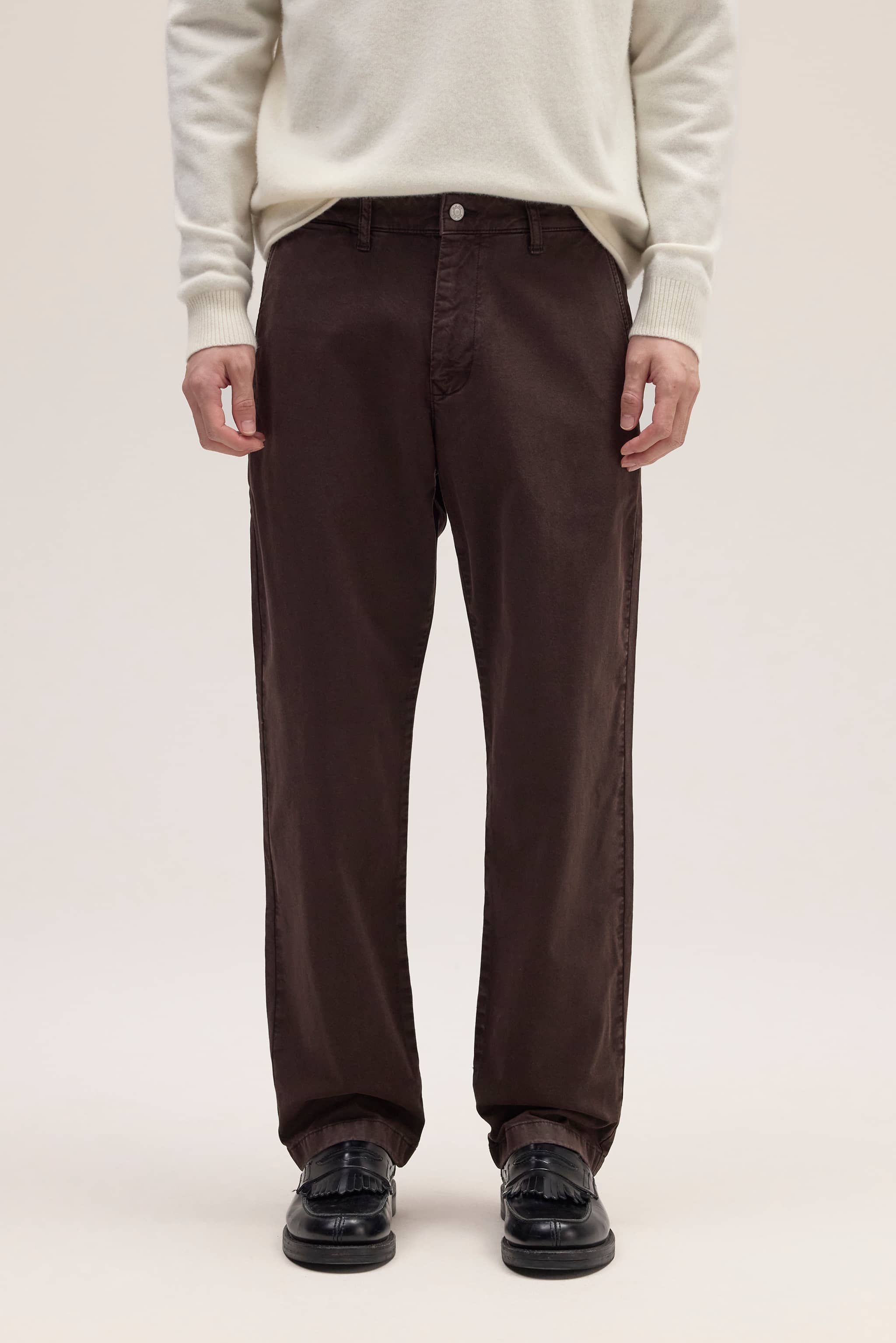 Awarded “Best New Pick 2026” by The New York Times Wirecutter and recognized as the best office pants, these chinos are crafted from an organic cotton-blend twill with a hint of stretch for all-day comfort. Garment-dyed for a soft, peachy handfeel, they’re finished with subtle embroidery details and a classic jeans button closure for a clean, refined look suited to everyday wear.