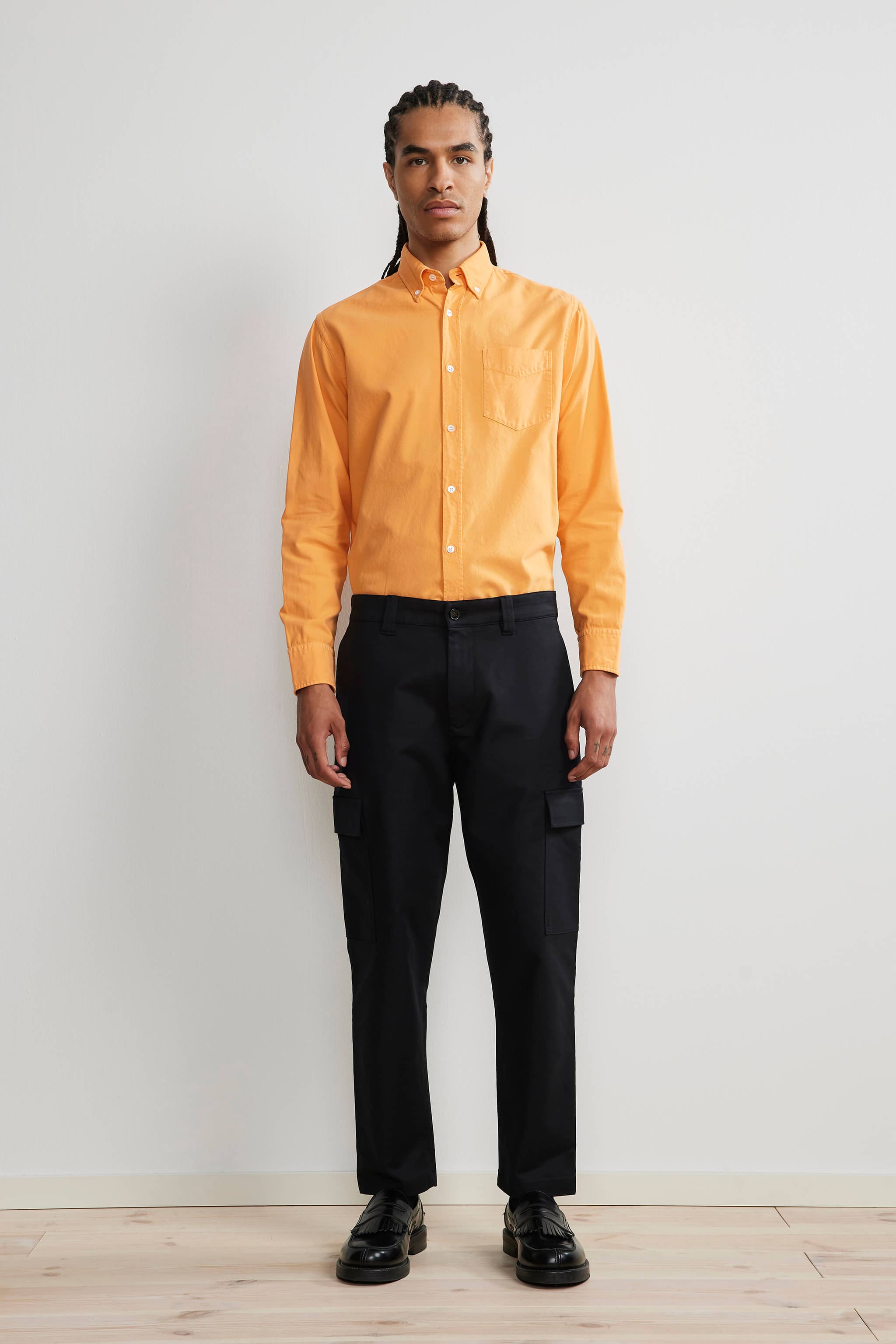 Loose, relaxed pants complete with traditional cargo pockets and twin back pockets with flap closure. Made in a classic BCI-sourced cotton with a touch of stretch and cut slightly tapered with a cropped leg.