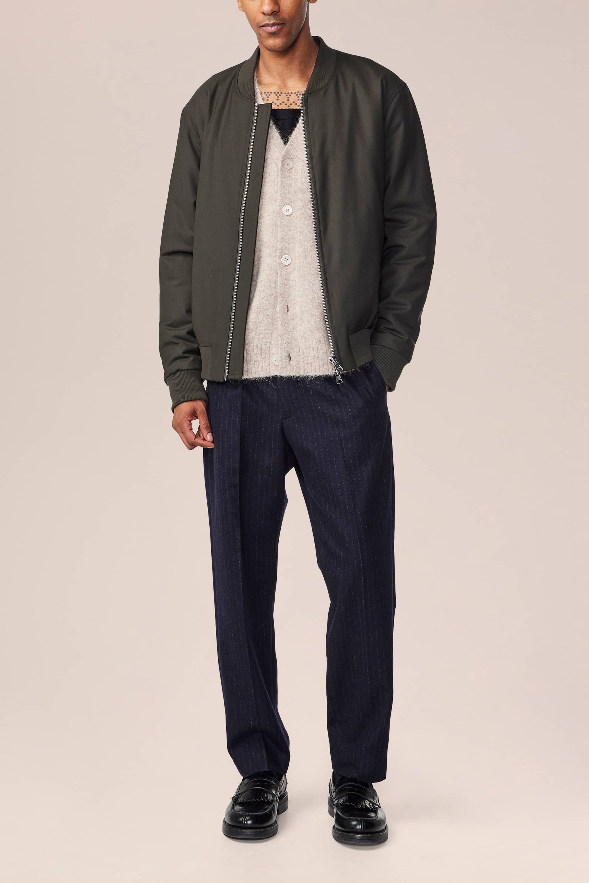 A refined jacket crafted from premium fabric sourced from the renowned mill, British Millerain.