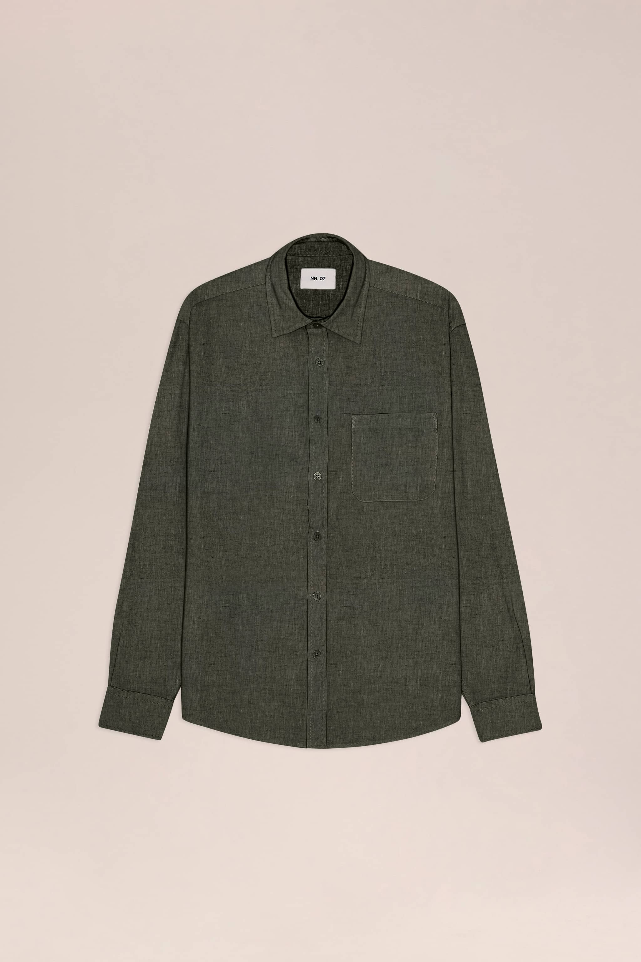 Long-sleeve shirt crafted from premium European linen with a soft, drapey handfeel and plain weave finish. Features collar bones and dye-to-match NN.07 buttons for casual everyday wear.