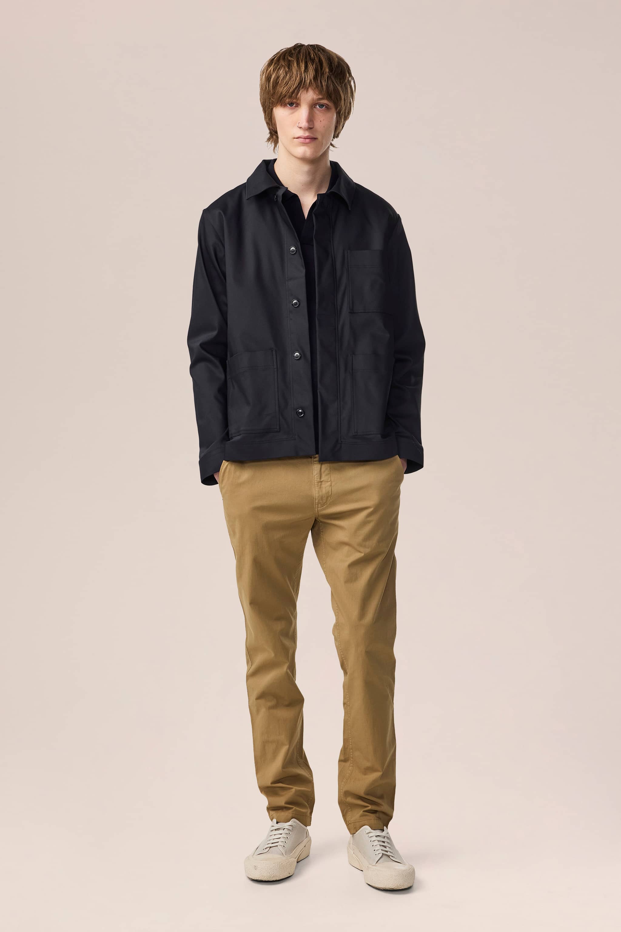 Water-resistant jacket crafted from organic cotton-blend twill.