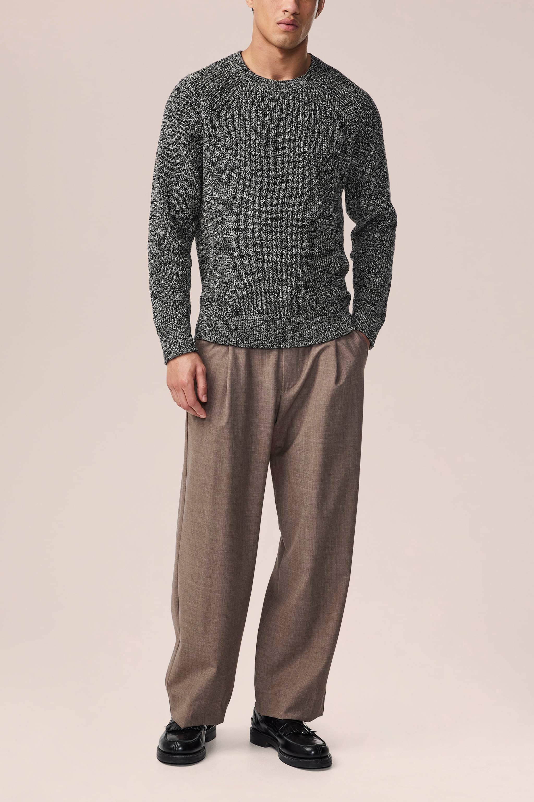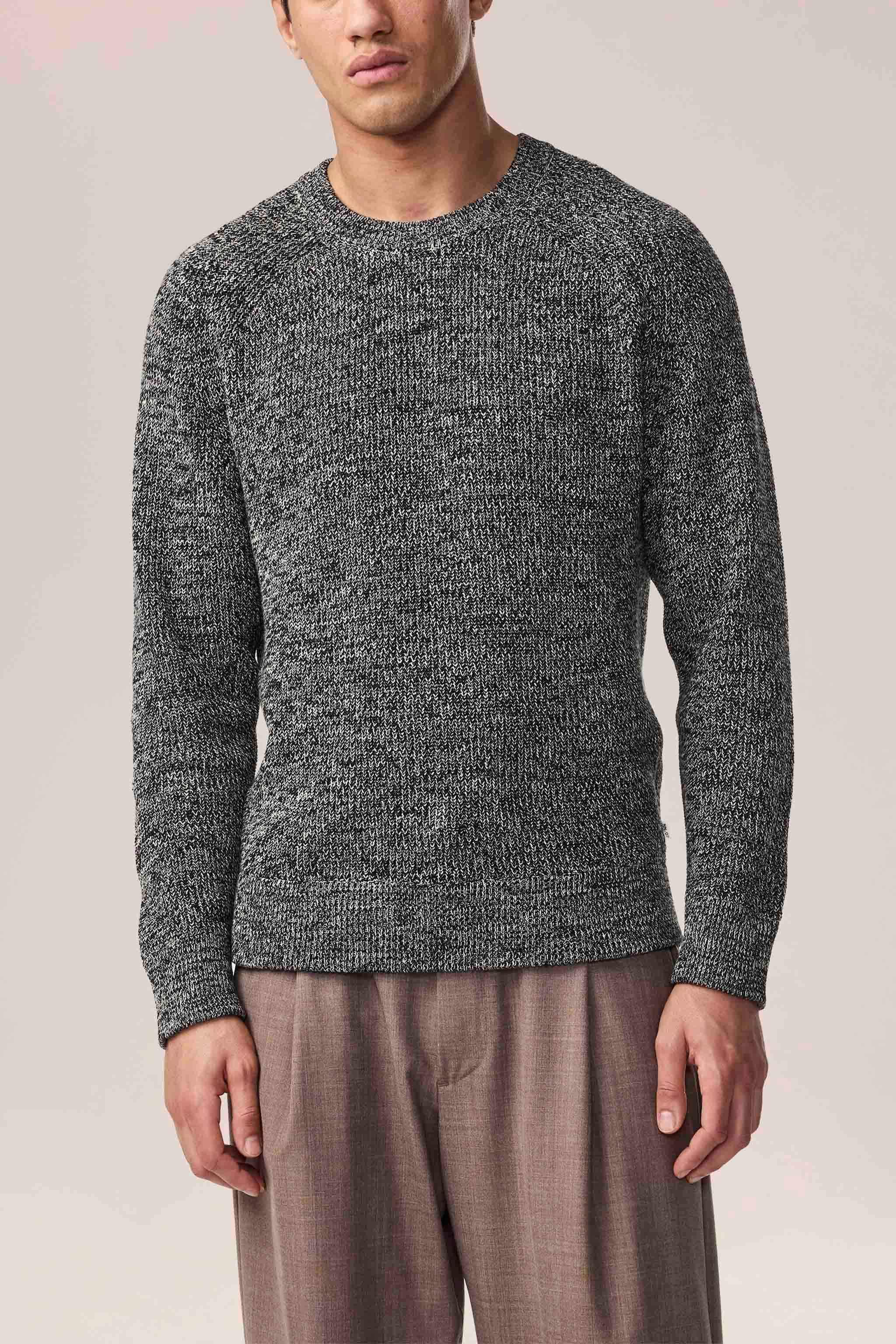 Crewneck crafted in a soft cotton, knit in a half-cardigan stitch.
