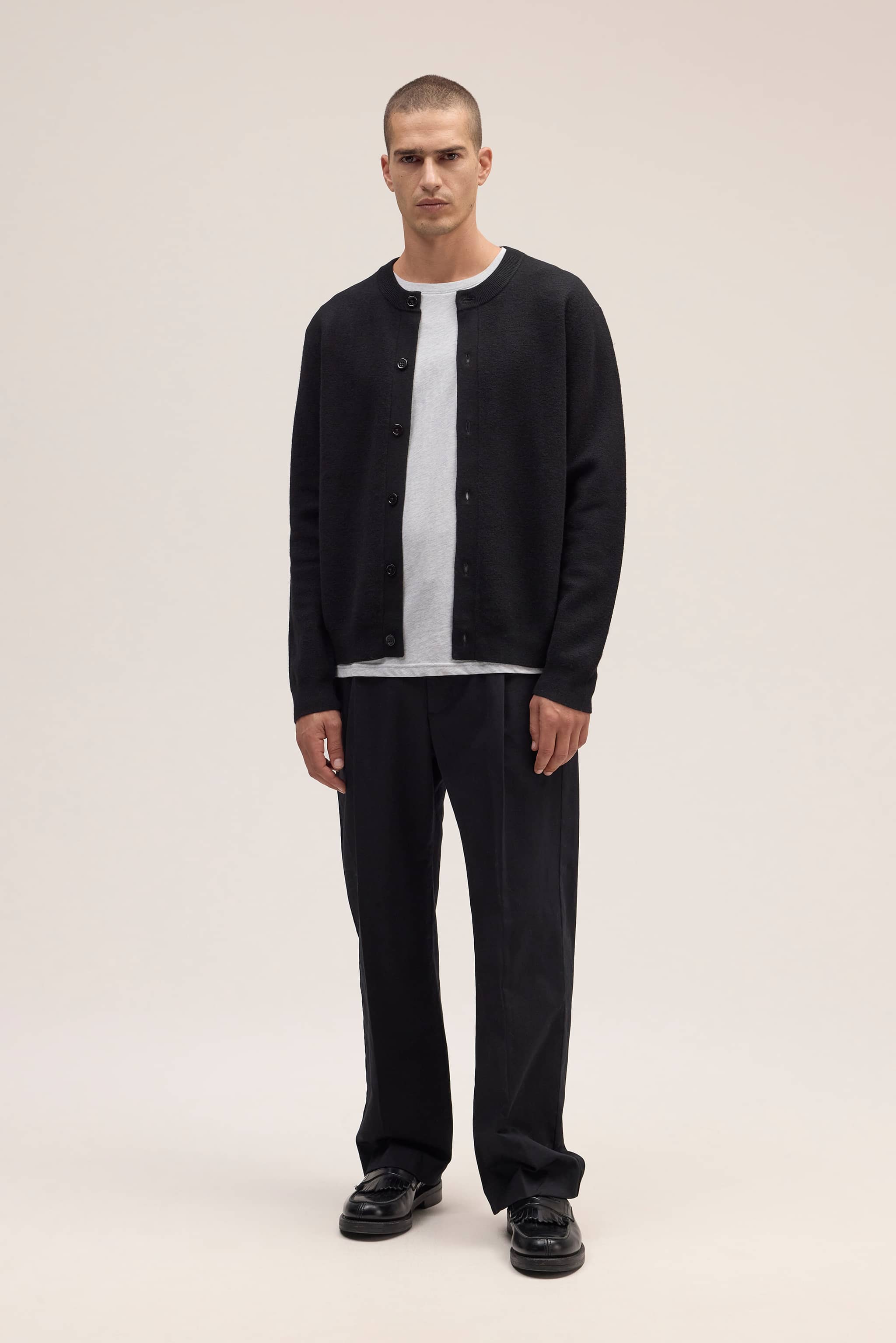 Exclusively available online through Mr. Porter and NN.07. Regular fit crew neck cardigan. Knit in a very soft 100% merino, which is slightly boiled. Features river shell buttons for a refined look.