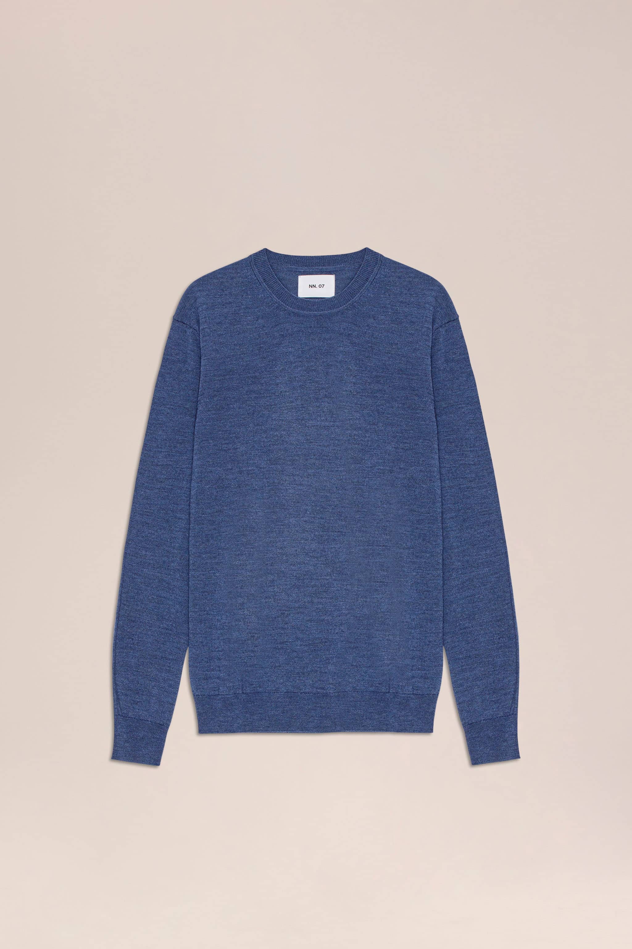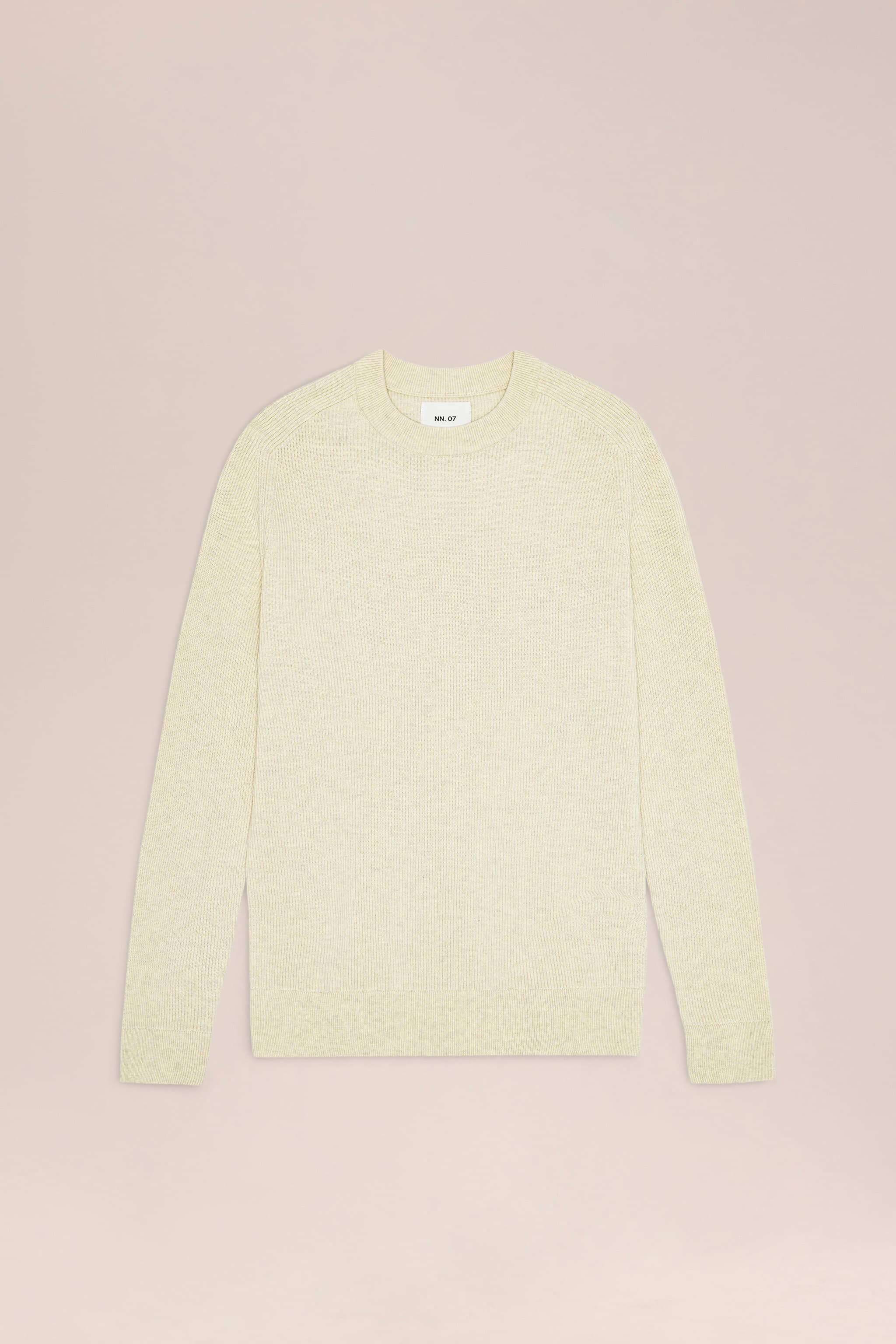 Crew neck sweater knit in a rib stitch, crafted in a cotton blend.