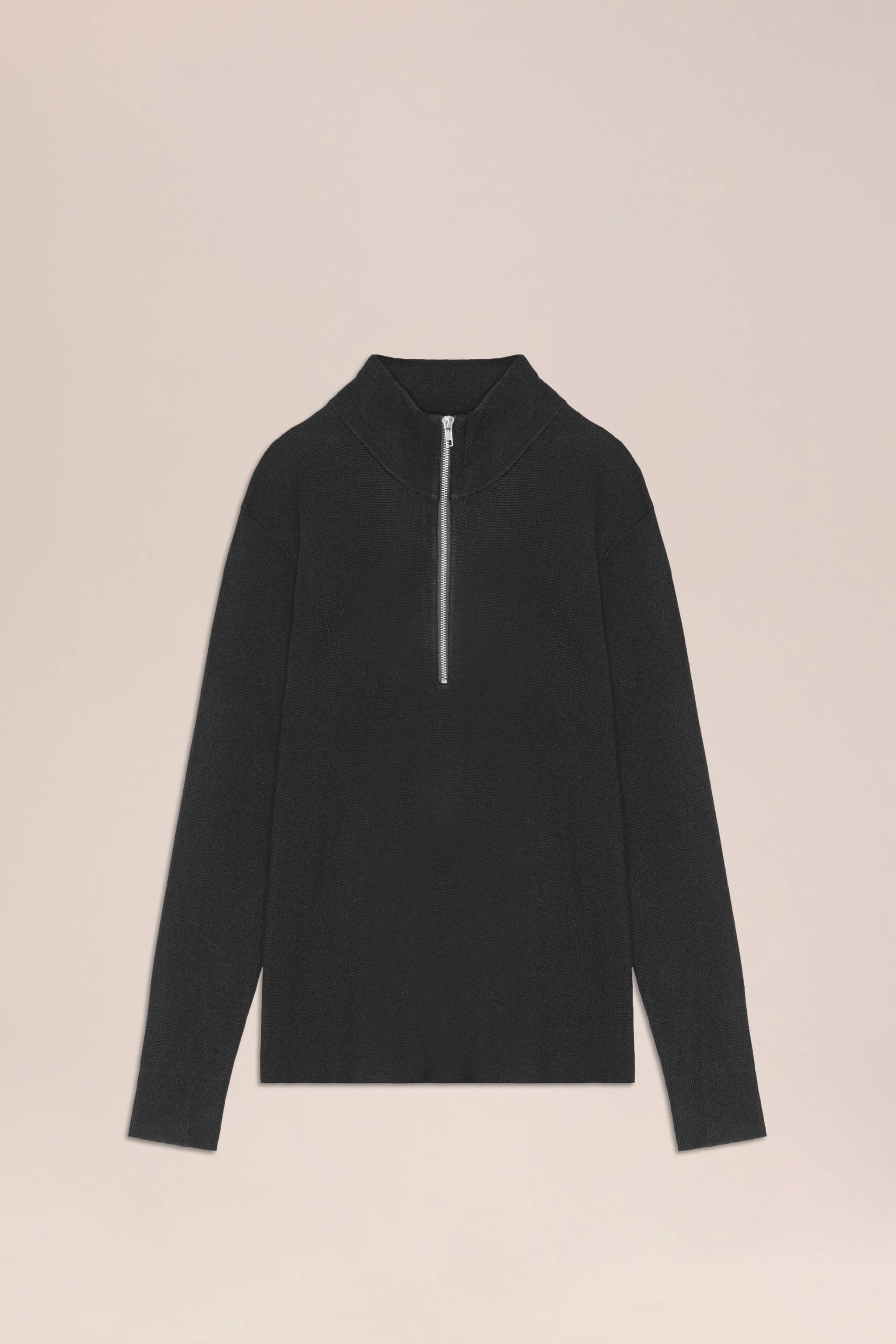Half zip knit made from a half cardigan stitch cotton mouline yarn.