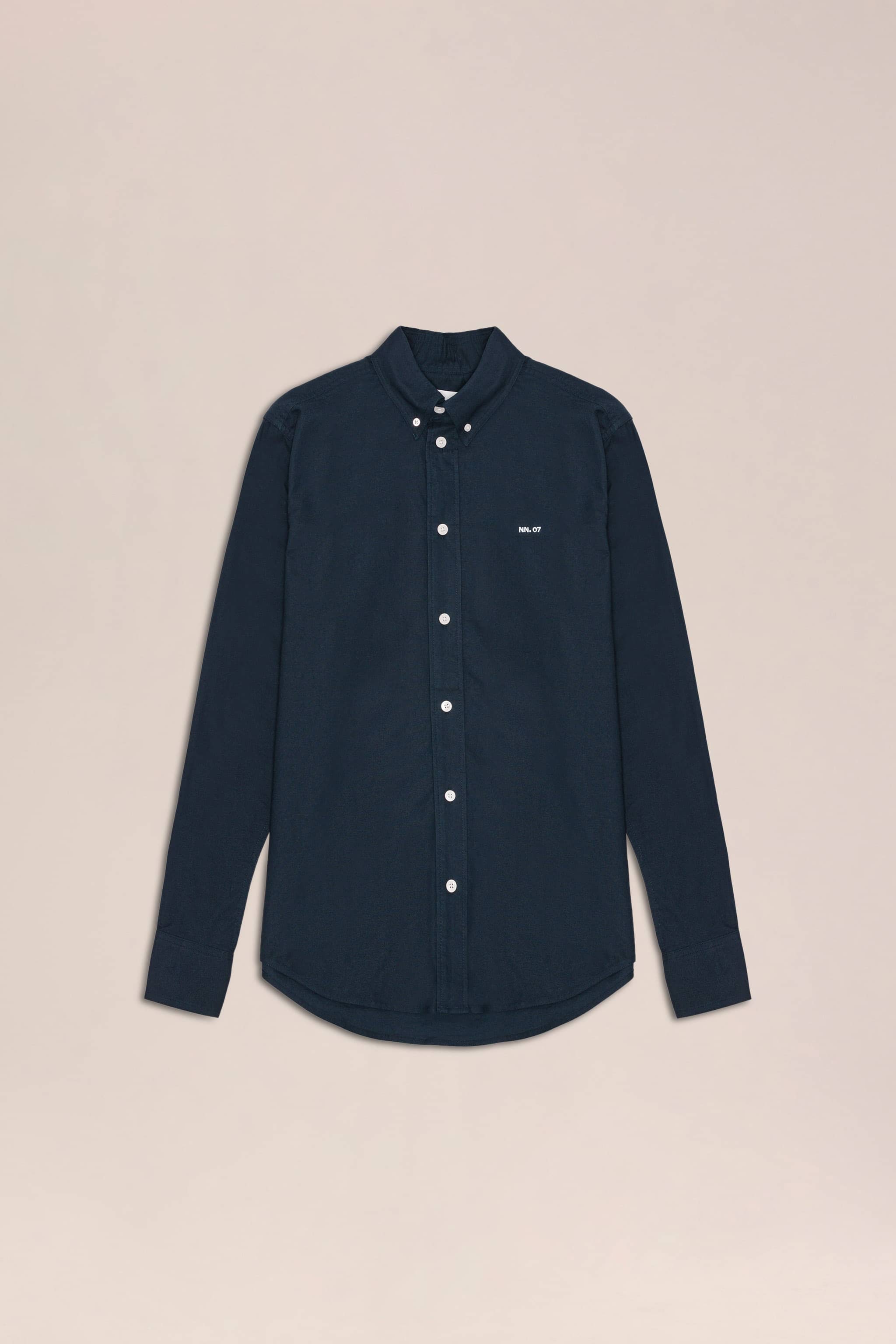 Button-down shirt crafted from a classic soft cotton oxford complete with imitated Mother-of-Pearl buttons with a NN.07 logo.