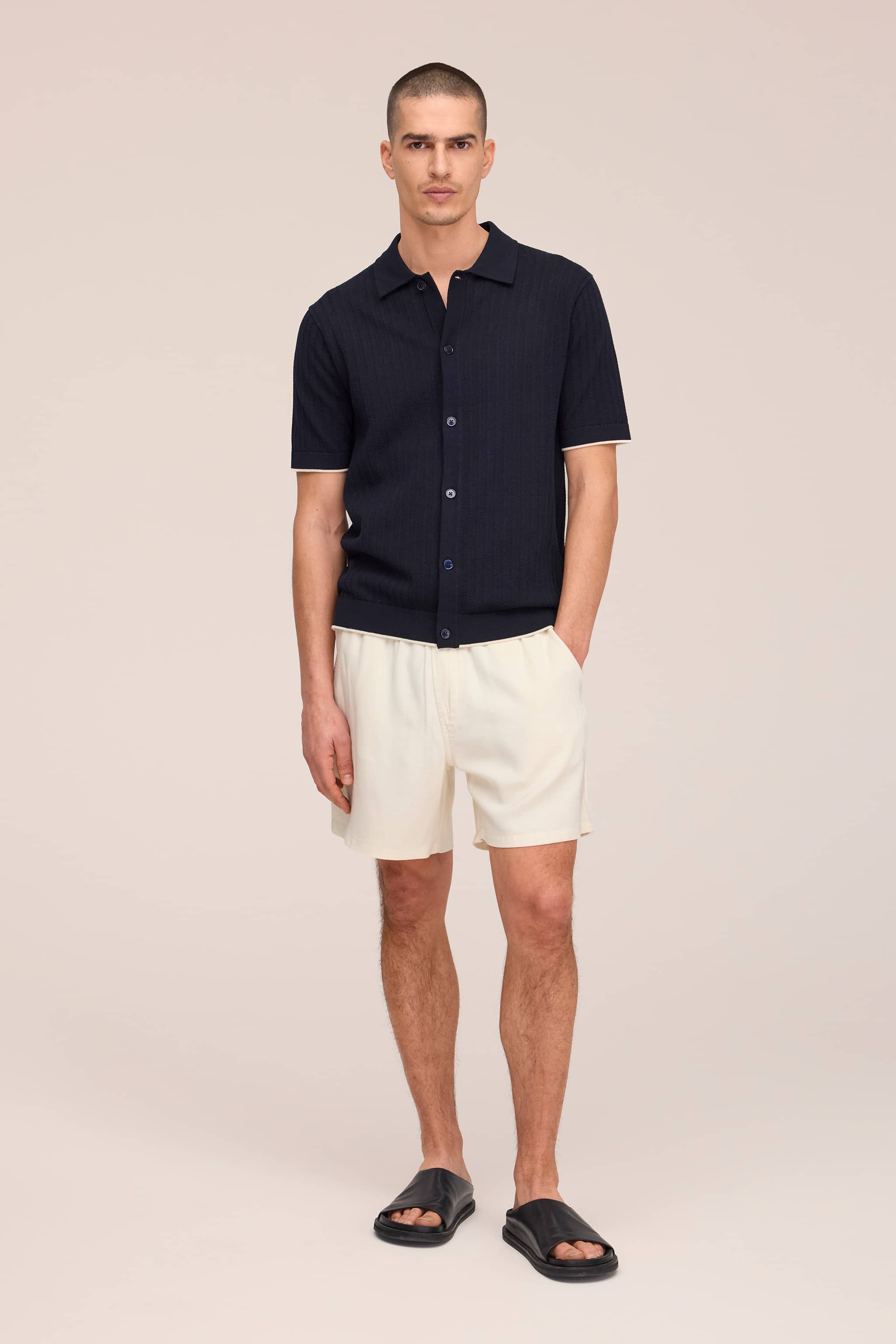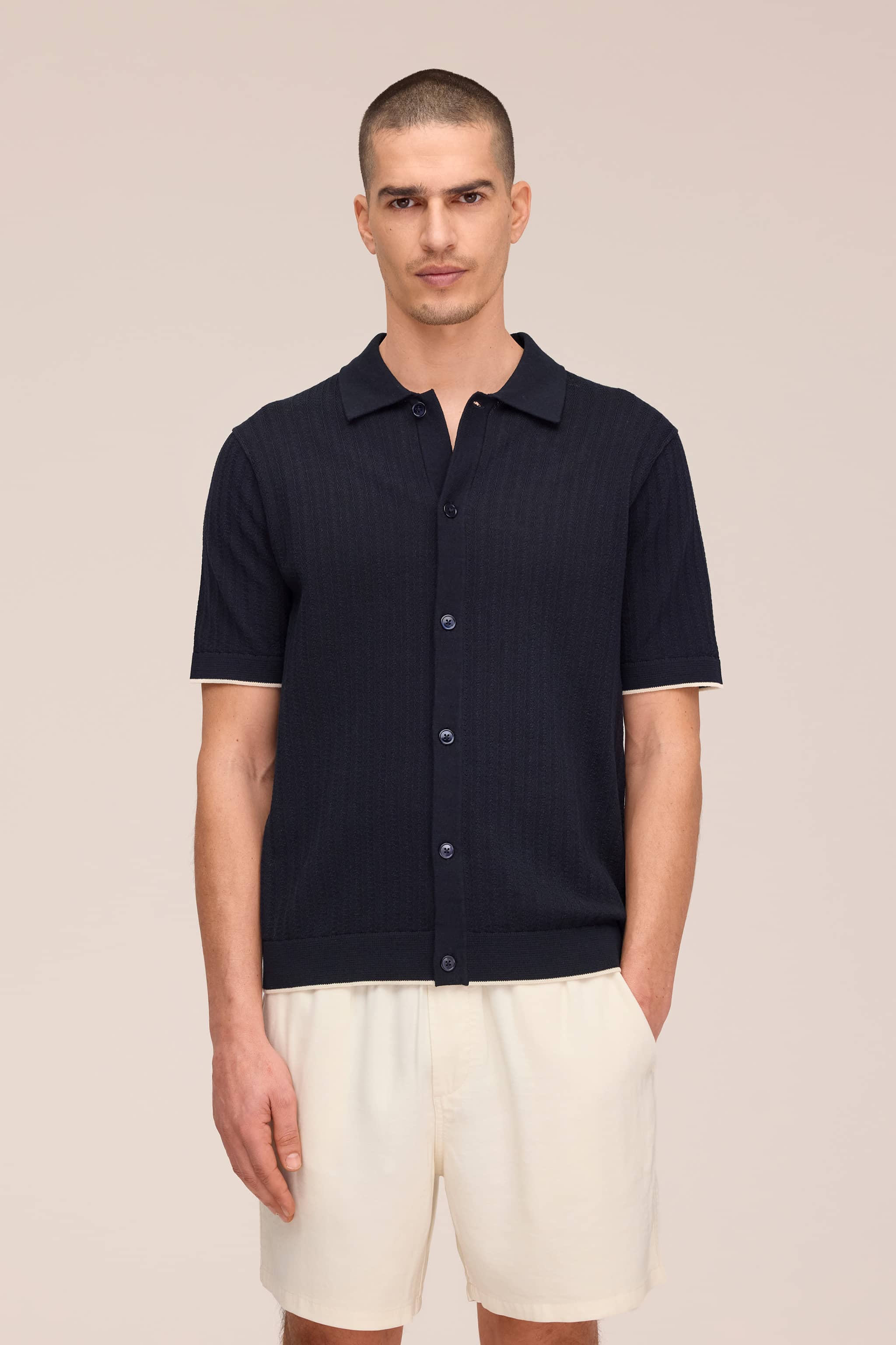 Polo cardigan crafted from organic cotton with textured stitch detail.