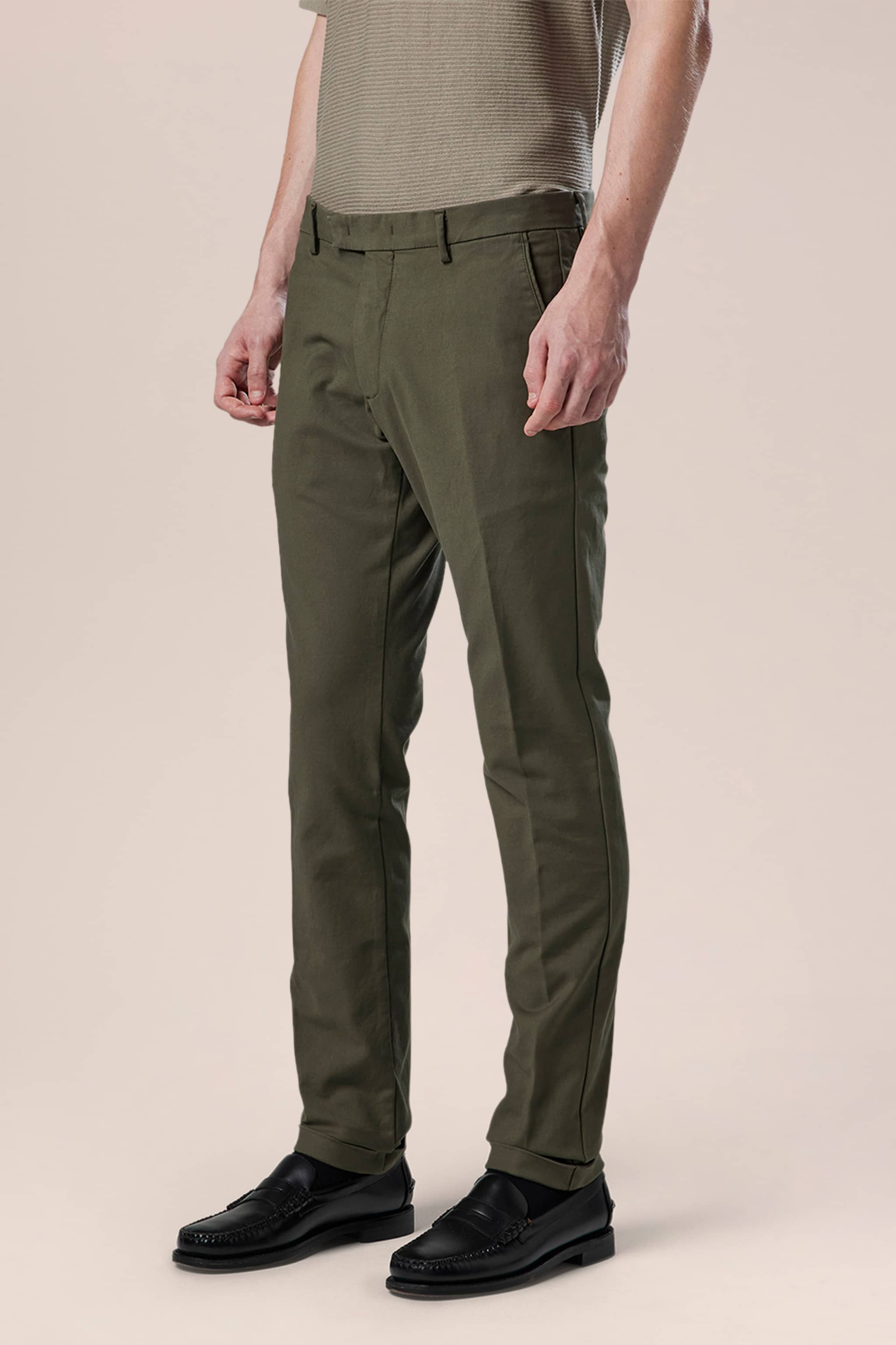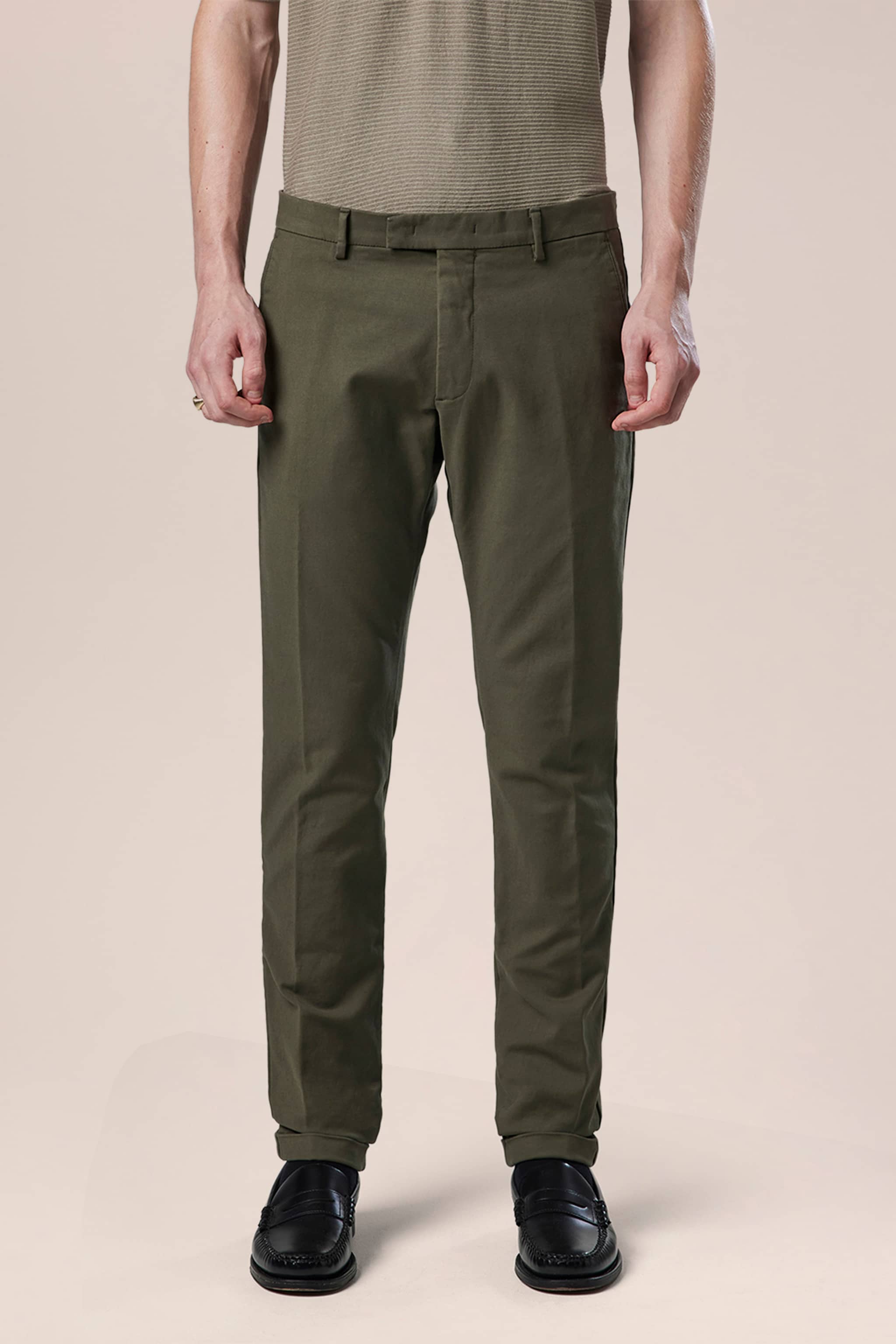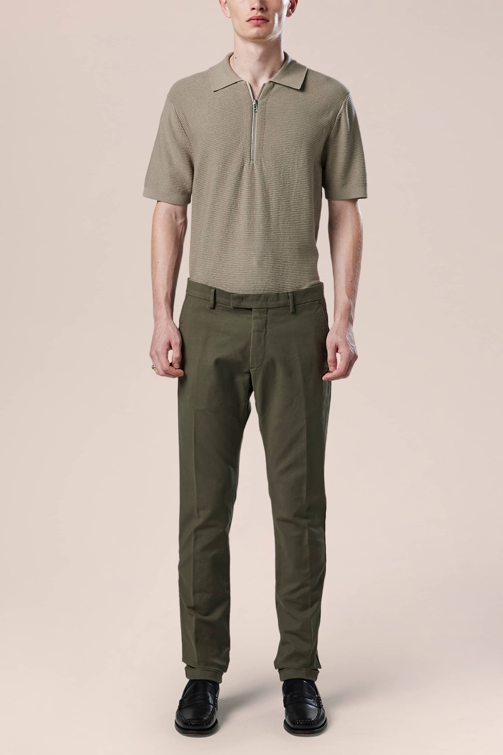 A sartorial trouser made in a soft BCI sourced cotton blend from Italian mill Tessuti Pordenone. Designed with an Italian Cobrax hook, contra button and zip-fly fastening for a sophisticated finish. Details include back button pockets and one-inch rolled cuffs. Better Cotton Initiative is a non-profit that promotes a healthier standard for growing cotton globally.