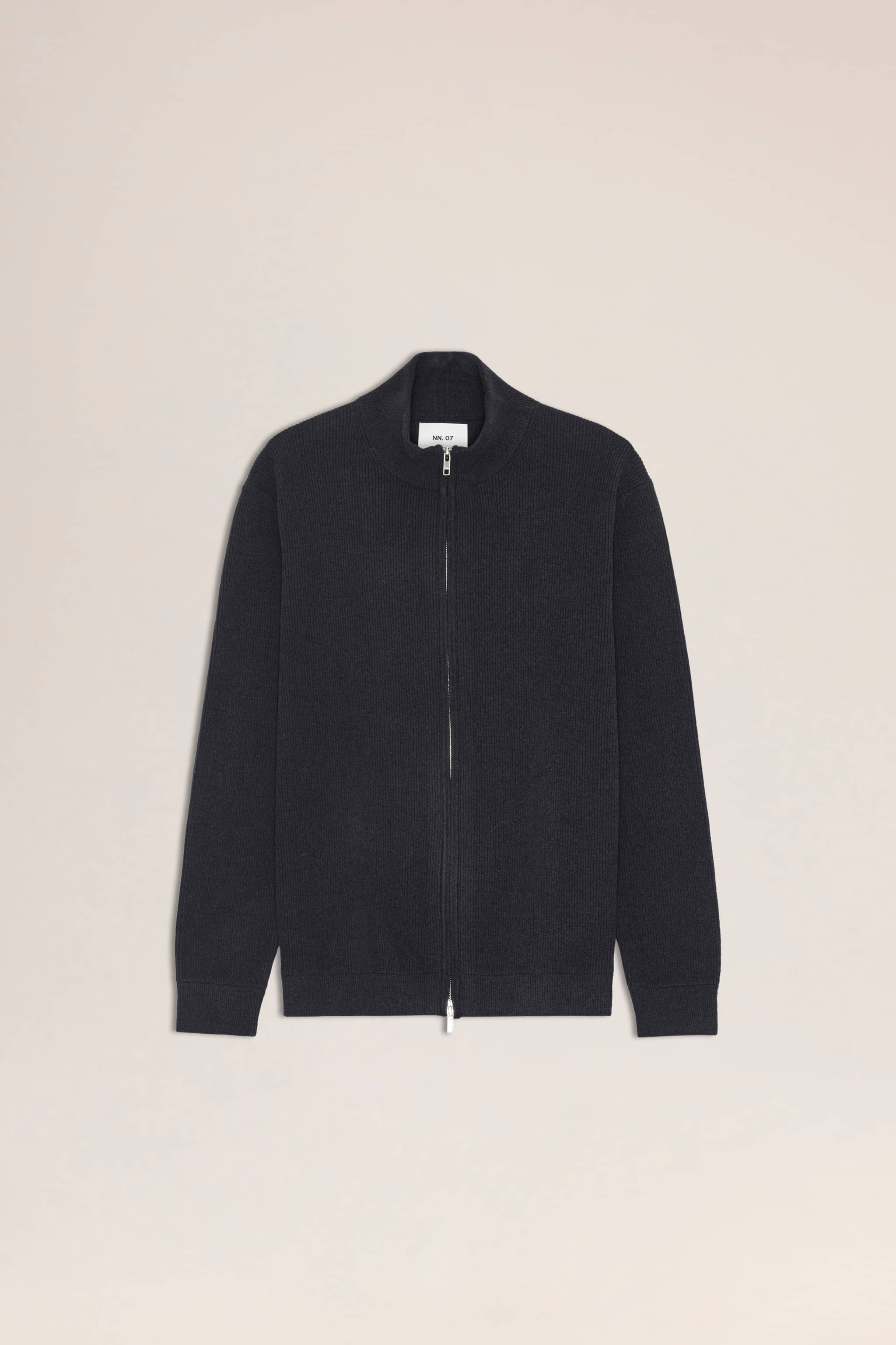 Classic ultra-soft full-zip knit made from a polyester rib knit stitch.