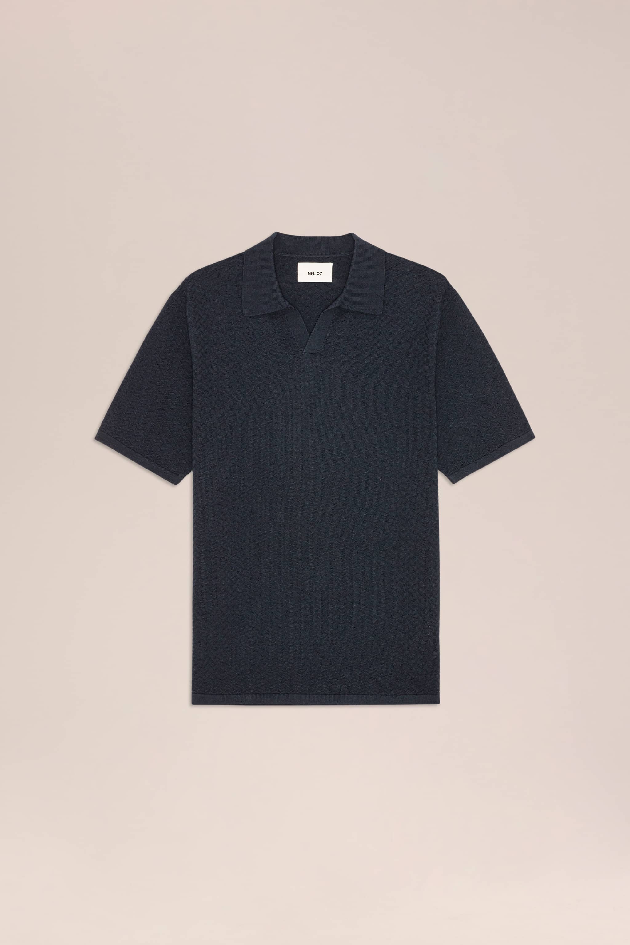 Short sleeve polo crafted from organic cotton with a crisp, delicate texture.