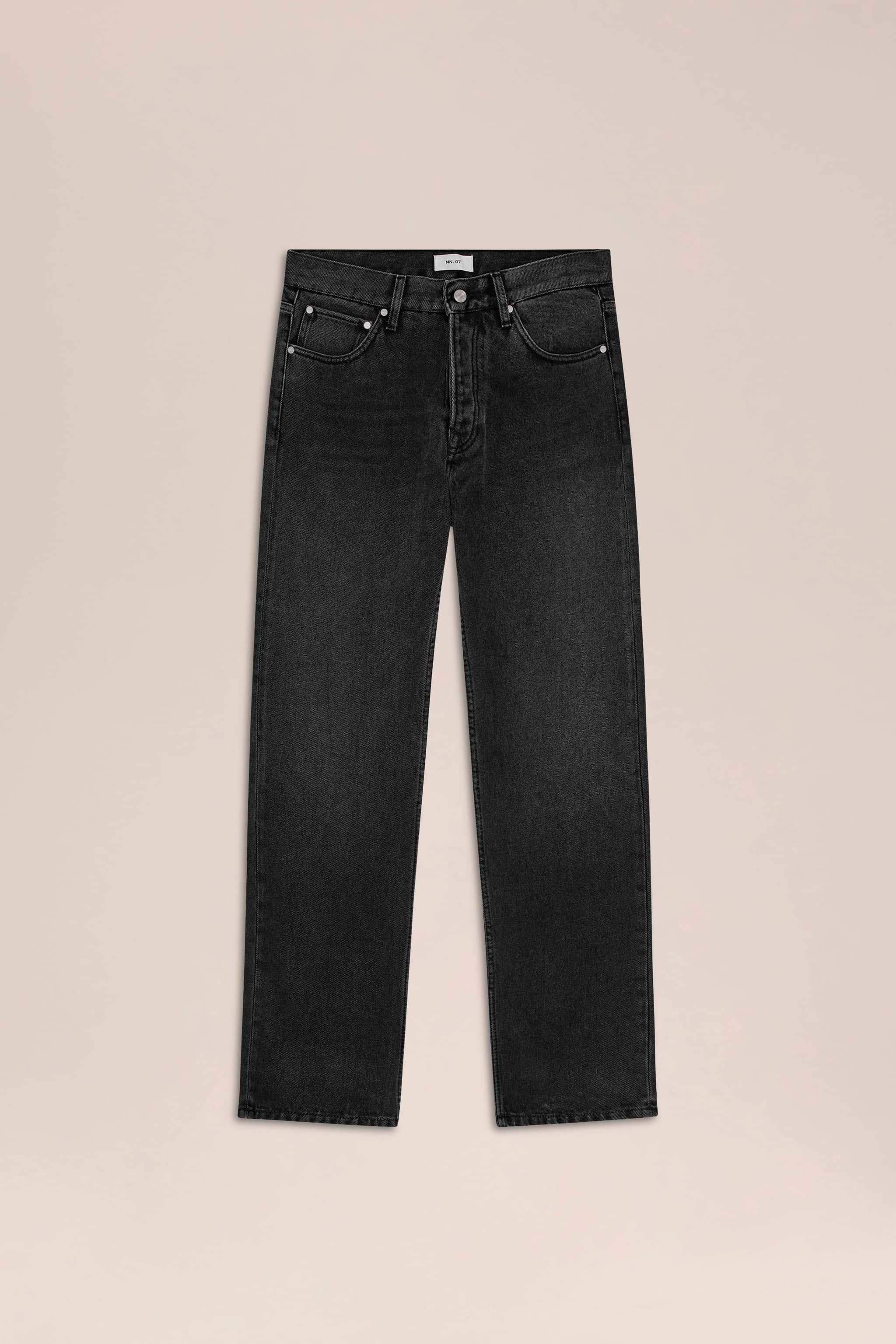 Regular, straight leg jeans crafted from black sulfur-dyed 13.50 oz midweight, cotton denim.