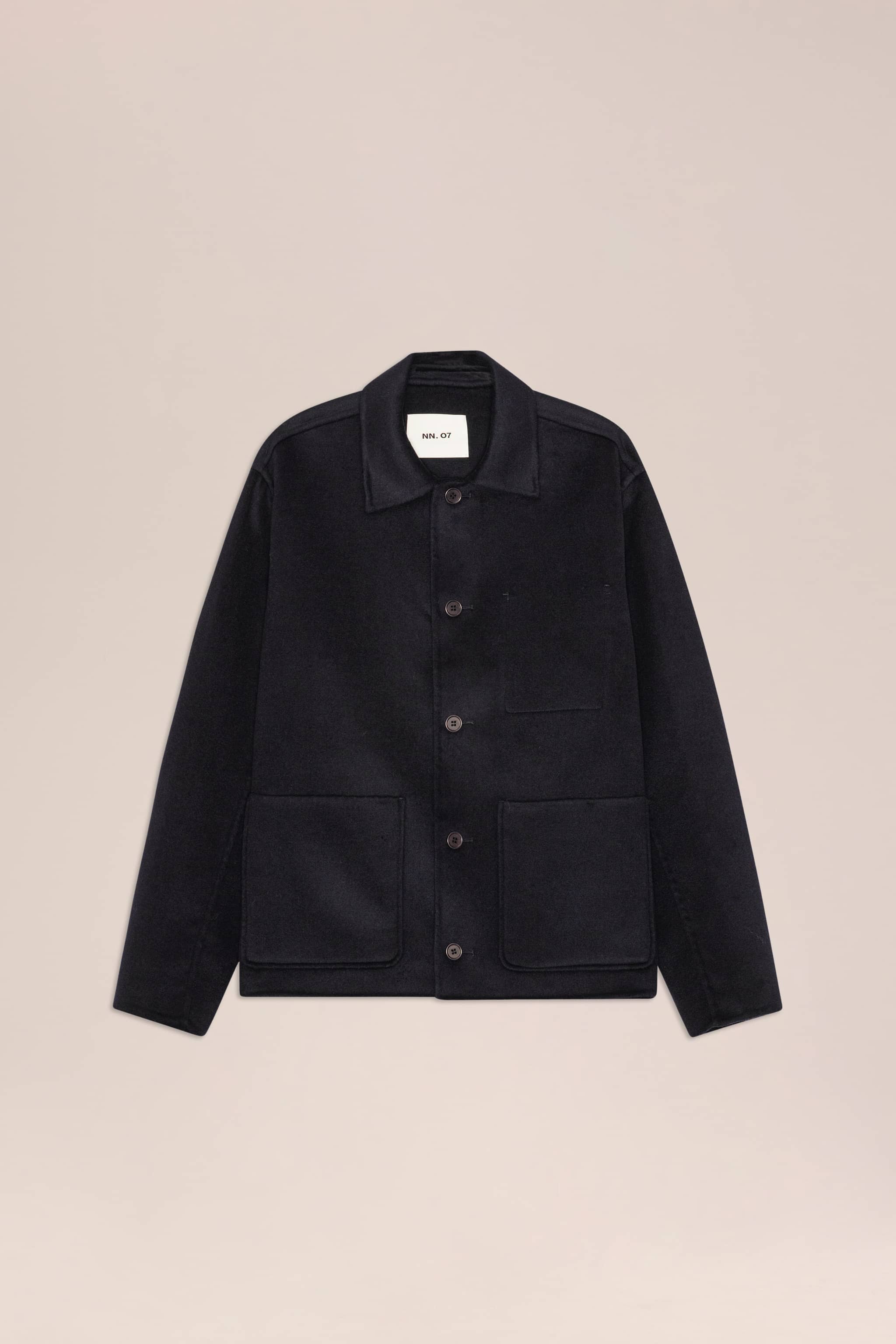Heavy double-faced jacket made from a wool blend with a soft, brushed surface.