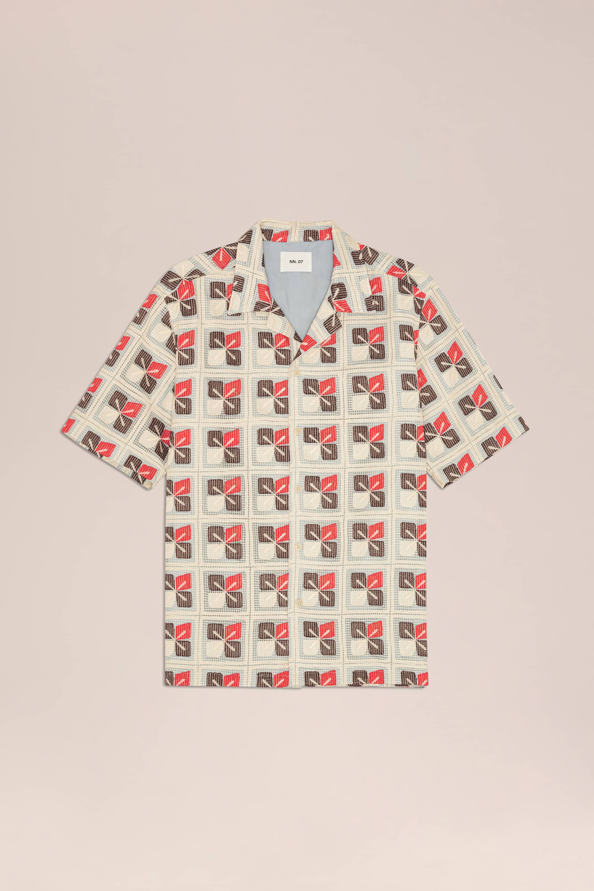 Short sleeve camp collar shirt with a structured, textured finish.