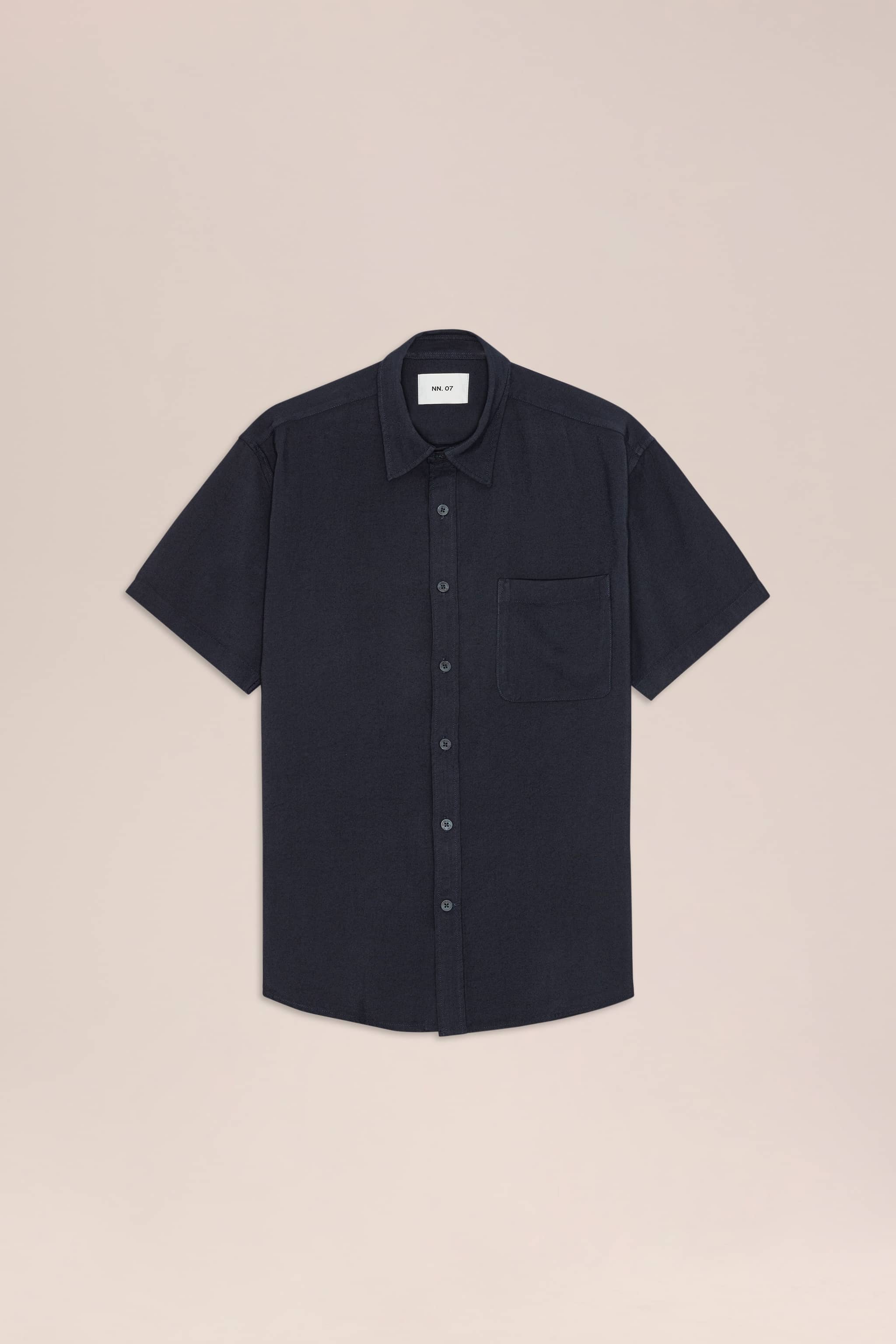 Short sleeve polo crafted from organic cotton with a crisp, delicate texture.