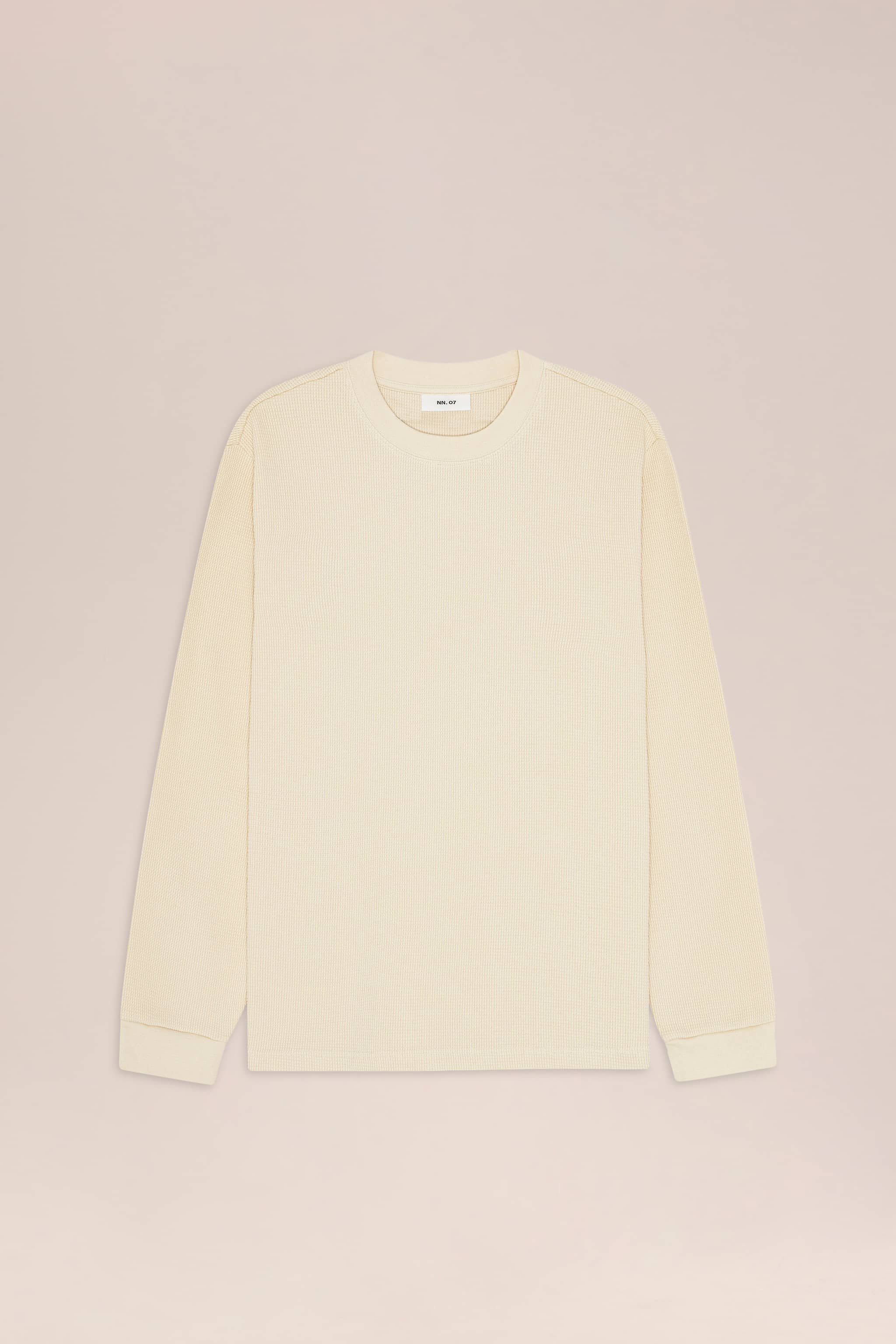 Long sleeve t-shirt made from organic cotton jersey in a medium-weight waffle knit.