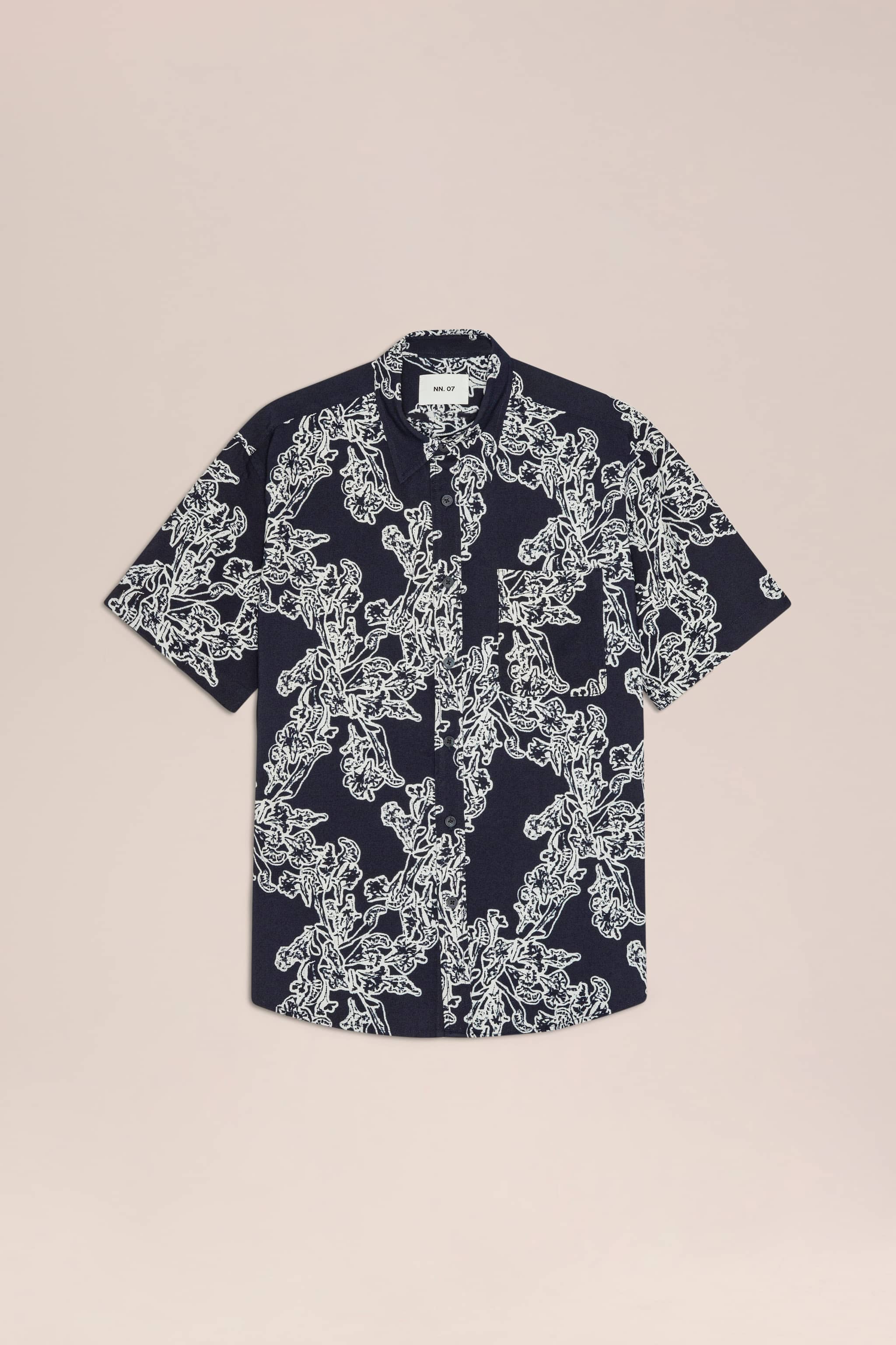 Short sleeve shirt crafted from a viscose twill with an exclusive all-over print.