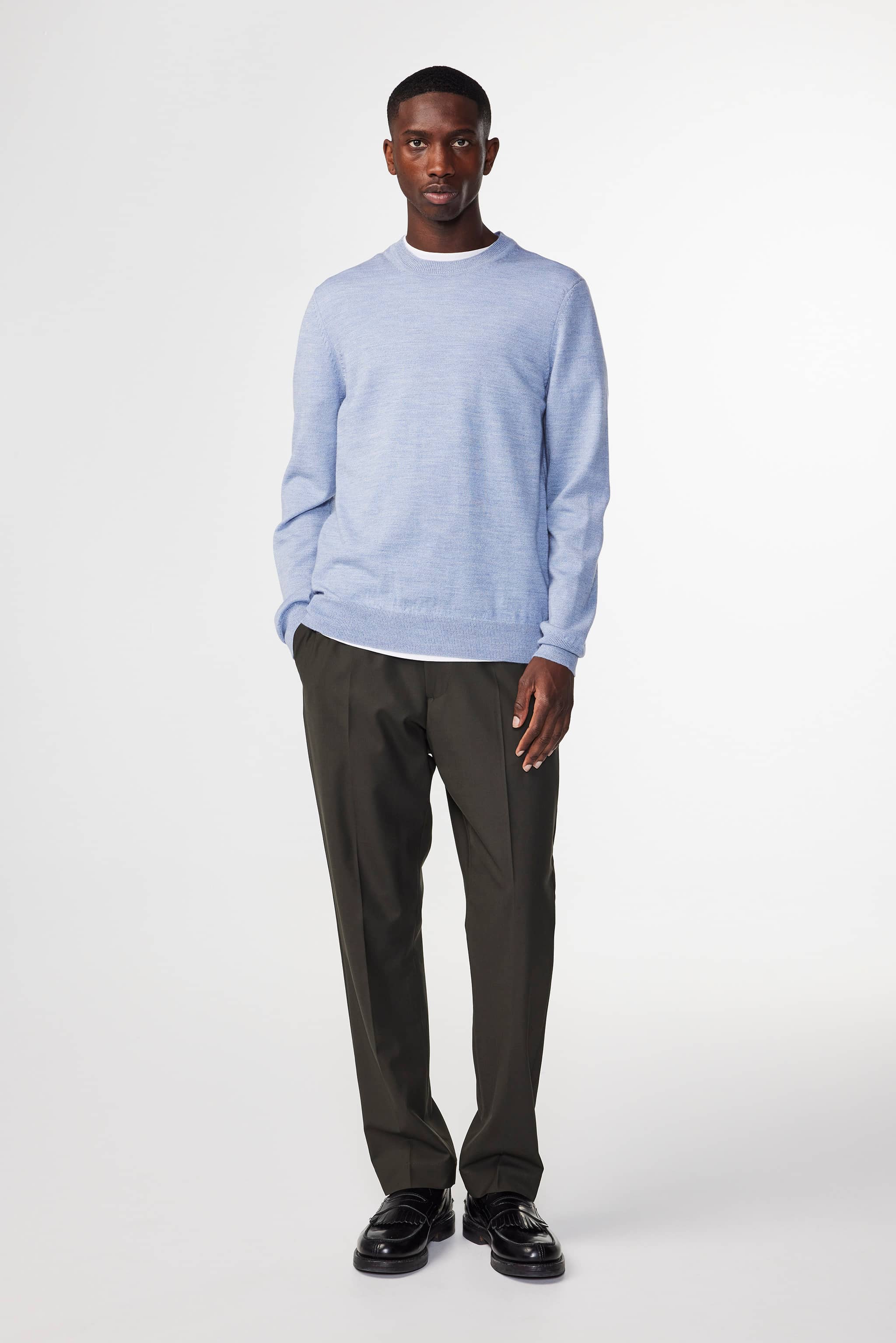 Crewneck pullover crafted in soft certified merino wool with a lightweight feel. Features a classic crew neckline and plain jersey knit that delivers comfort and versatility.