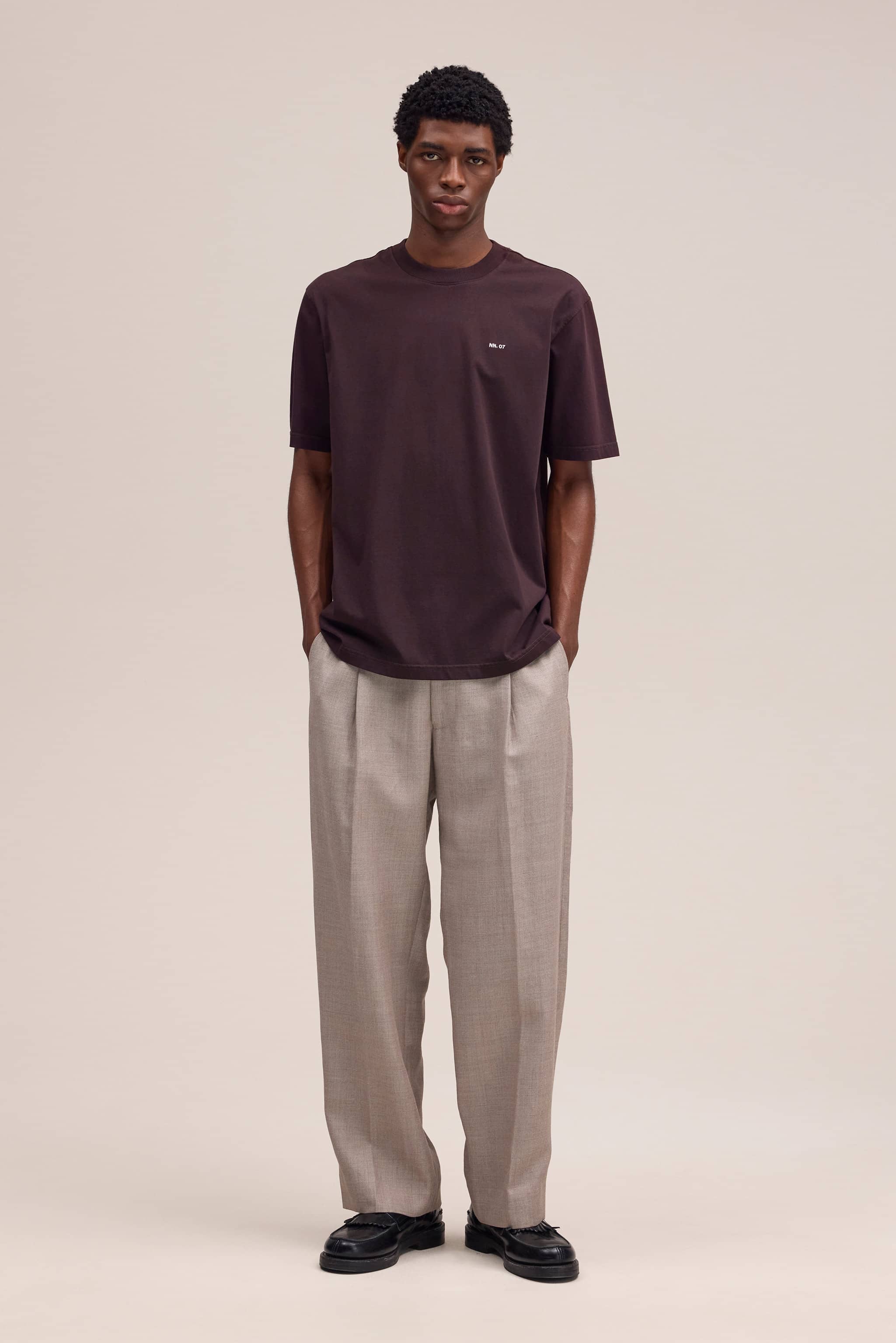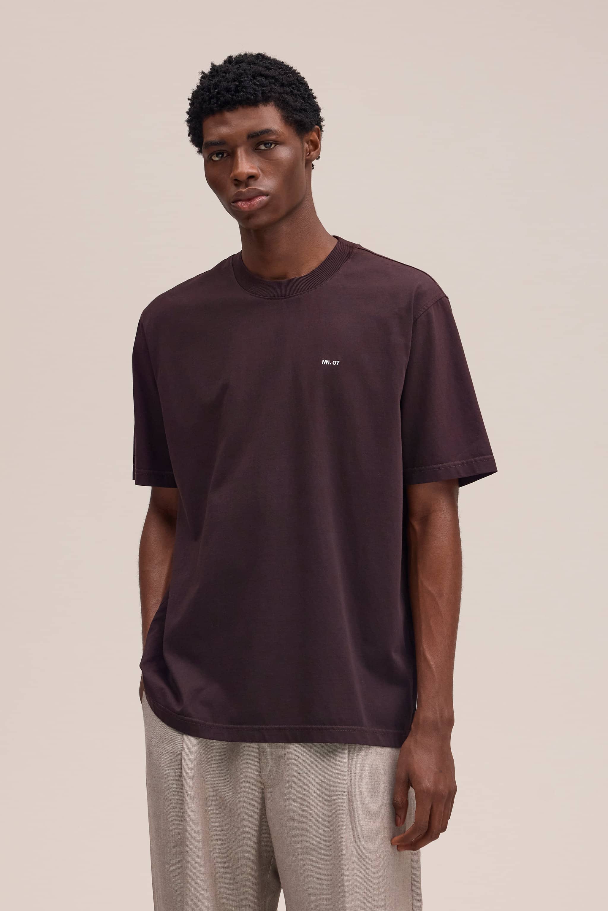 Casual tee made in a fine Pima cotton jersey with an NN.07 logo, twin needle stitching details and a neat rib along the neckline.