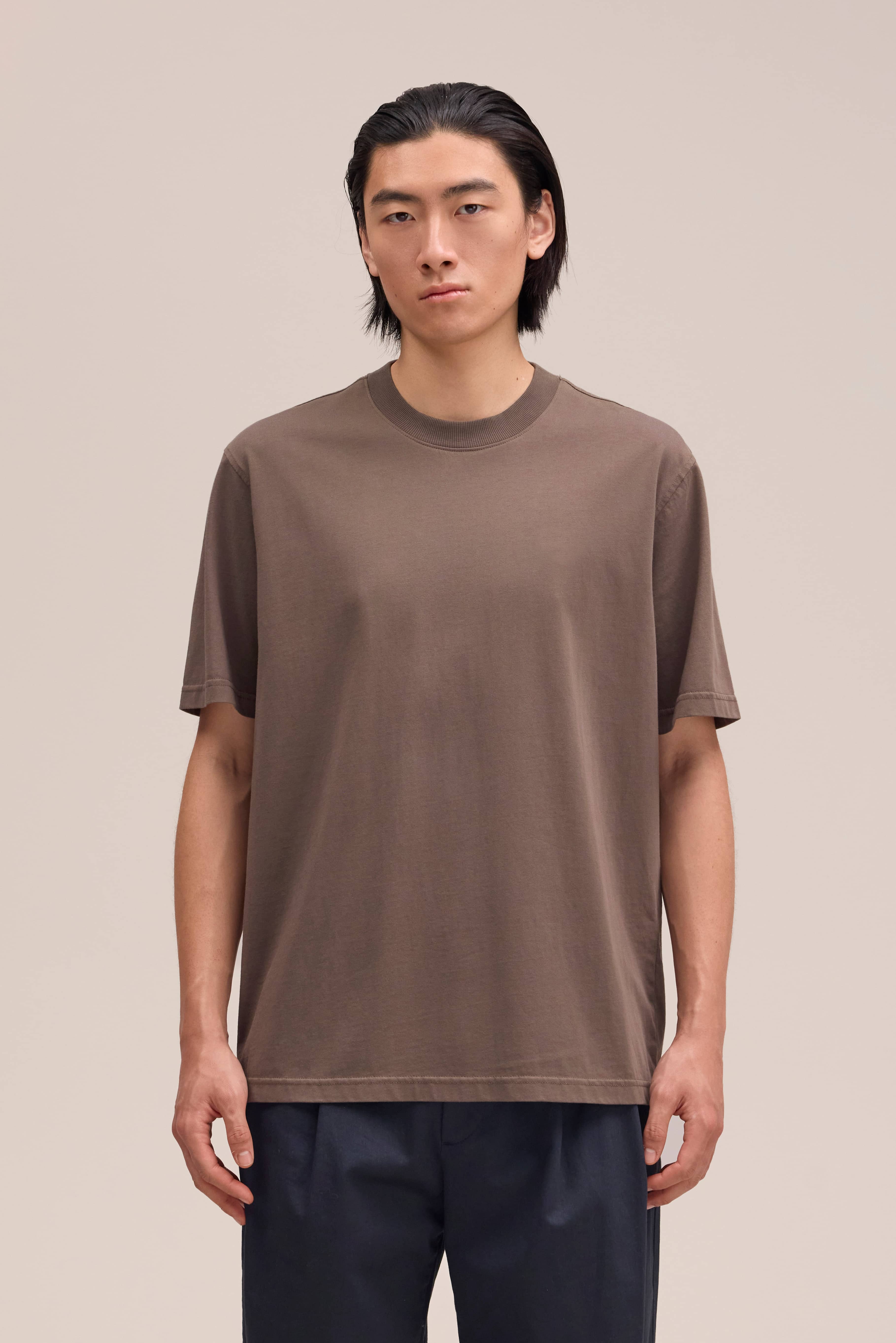 Casual t-shirt crafted from premium Pima cotton jersey with a soft, lightweight handfeel. Features 2x2 neck trim and topstitch details on the shoulder seams for added durability and refined finishing.