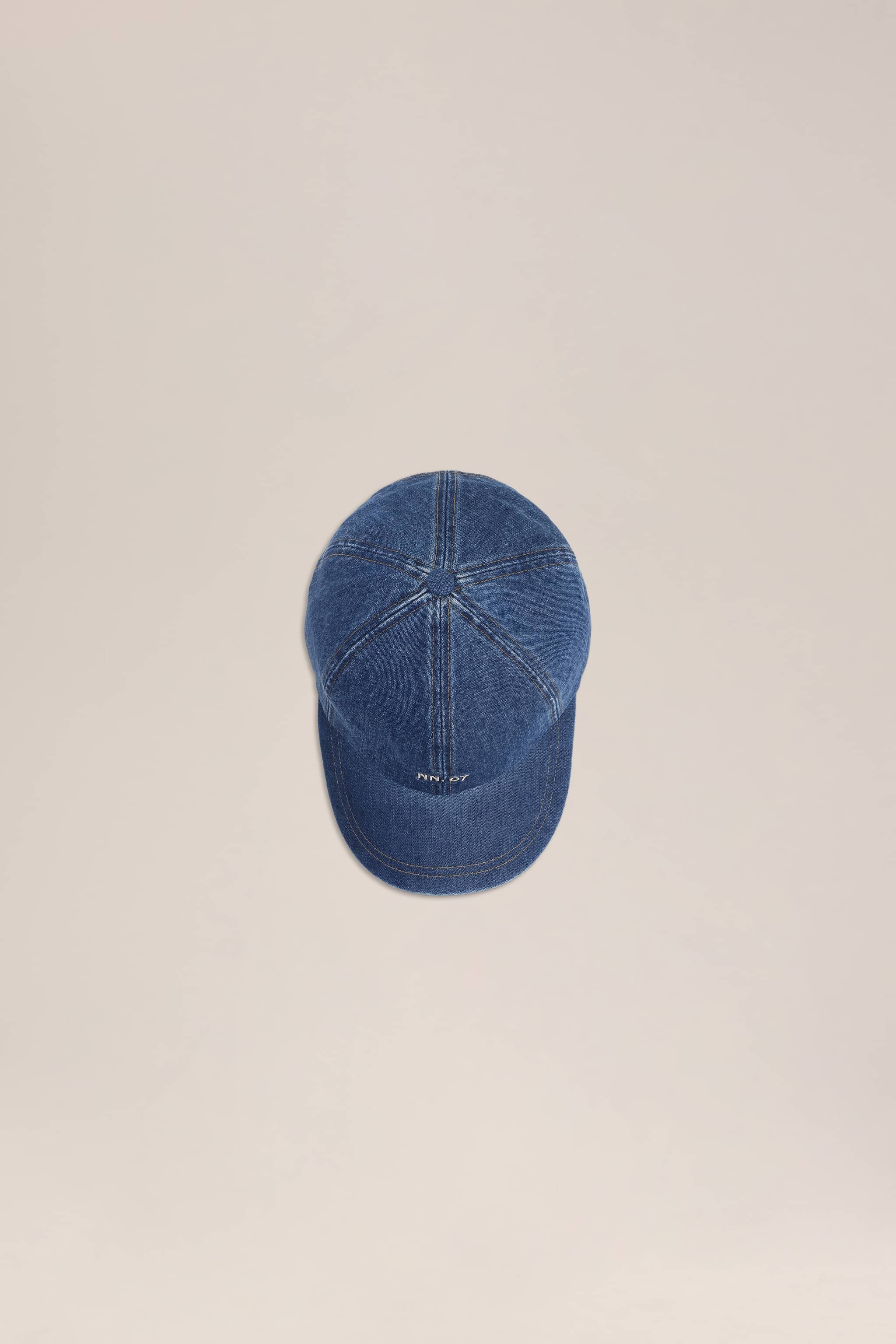 Baseball cap crafted from cotton canvas with a distinctive tonal denim finish and subtle tobacco topstitching for added texture and edge. Features an NN.07 logo at the front and finished with an adjustable metal back tab for a comfortable, personalized fit.