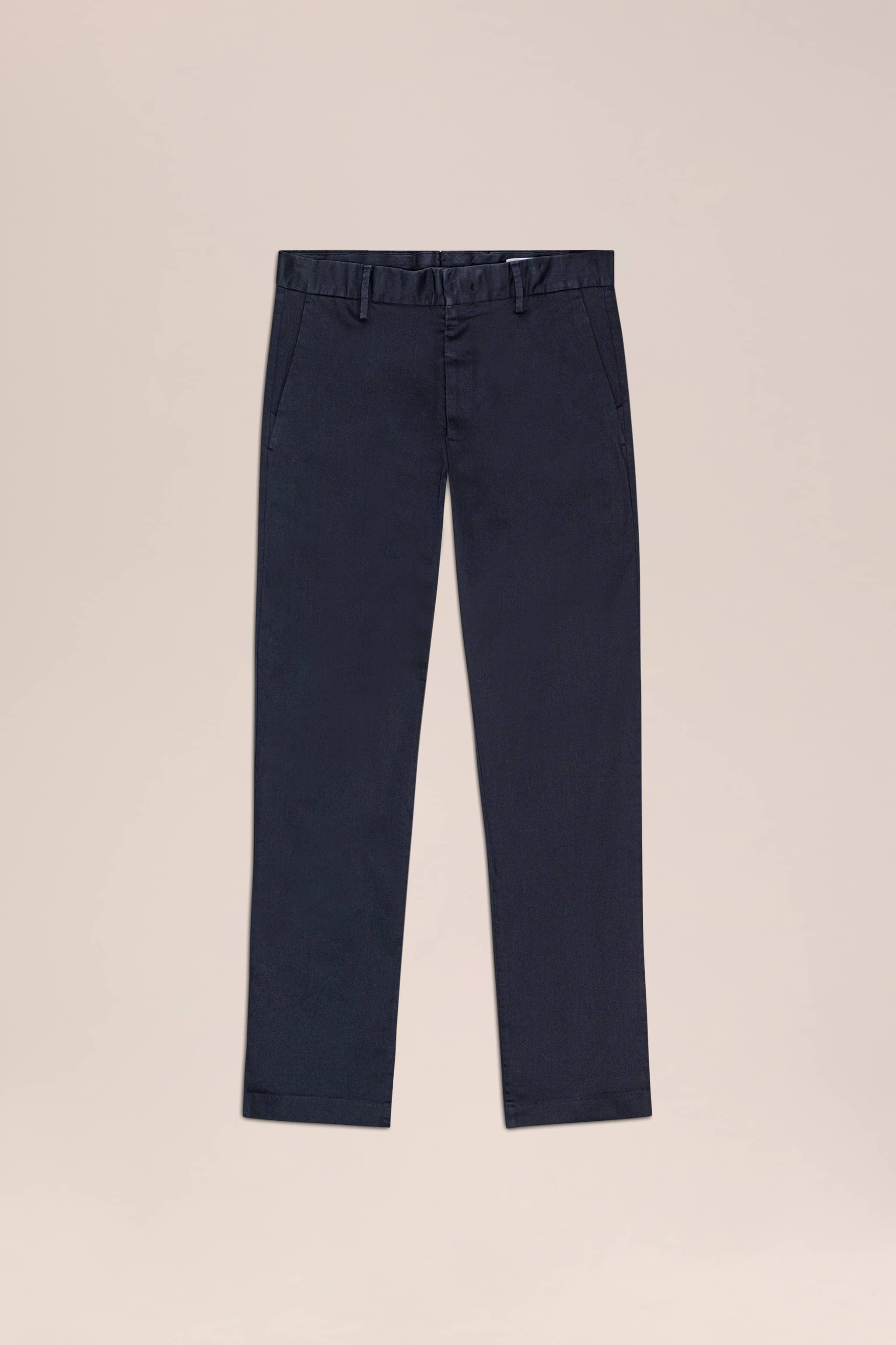 Slim tailored chino with tapered leg crafted in a 260 g/m2 soft organic cotton blend.