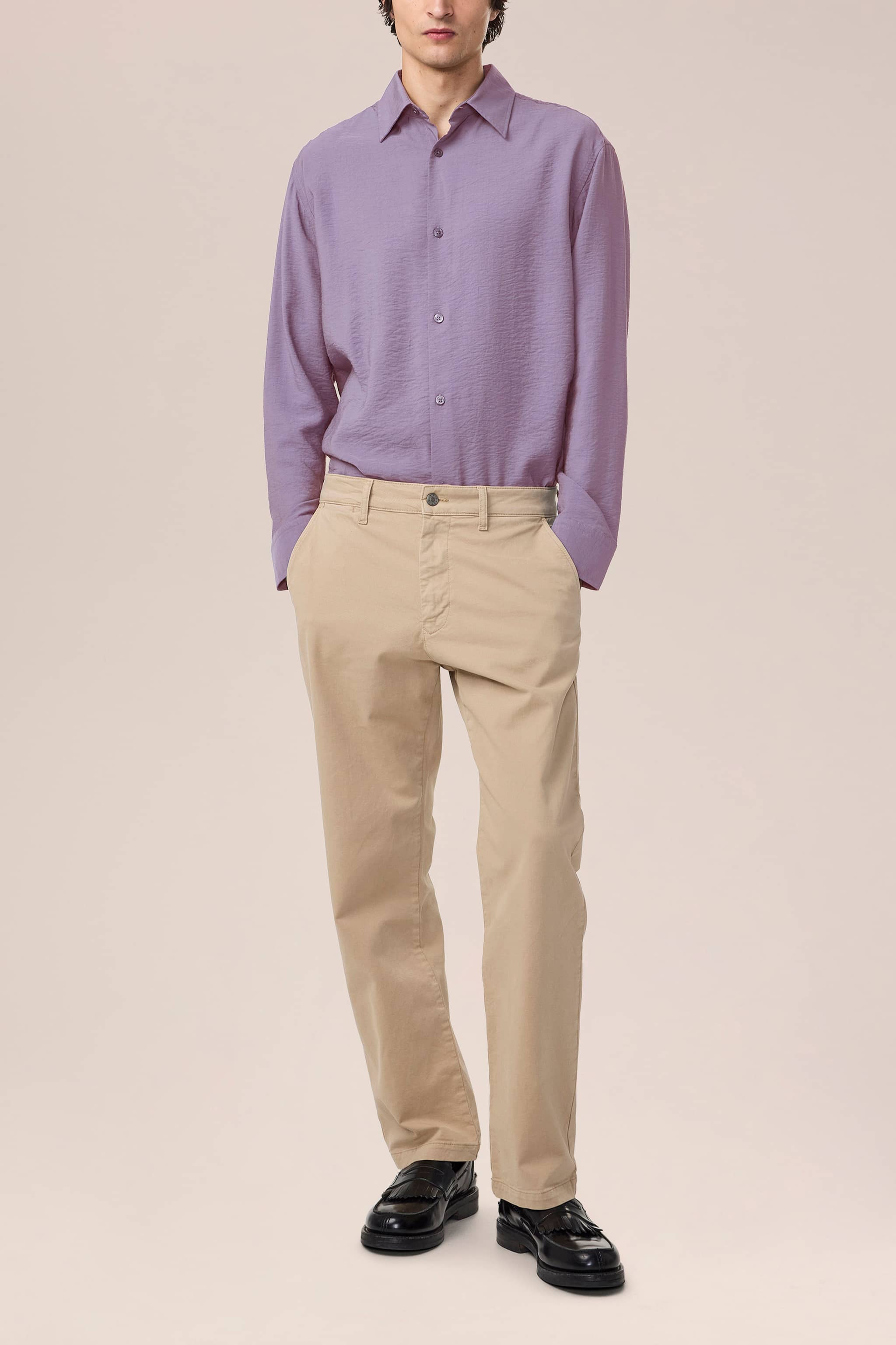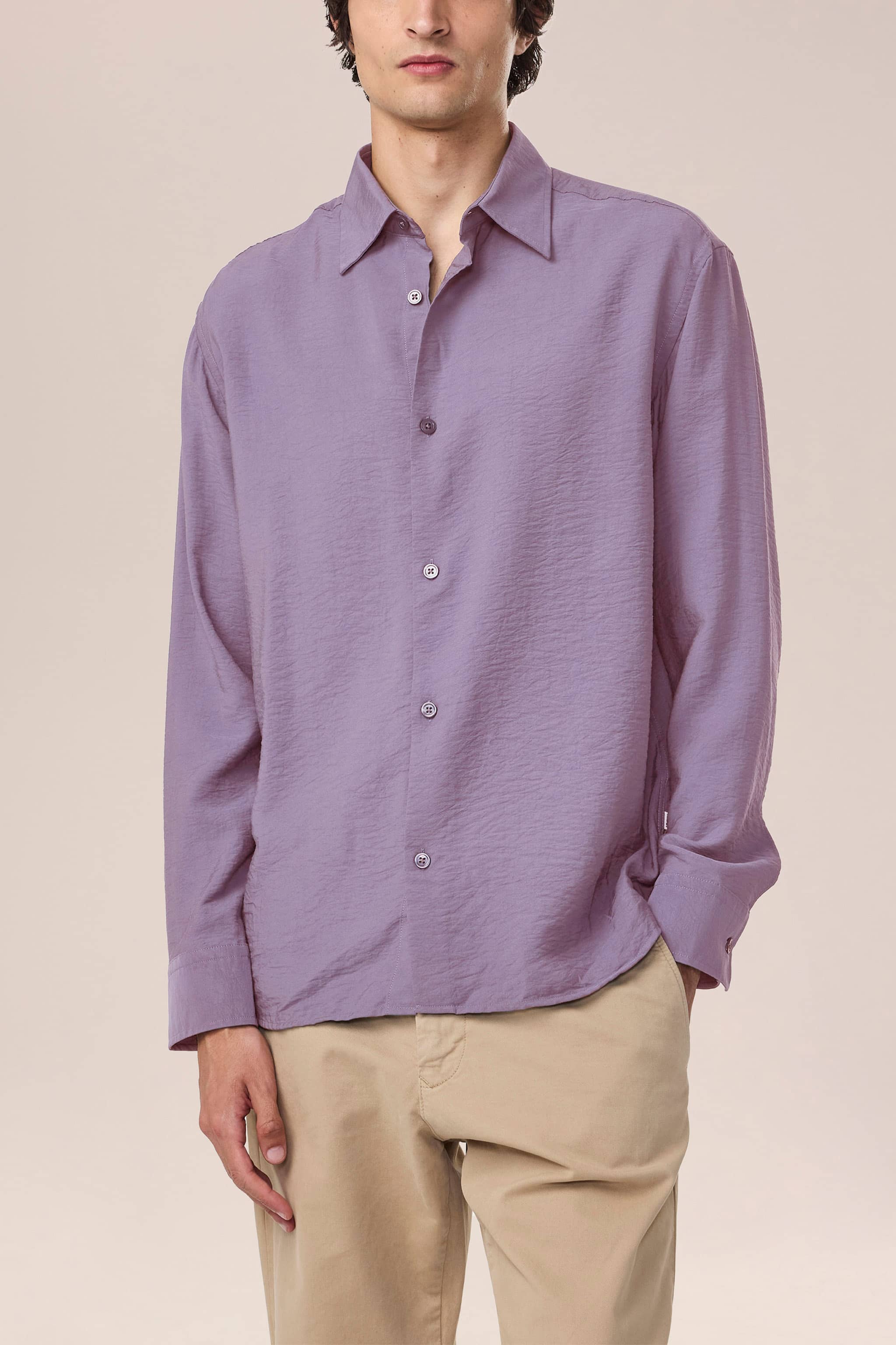 Button-up twill shirt crafted in a crisp, lightweight TENCEL™ Modal blend, topped with Mother-of-Pearl buttons.