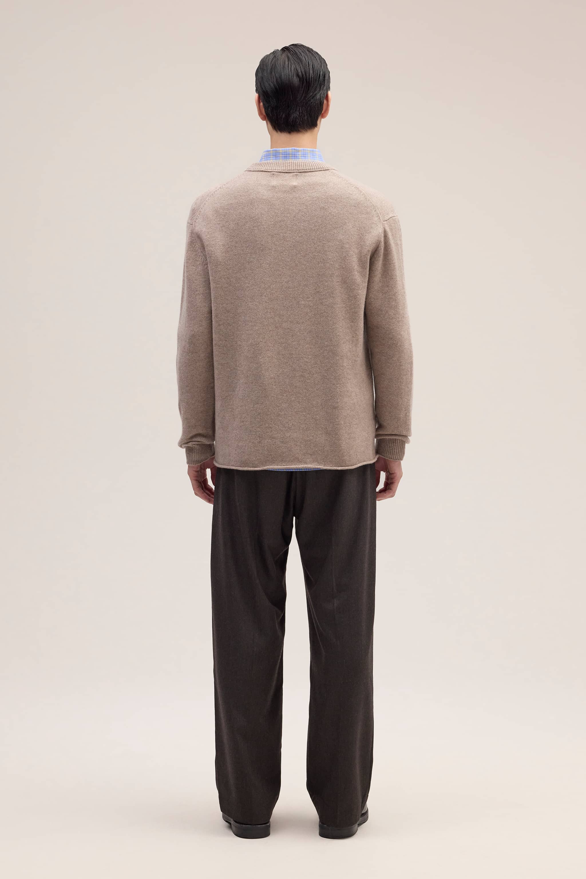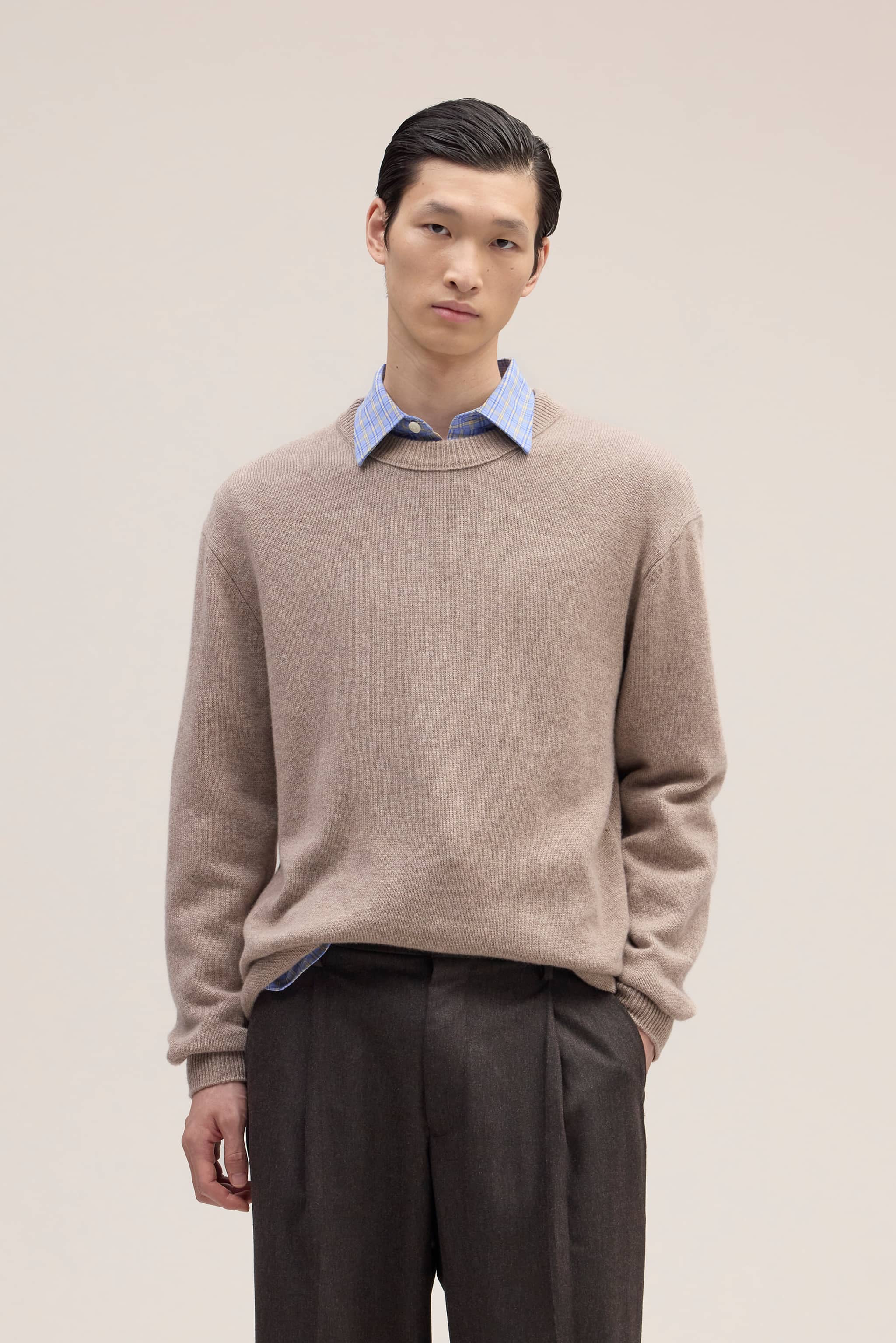 Relaxed crew neck sweater crafted from 100% Cashmere for an ultra-soft, fluffy hand feel. Finished with a rolled edge at the bottom for a refined touch.