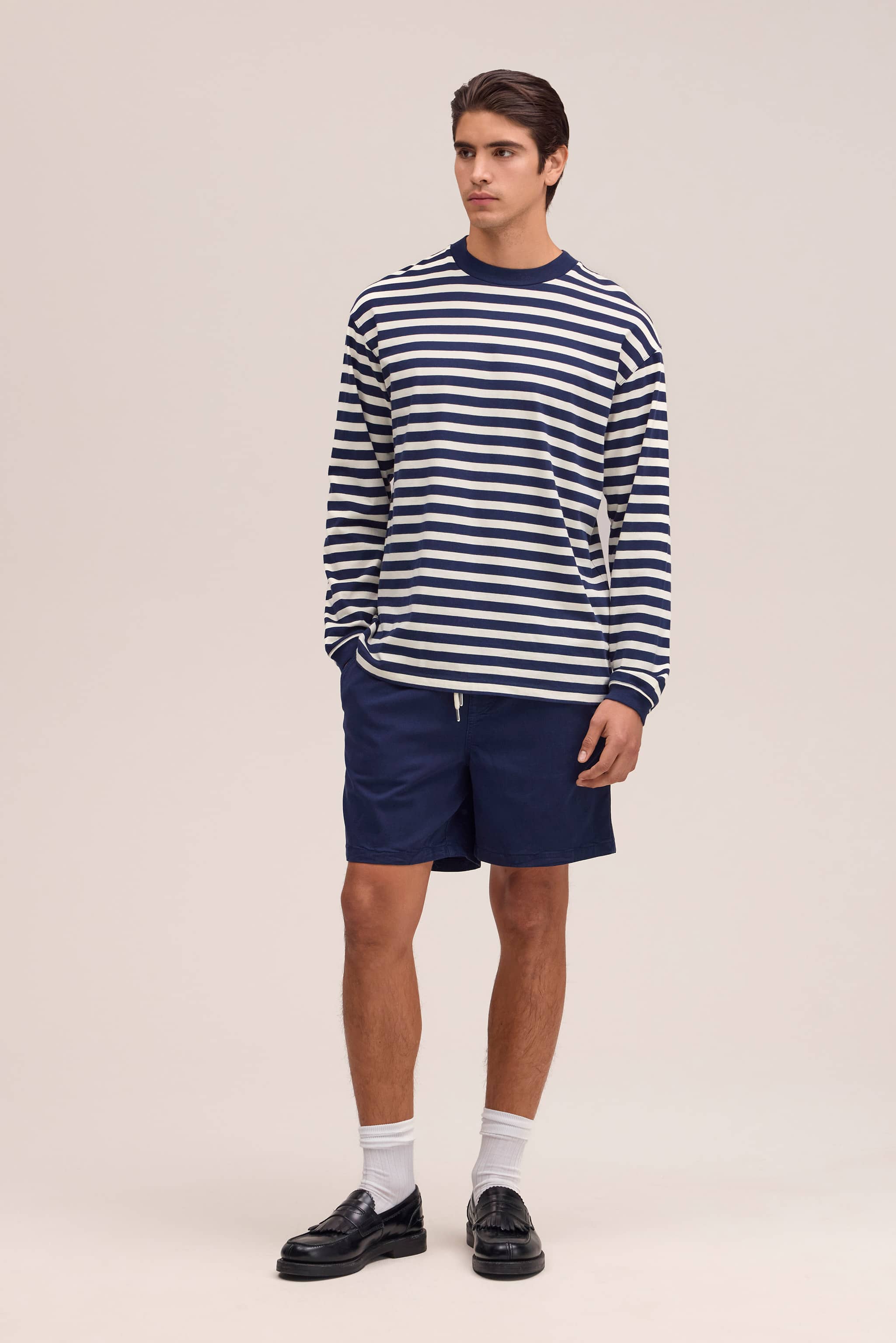 Relaxed-fit long sleeve tee made from long staple cotton that features a smooth, silky handfeel with rich colour depth. Refined with details like a 1x1 ribbed neck and cuffs and twin-needle stitching.