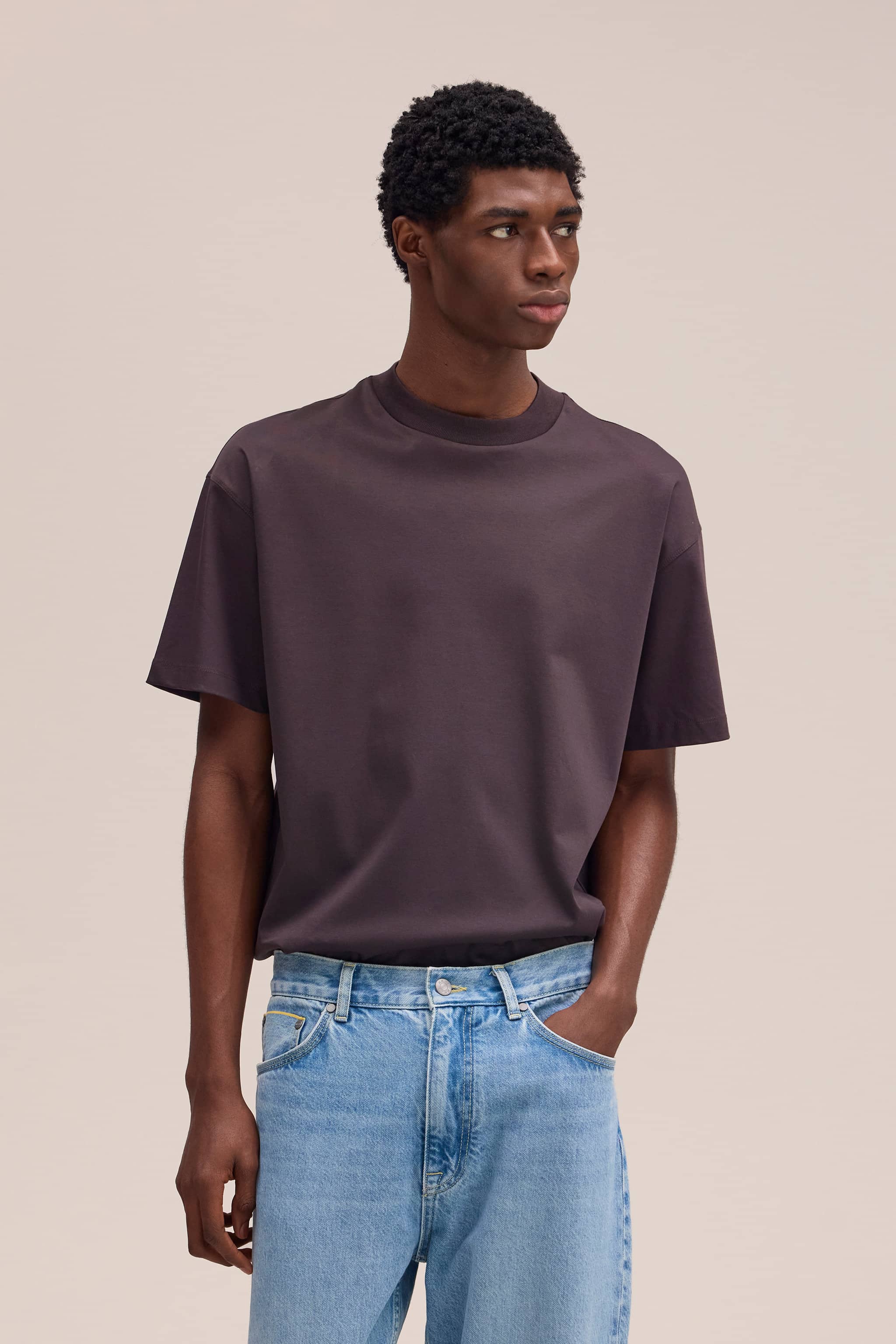 Relaxed-fit tee crafted from organic mercerised cotton, offering a smooth, soft handfeel and elegant finish. Rich in colour and minimalist in design, it’s refined with a 1x1 neck rib and twin-needle stitching for elevated simplicity.
